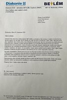 RC Brno obdržel poděkování od Diakonie ČCE - střediska Betlém, které dlouhodobě podporujeme.