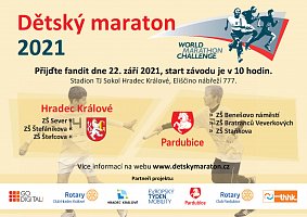 Dne 21. 9. 2022 proběhl tradiční Dětský maraton, který se koná za spolupořadatelství Rotary klub Hradec Králové a Rotary Club Pardubice. Díky této spolupráci mohou žáci tří hradeckých a tří pardubických základních škol štafetovým způsobem běžet maratonskou vzdálenost 42,195 km a navázat tak na myšlenku World Marathon Challenge, pořádaného od roku 2008 Rotary clubem ve Frodsham Helsby (VB) s cílem podpořit organizaci Save the Children pomáhající hladovějícím dětem. Je nám ctí, že maraton zahájili náměstek primátora Pardubic Jakub Rychtecký, Alexandr Hrabálek - primátor města Hradec Králové a také George J. Podzimek, guvernér Rotary District 2240 - Czech & Slovak Republics pro období 2022-23.