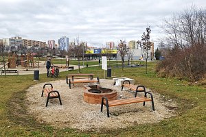 Verejné ohnisko a oddychový priestor vybudovaný z dištriktného grantu a s prispením mesta Nitra.