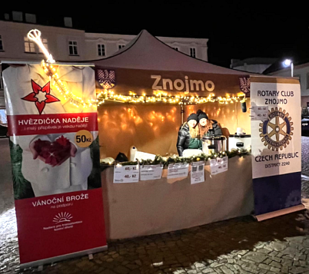 Už mnoho let má tradici prodej Rotariánského punče na znojemských adventních trzích. Ani rok 2024 nebyl výjimkou. Punč, který pomáhá, opět prodávali jak členové klubu, tak jejich přátelé a dobrovolníci. Patří jim za to vřelý dík!