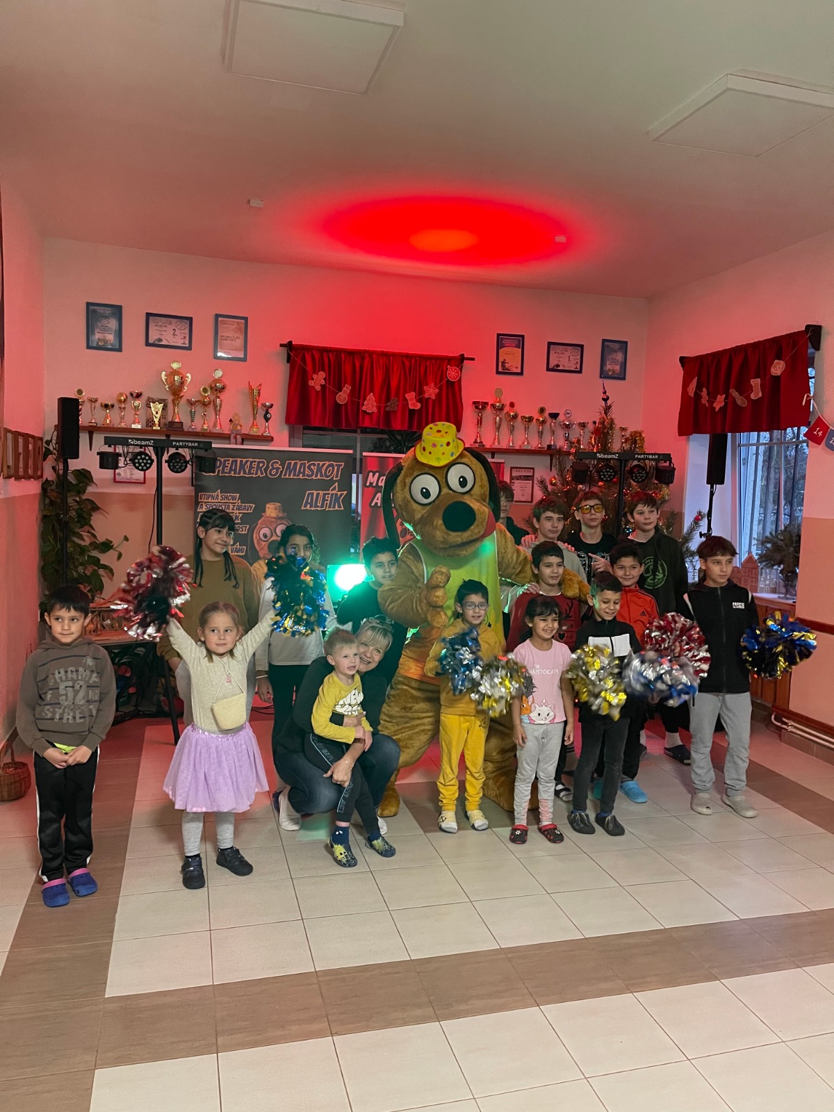 The afternoon was filled with smiles and excitement. The children were treated to a lively performance by Alfík, a cheerful and energetic mascot character who captivated the young audience with an entertaining show and interactive program designed just for them. After the performance, we had the chance to spend time with the children in a warm Christmas atmosphere, sharing laughter, conversations, and festive moments together. We also had the opportunity to talk with the caregivers and learn more about the everyday life at the home.