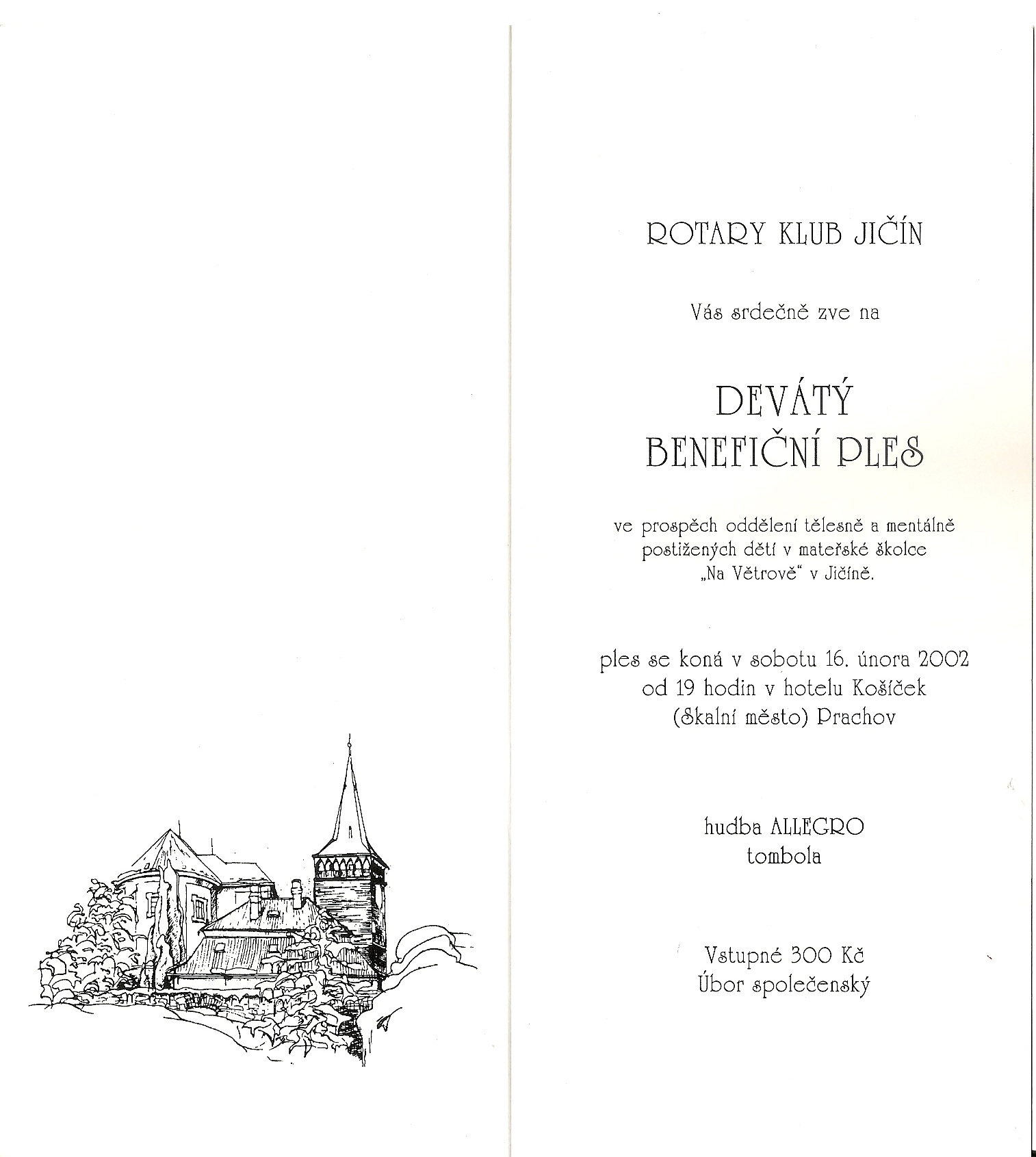 9. Benefiční ples konaný v Hotelu Košíček v Prachovských skalách. Výtěžek z plesové tomboly ve výši 40.000 Kč byl věnován ve prospěch oddělení mentálně a tělesně postižených dětí při Mateřské škole Na Větrově v Jičíně