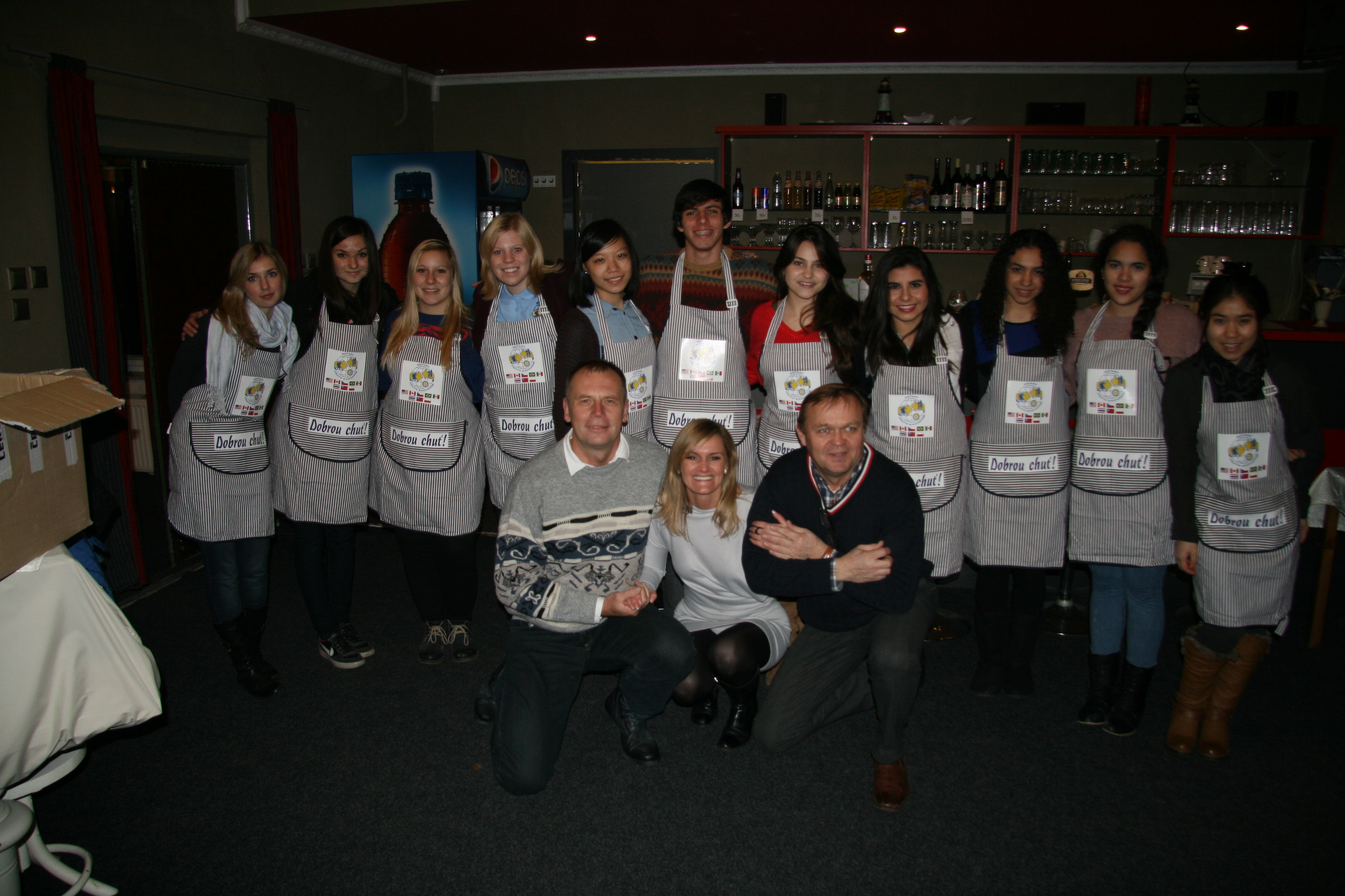 My jsme studenty rozdělili do pěti týmů: Amerika (USA a Kanada), Asie (Thajsko a Taiwan), Česko, Mexiko a Brazílie. Skupinky museli připravit dvě jídla typická pro své země a připravit si prezentaci pokrmů. Sestavili jsme porotu ze čtyř zástupců Rc a jednoho nestranníka a dali jsme se do vaření. Studenti měli na přípravu pokrmů čas přes tři hodiny a i přes technické překážky v kuchyni se jim podařilo připravit opravdové dobroty!