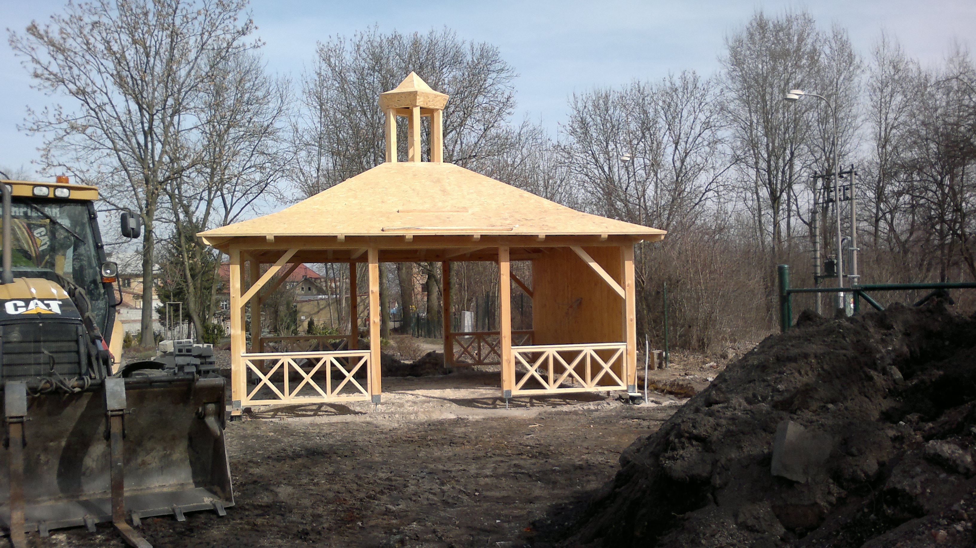 Výstavba zahradního pavilonu se zvonicí v areálu Domova pro seniory v Dolním Rychnově u Sokolova.