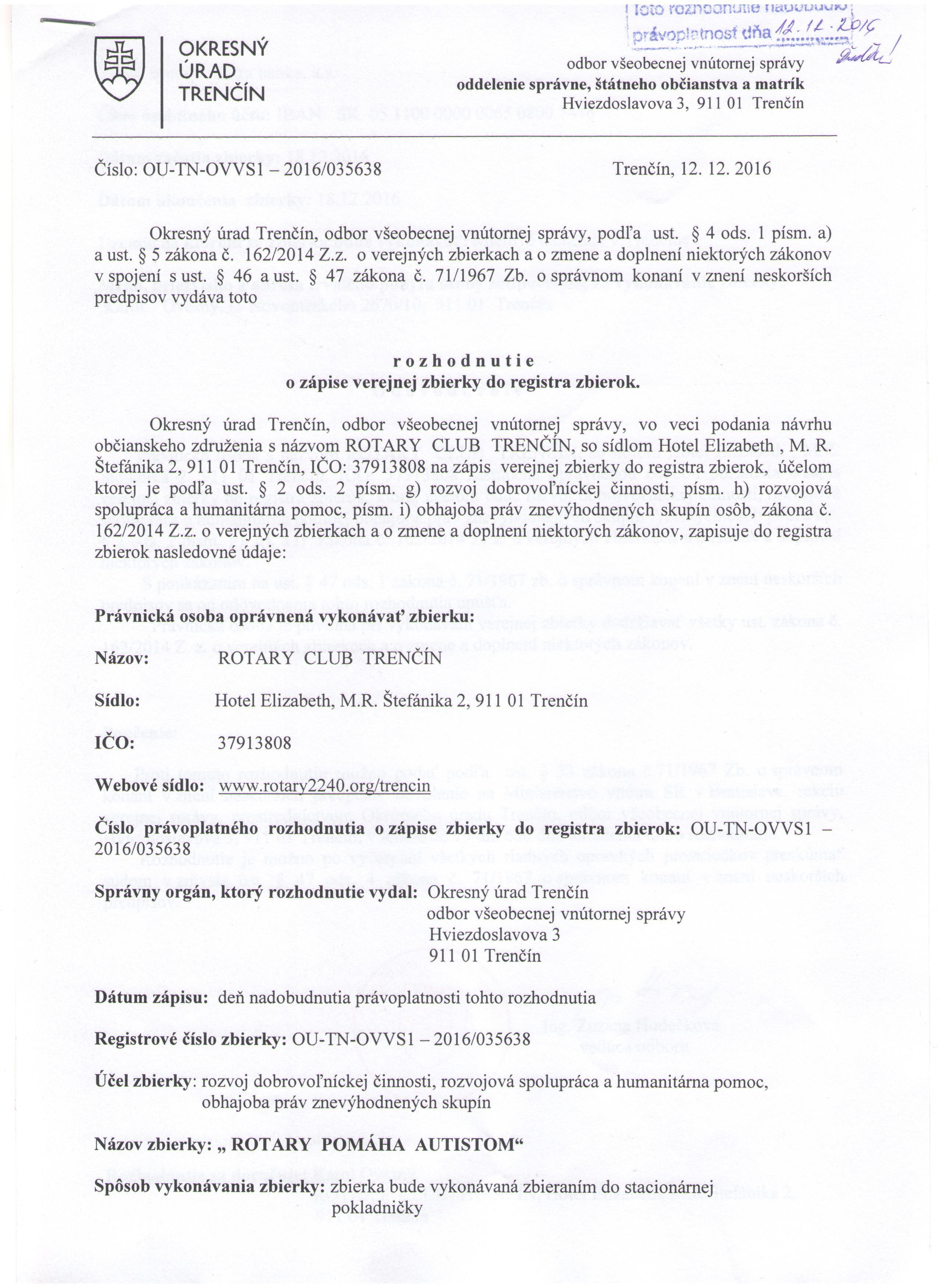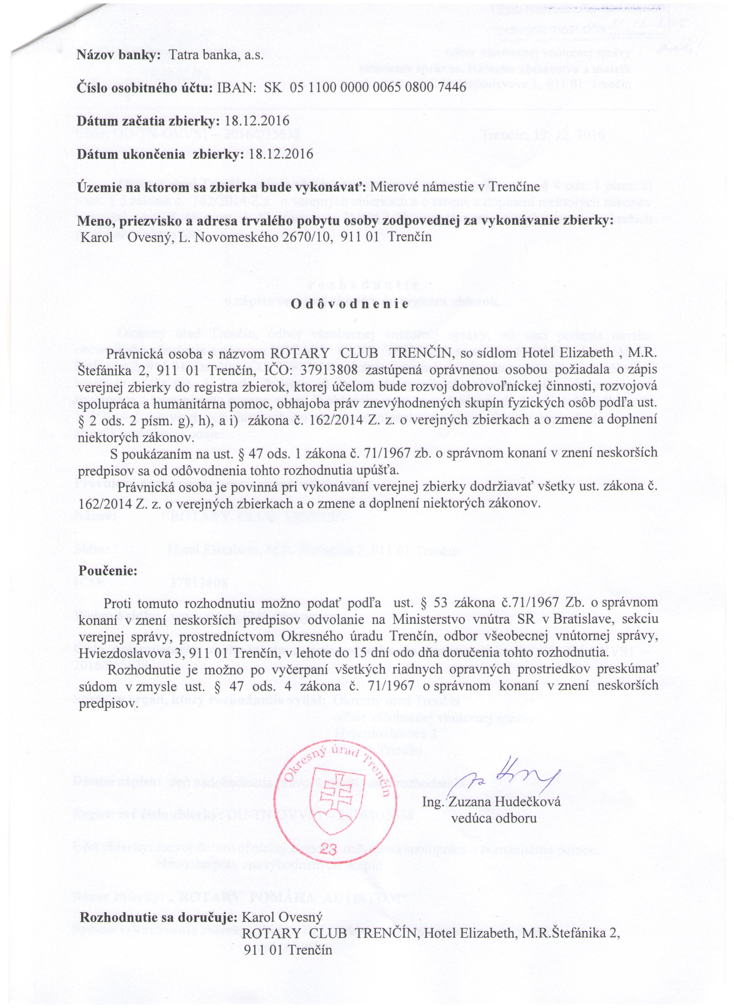 Rotary klub Trenčín srdečne pozýva všetkých priateľov na každoročný