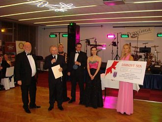 Pro Hipoterapeutický ranč. Šek převzal pan Dudek od prezidenta Vladimíra Šice.