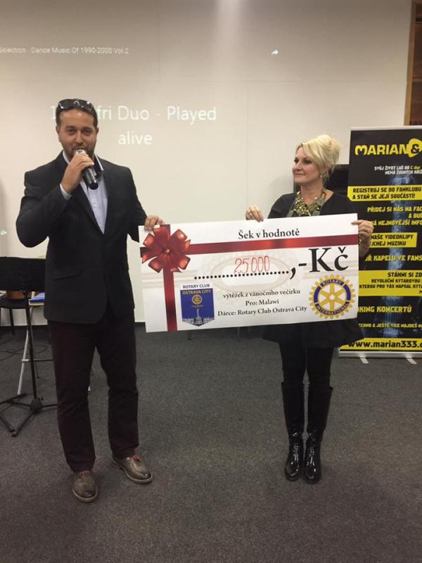 Výtěžek z večírku ve výši 50.000,-Kč na pomoc Malawi.