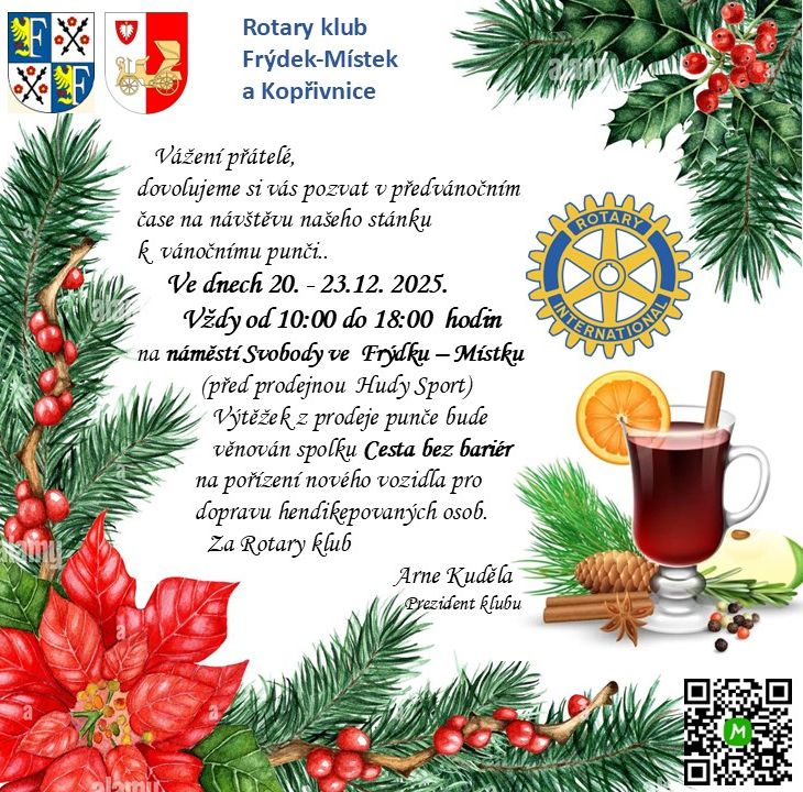 22.12.2025 se pak bude od 17:00 konat schůzka klubu s přáteli a příznivci u stánku s punčem.