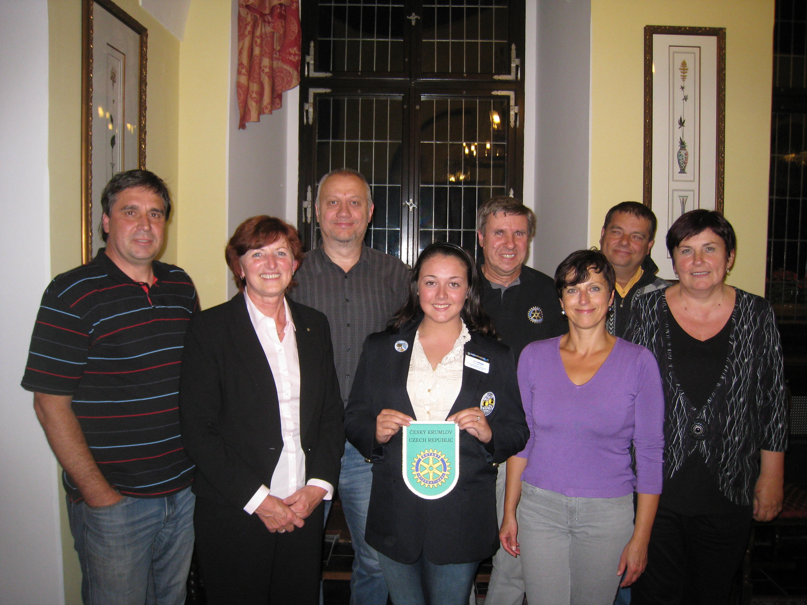 - Přivítání a představení hostující výměnné studentky Emily Suzanne Weiss. Je ze státu Florida, ukončila střední školu. Zajímá se o sport, chce poznat zemi i lidi zde, snaží se učit češtině. Členové ocenili její první slovíčka, následně se jí všichni přítomní představili v angličtině (také zaslouží ocenění). Emily předala kauci 300 US, obdržela kapesné na září a kontakty na prezidenta, YEO, poradce i na ostatní členy klubu. První hostitelskou rodinou jsou Malečkovi z Kájova, navštěvovat bude SUPŠ sv. Anežky České. – přílohou zápisu foto