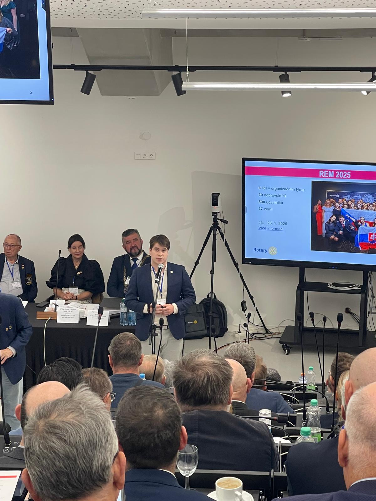 Saturday was the main day of the conference. The morning program was shared with Rotary and featured joint sessions, followed by a separate Rotaract section. Speeches were delivered by District Rotaract Representative Jakub Machovec, District Secretary Hleb Tkachenko, and ERIC CZ’s Alexia Klie (via video message). A number of important topics were discussed, including progress on the upcoming official Rotaract website, financial results from REM Prague, and the election of new district officers.