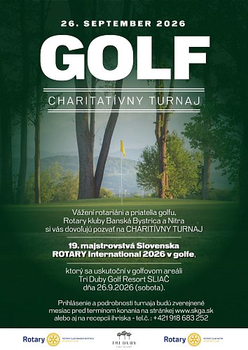 si vás dovoľujú pozvať na CHARITÍVNY TURNAJ, 19. majstrovstvá Slovenska ROTARY International 2026 v golfe,