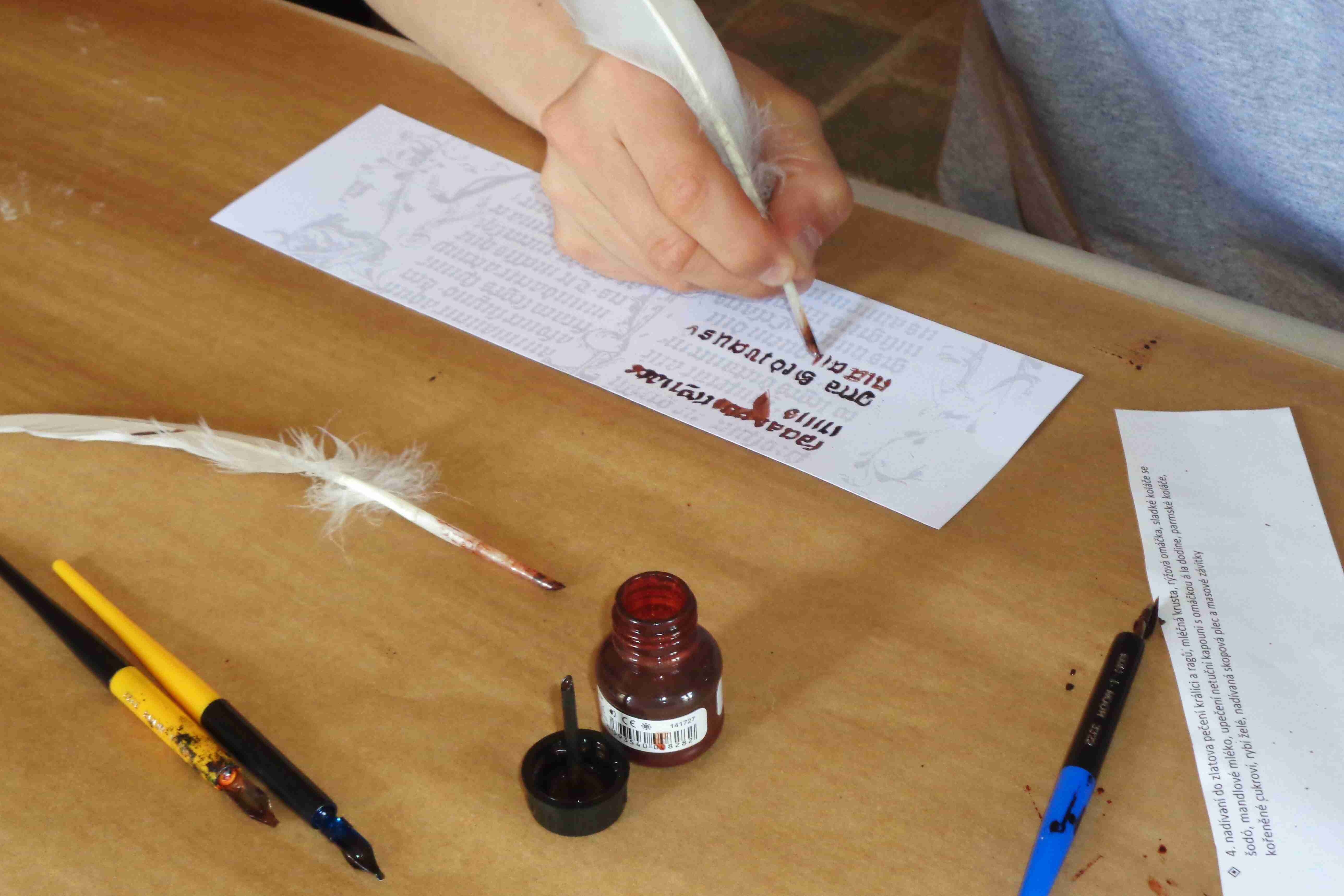 vyzkoušet si psát husím brkem nebo pečetit dokumenty,