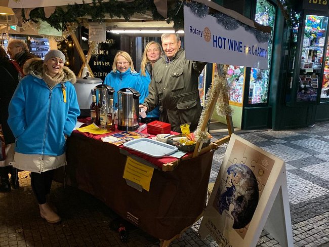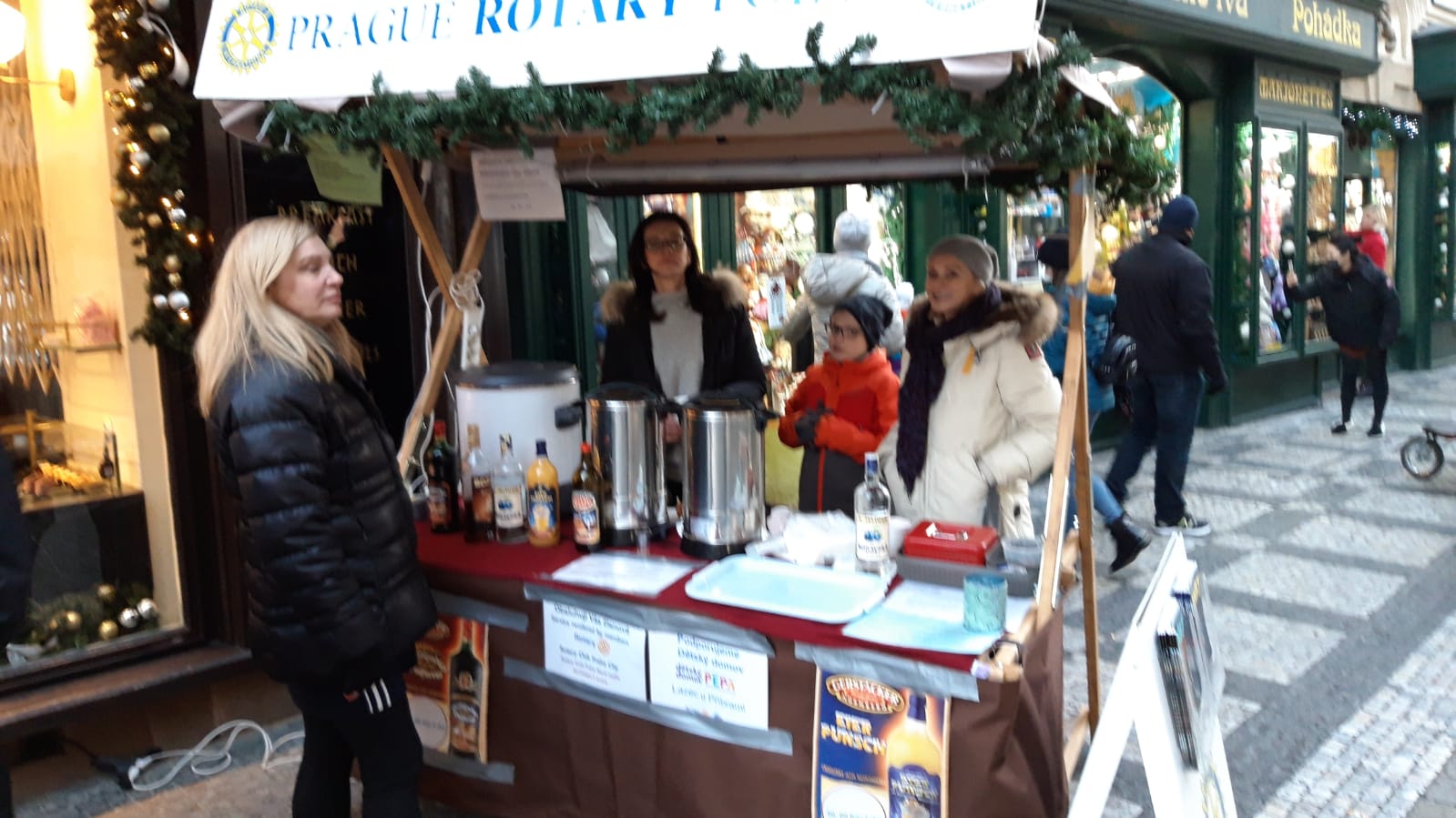 Už přes tisíc dárců přispělo na všeobecně prospěšné aktivity RC Praha City v rámci Vánočního punčování, které tradičně připravujeme v centru Prahy o adventních víkendech. Každý, kdo přispěje na projekty ve prospěch Dětského domova PEPA u Příbrami, pro vozíčkáře či nevidomé, od nás může získat pohárek svařáku nebo punče. "Svařák za charitu" potěší dobrým počinem i zahřeje. A pro mnohé je to i první příležitost seznámit se podrobněji s náplní činnosti Rotary při rozhovoru s guvernérem distriktu, členy RCPC i RC Praha Staré město či Rotaractu, kteří se střídají na dobrovolných službách.