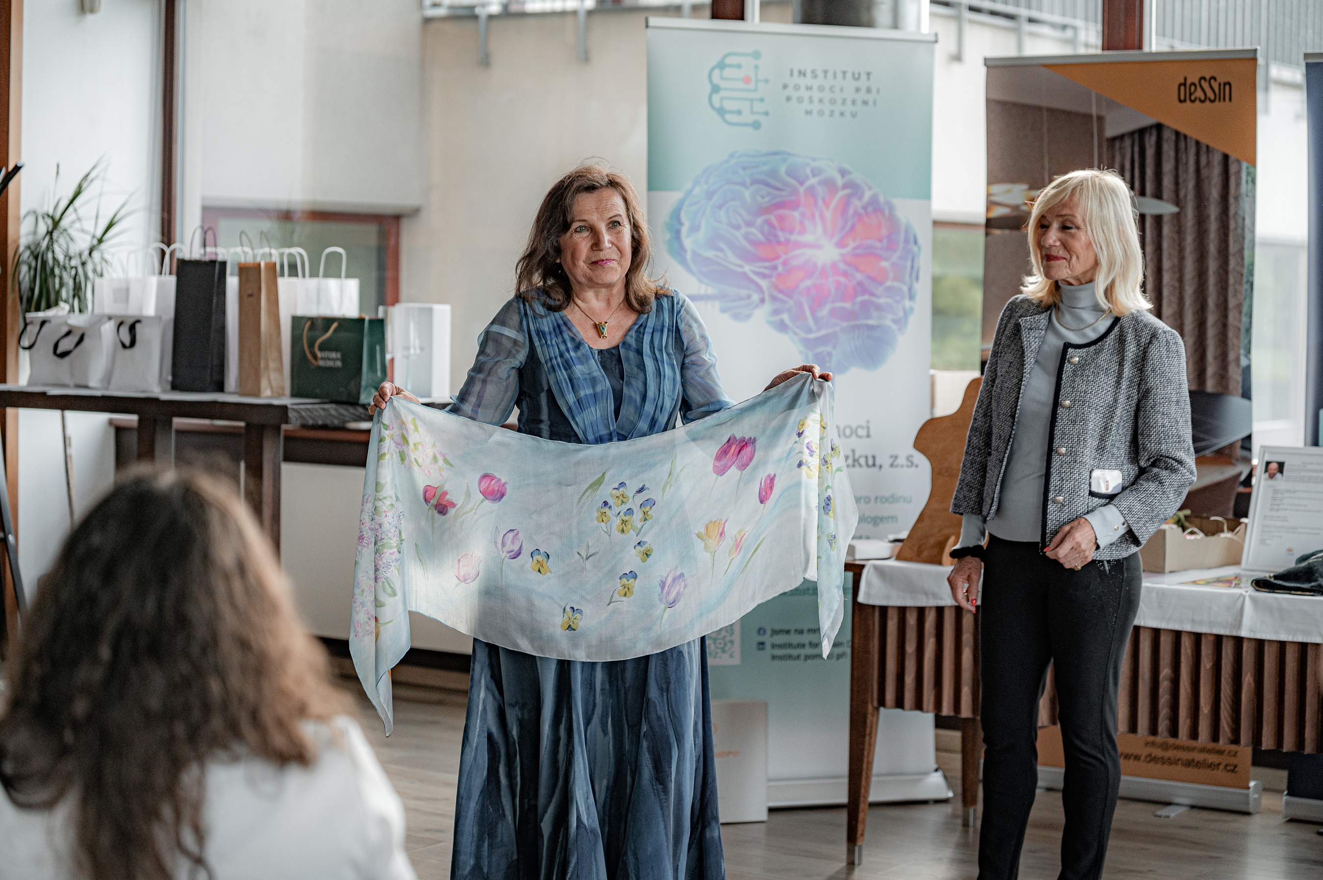 Paní Brigita Krumphanzlová, akademická malířka, členka RCPG/NGW, podpoří naši aukci překrásnými hedvábnými ručně malovanými šátky a šálami https://brigita-art.com/.
