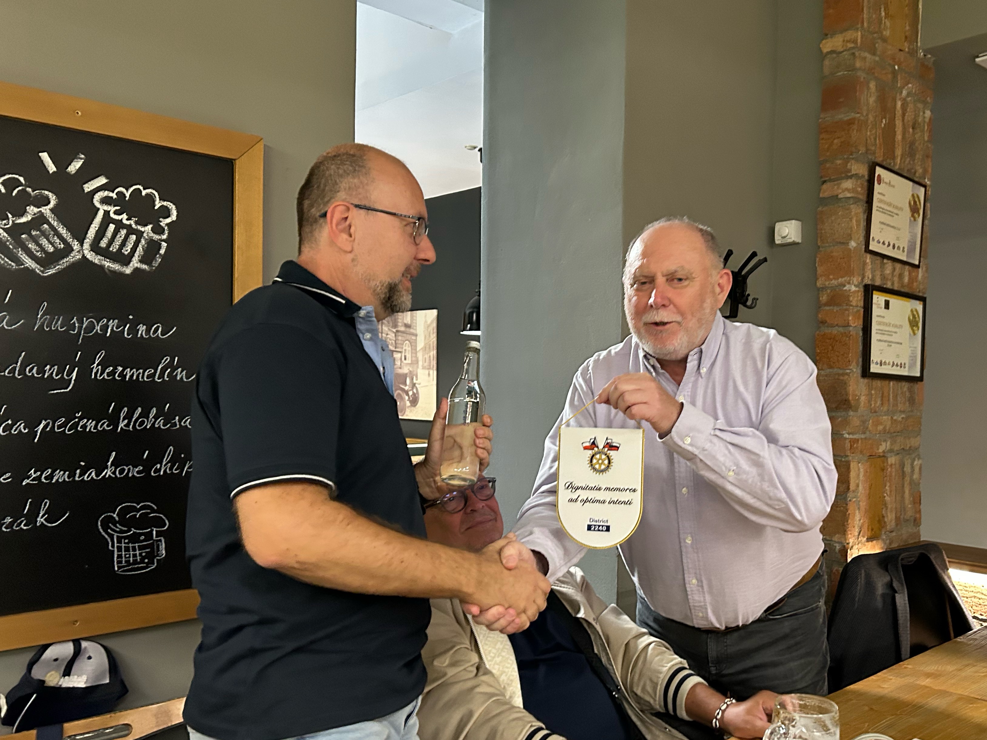Pri tejto príležitosti prezident klubu RC Trenčín Vlado Koštial poďakoval prezidentovi klubu RC Žilina Petrovi Bohunickému za pozvanie a príjemnú atmosféru a odovzdal klubovú vlajočku RC Trenčín na pripomenutie nášho stretnutia.