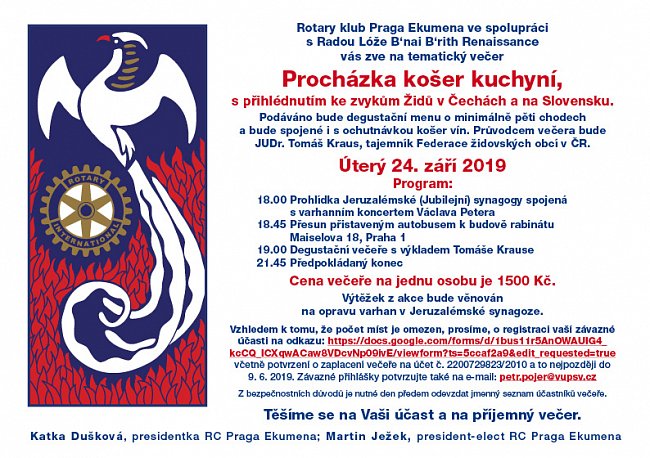 Výtěžek z akce bude věnován na opravu varhan v Jeruzalémské synagoze