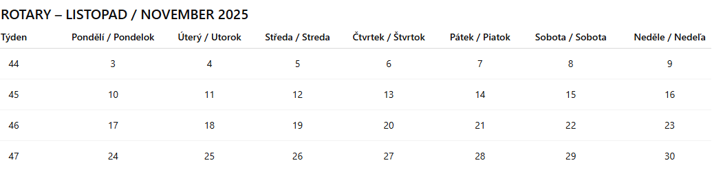 Let me also remind you of the Rotary Foundation qualification seminar, which will take place online on 15 November. The registration form can be found in the relevant article.