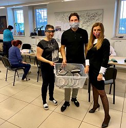 Pomoc zdravotníkom, záchranárom a domovom sociálnych služieb a Únii hluchonemých v Žiline. 2 705 rúšok a 155 ochranných štítov.
