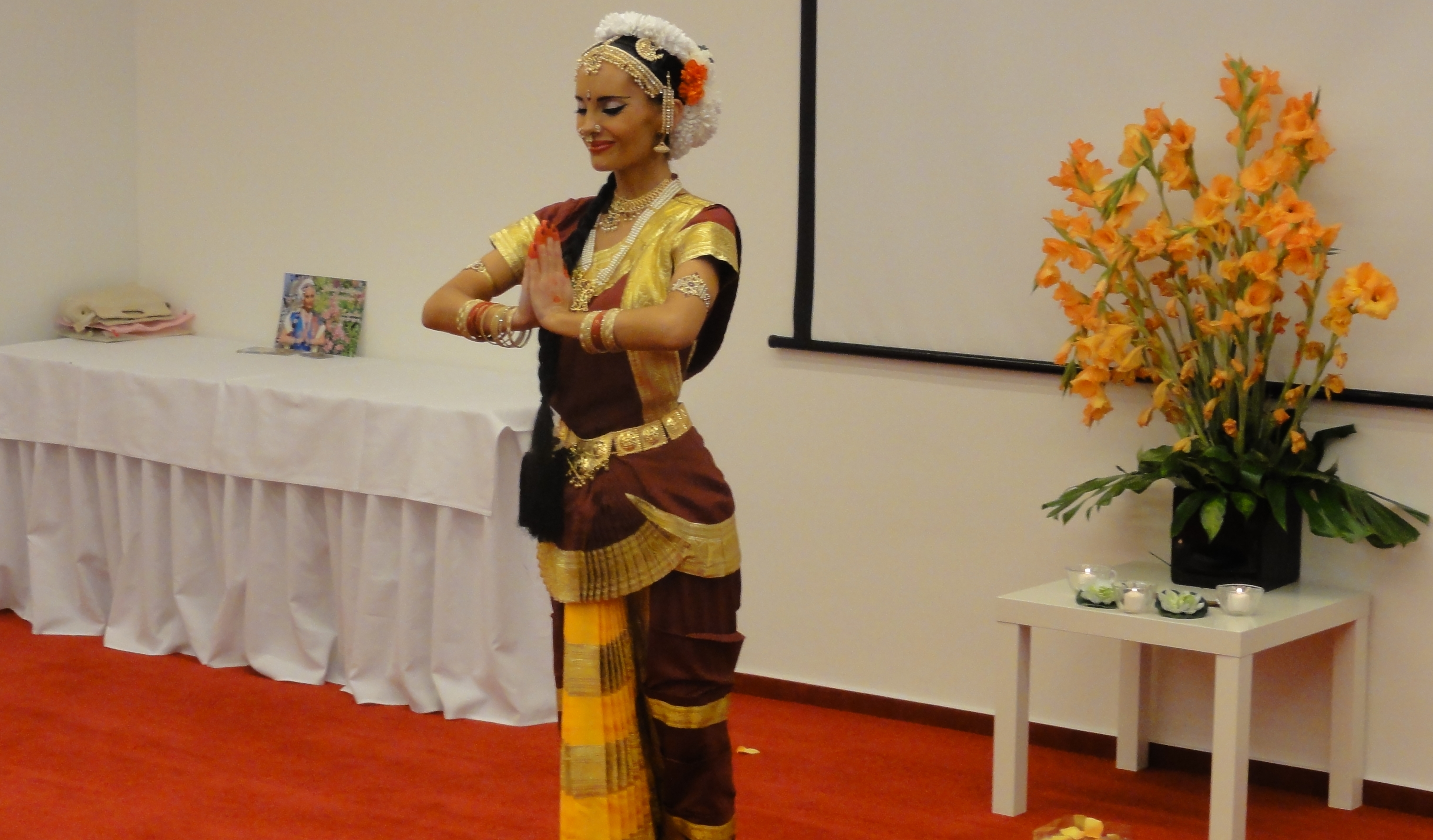 3. Vystoupení D. Blažkové (alias Kripa-Devi) s ukázkou jihoindického chrámového tance Bharatanatyam.