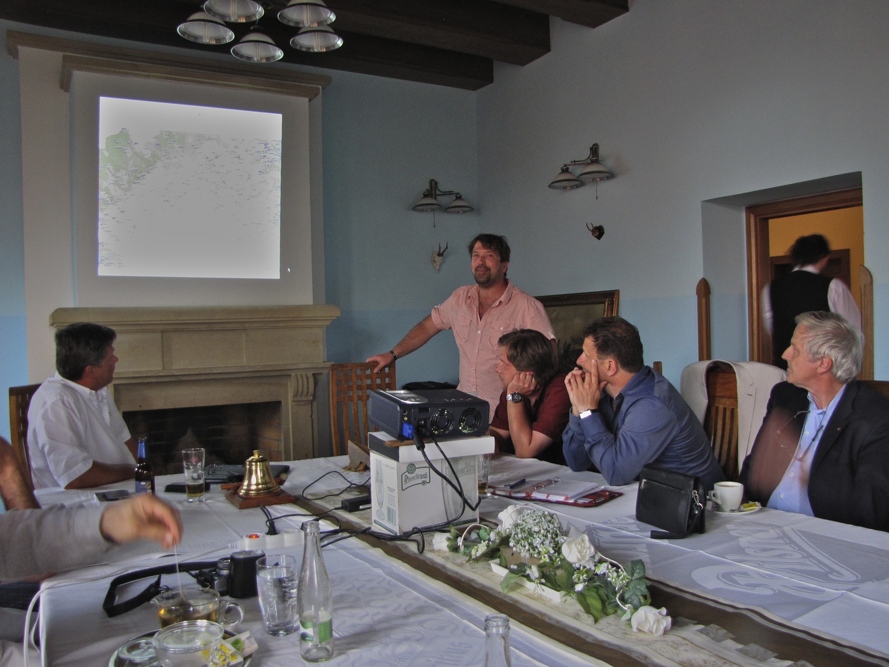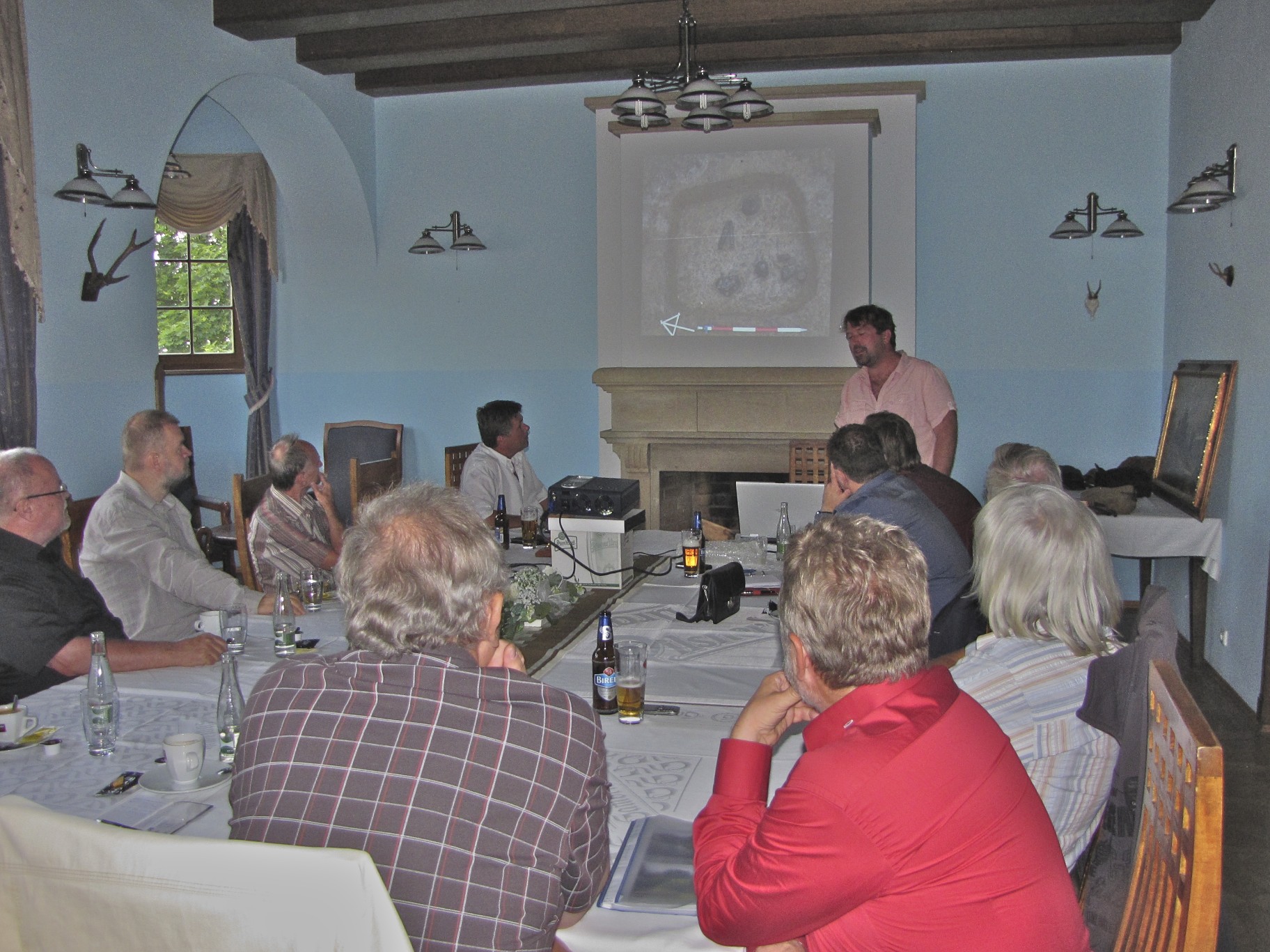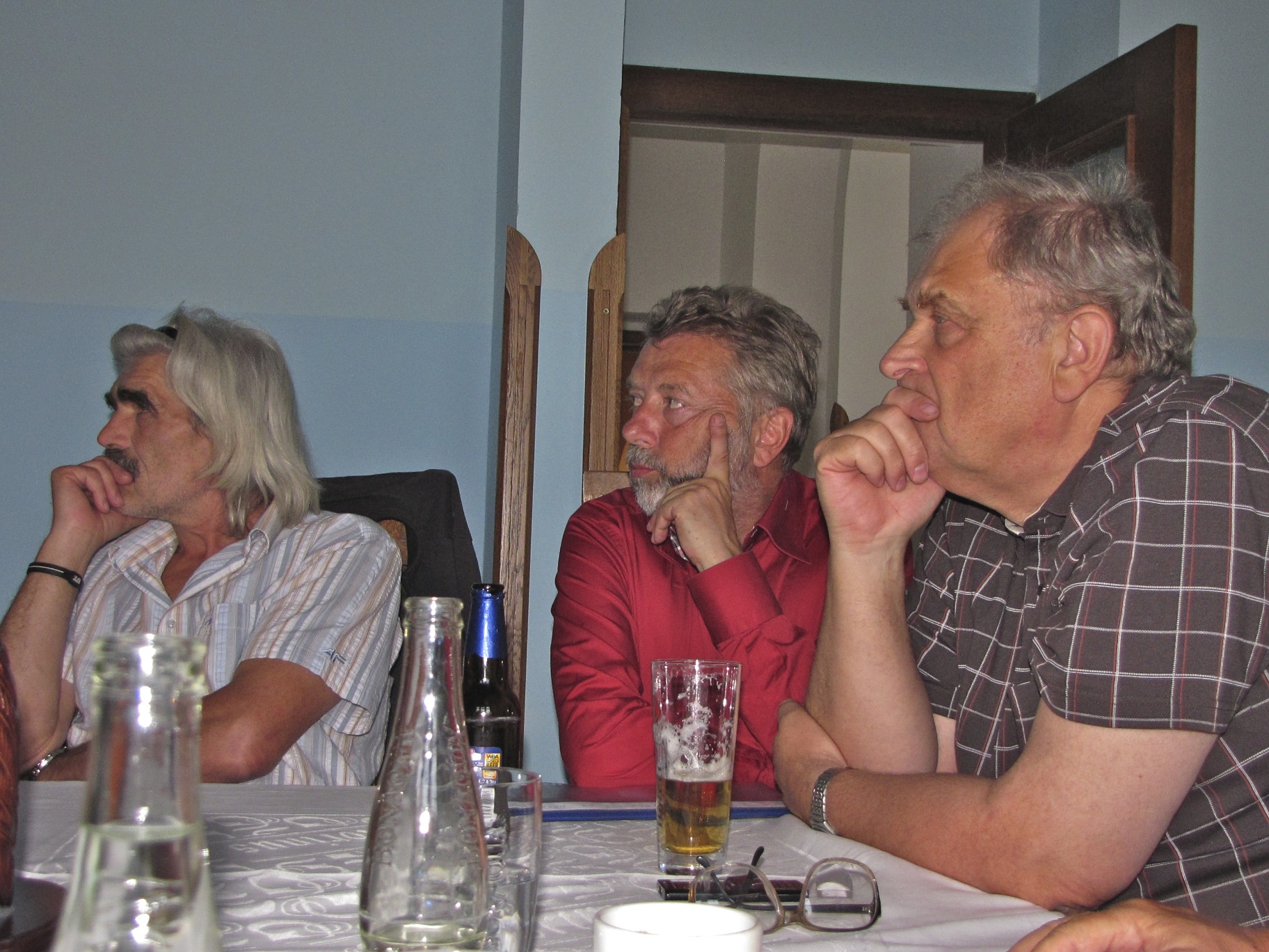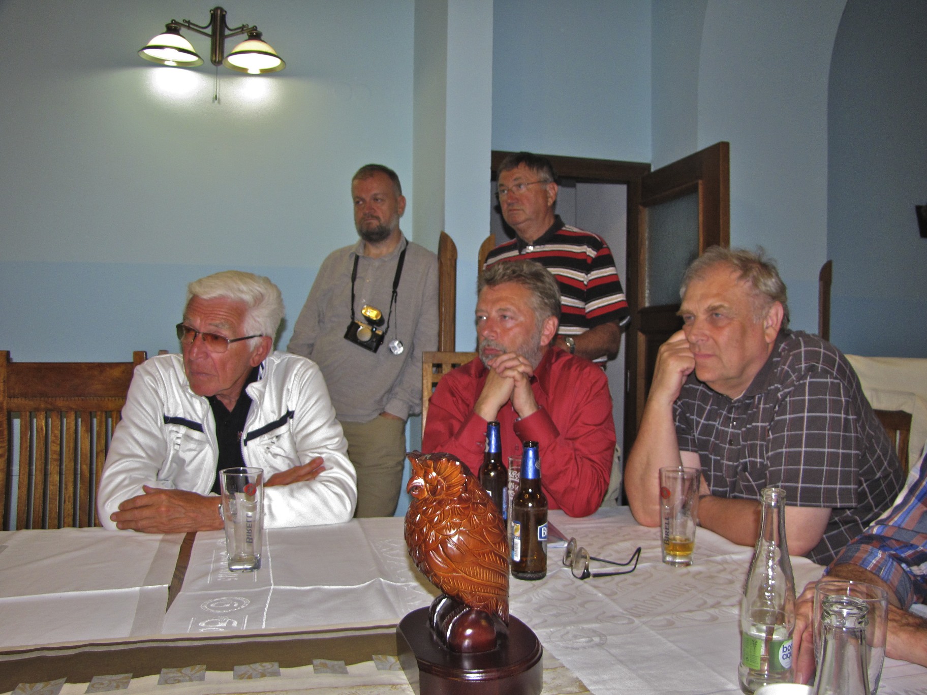 Večer se přátelé z RC Plzeň zúčastnili pravidelné schůzky RC Most s exposé mladých mosteckých archeologů Martina Volfa a Milana Sýkory, kteří nás seznámili s výsledky svých průzkumů nejstaršího osídlení v Mostě a jeho okolí. Podrobněji se zaměřili na historii mosteckého hradu a jeho vazby na současnou historizující podobu restaurace a hotelu Hněvín. Dalším předmětem diskuse byla i podoba a vývoj tvrze, jejíž původní součástí byl i kostelík Sv. Jakuba Většího v Bedřichově Světci.