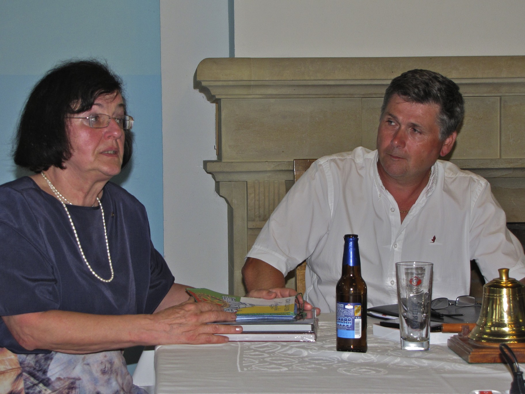 Po vystoupení obou archeologů pokračovala debata i se zástupci RC Plzeň. Ve svém vystoupení paní prezedentka Očenášková vyjádřila své pocity z návštěvy Mostecka, kterou si zopakovala po 40 letech a byla překvapena obrovskou změnou k lepšímu, která se v této krajině odehrála. Na konci příjemného večera byl náš klub pozván k návštěvě Plzně, což jsme s radostí přijali a již se těšíme na podzimní výlet.
