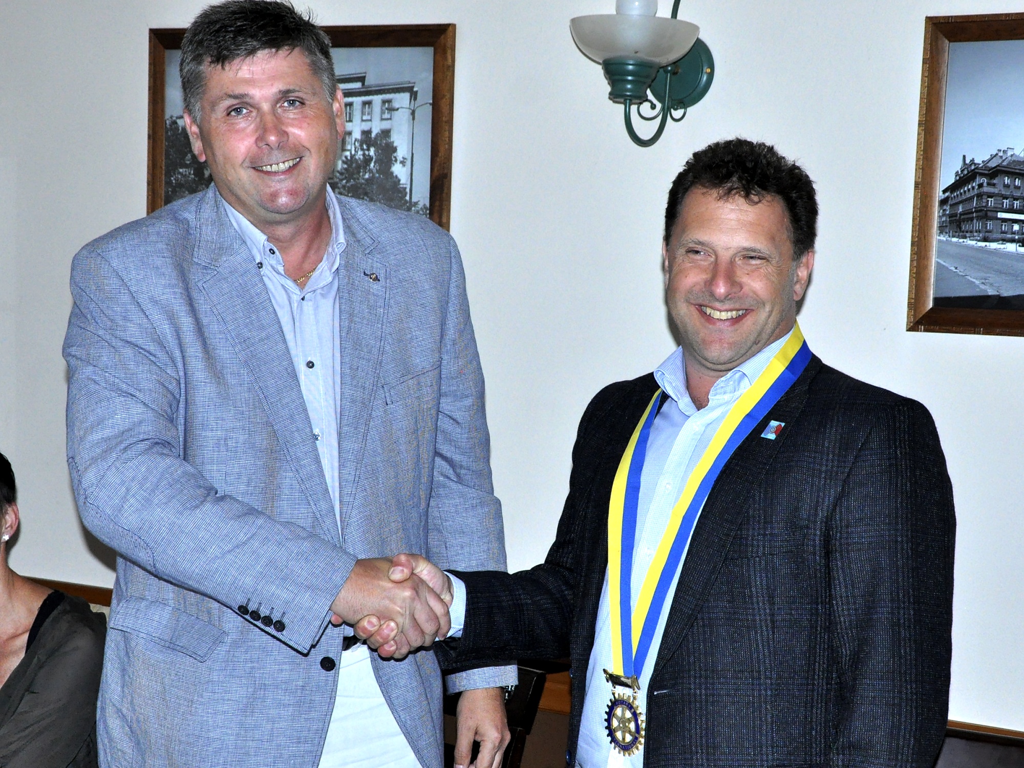 Následně si dosavadní a nový prezident klubu vyměnili klubovou insignii - velký rotariánský znak na stuze s trikolorou a nový prezident Jindřich Vinkler přednesl své úvodní slovo. Poděkoval předchozímu prezidiu a všem aktivním členům za práci a vyjádřil přesvědčení, že i nadcházející rok bude stejně úspěšný, jako roky předchozí. Pro období prázdnin bude tradičně připraven redukovaný program se čtrnáctidenní periodicitou schůzek. Další schůzka se tedy uskuteční dne 14. 7.2014 v 19:00 hod. na Hněvíně.
