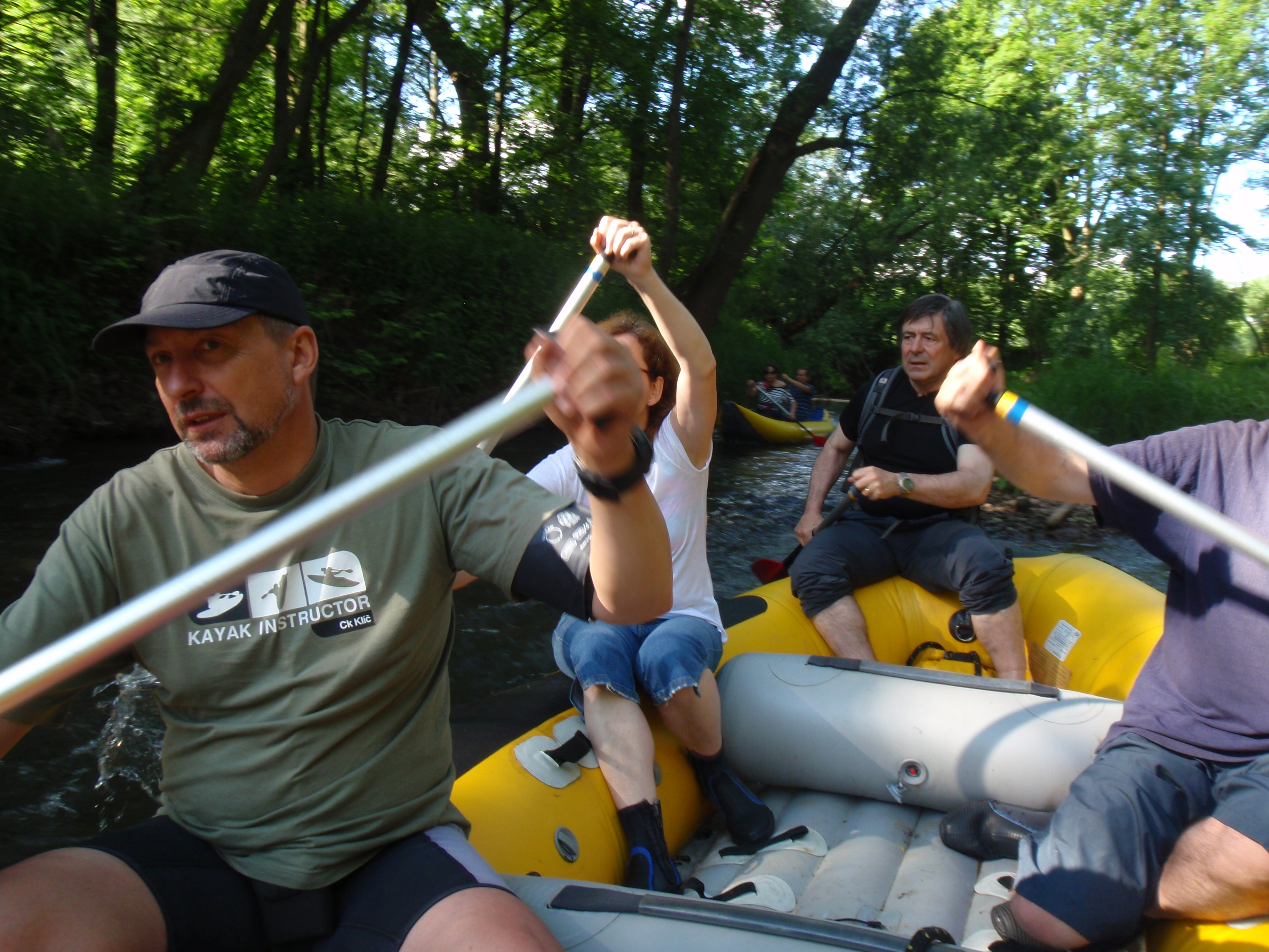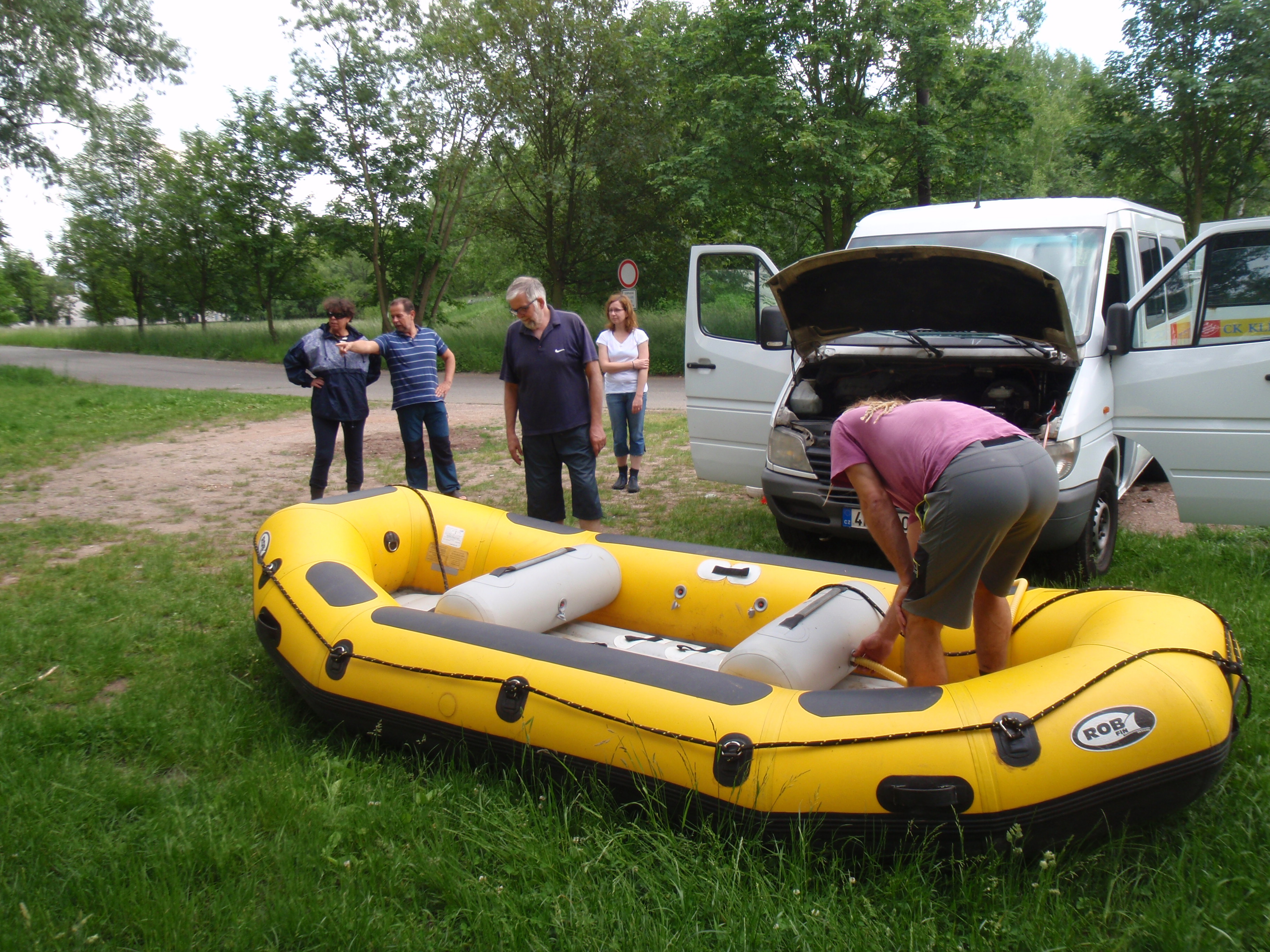 Pátá květnová schůzka RC byla zaměřena na sjezd Labe na raftu a v kánoi na úseku Dvůr Králové n.L. – Žíreč. Akci pro nás organizačně zajistil náš bývalý člen Marek Skalický se svou CK Klíč. Přestože bylo předběžně počítáno z dvojnásobným počtem účastníků, v den akce se omluvilo několik členů klubu i všichni zahraniční studenti. Sjíždění Labe tak nakonec proběhlo pouze v jednom raftu a v jedné kanoi. Z místa srazu na parkovišti „U studny“ jsme vyrazili v mikrobusu CK Klíč krátce po 15. hodině. Vstup do vody a tedy odjezd z tradičního místa na královédvorských Hrubých lukách se poněkud opozdil, neboť jsme čekali na kormidelníka Karla Radu, jenž za námi dorazil vlastním vozidlem. Krásného skoro letního počasí využili účastníci akce k relaxaci a načerpání sil před následujícím sportovním výkonem. Volného času využil Marek k ukázkám fotek a videí ze svých velmi atraktivních vodáckých cest po Albánii a Bosně, které měl ve svém tabletu.
