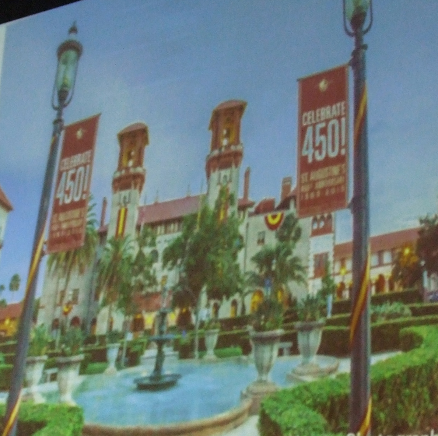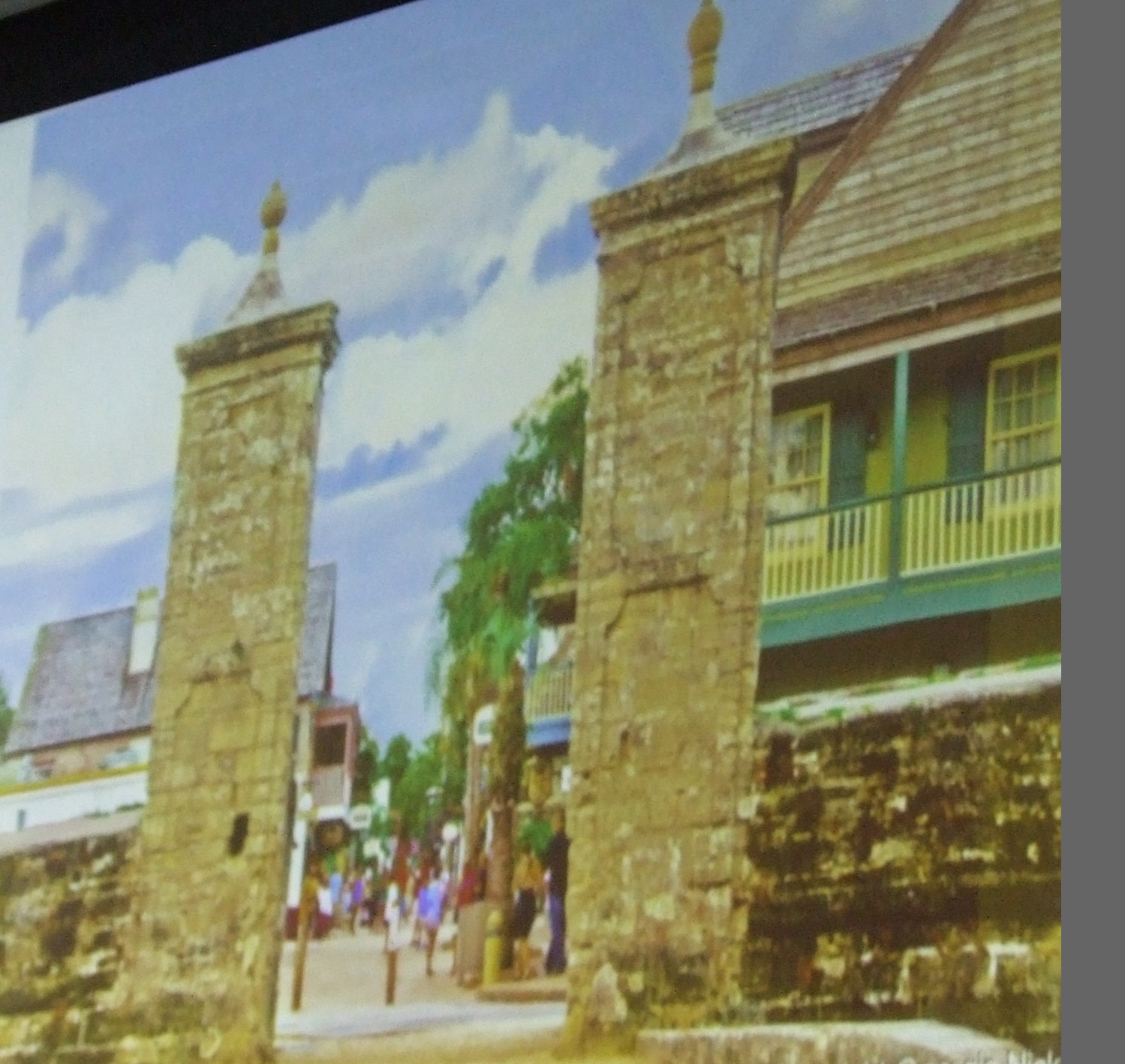 Toto městečko je označováno za historicky nejstarší bílými osadníky vybudované město v USA. Bylo vybudováno již v roce 1565 španělskými osadníky a mělo se stát centrem pro kolonizaci Floridy. Ve městě docházelo k mnoha bojům mezi Španěly a Angličany, takže bylo opakovaně vypleněno a zničeno. S těmito fakty souvisí řada historických památek, které se v něm vyskytují. Na jejich obnově se podílí řada mecenášů vč. členů místního Rotary klubu, který k nám Leanzu na výměnný pobyt vyslal. Studentka si připravila řadu fotografií, k nimž měla nachystaný komentář v češtině, z něhož nám při své prezentaci předčítala. Její rodiče se záhy po jejím narození rozvedli a našli si nové partnery. Leanza žije v poněkud sociálně slabší další rodině své matky. Má celou řadu dalších sourozenců v obou rodinách jak otce, tak i matky. Na závěr své prezentace, ve které nechyběla fotografie členů Rotary klubu, který jí do ČR vyslal, předala našemu presidentovi vlaječku RC St. Augustine a převzala vlaječku našeho klubu.