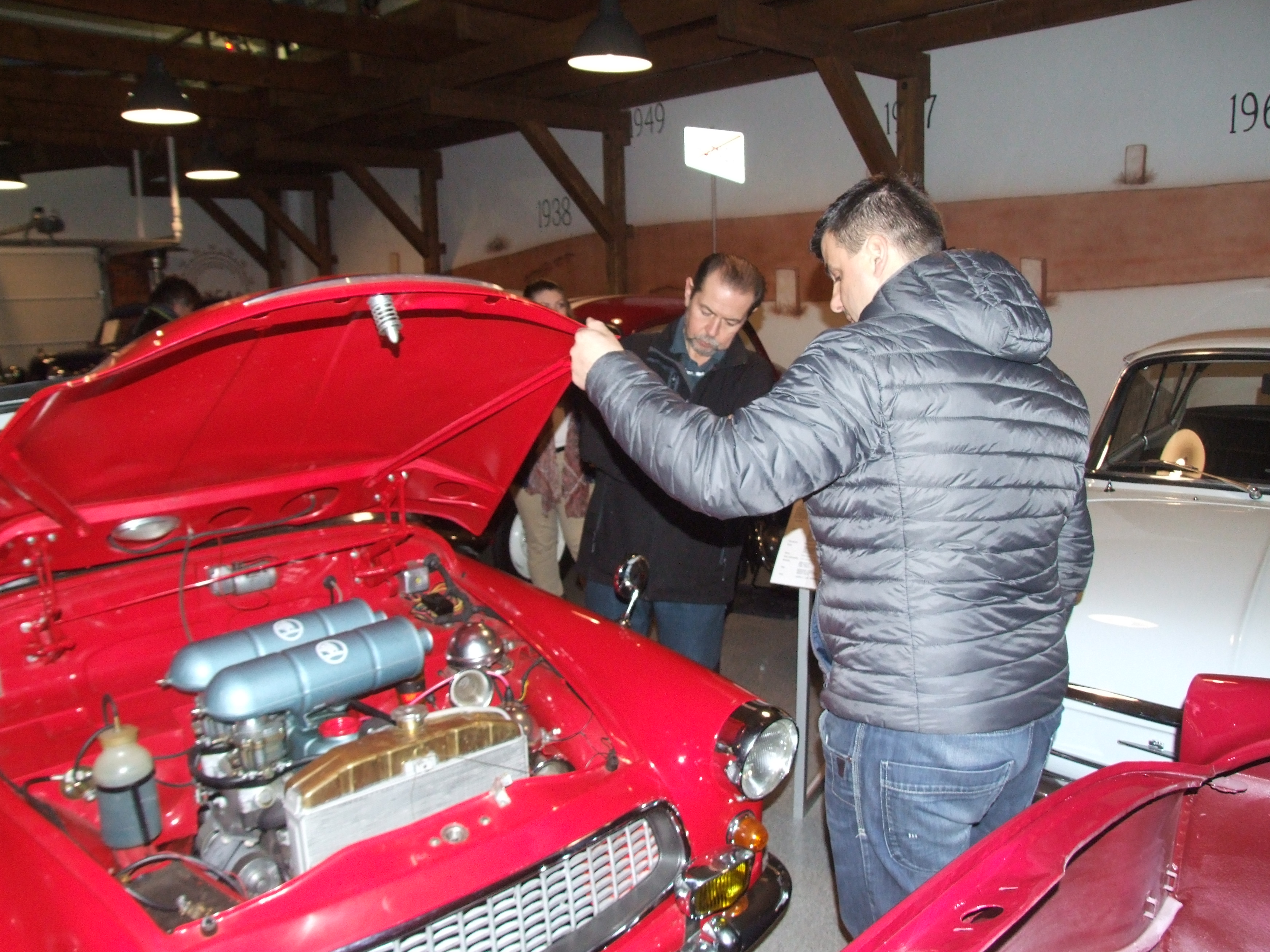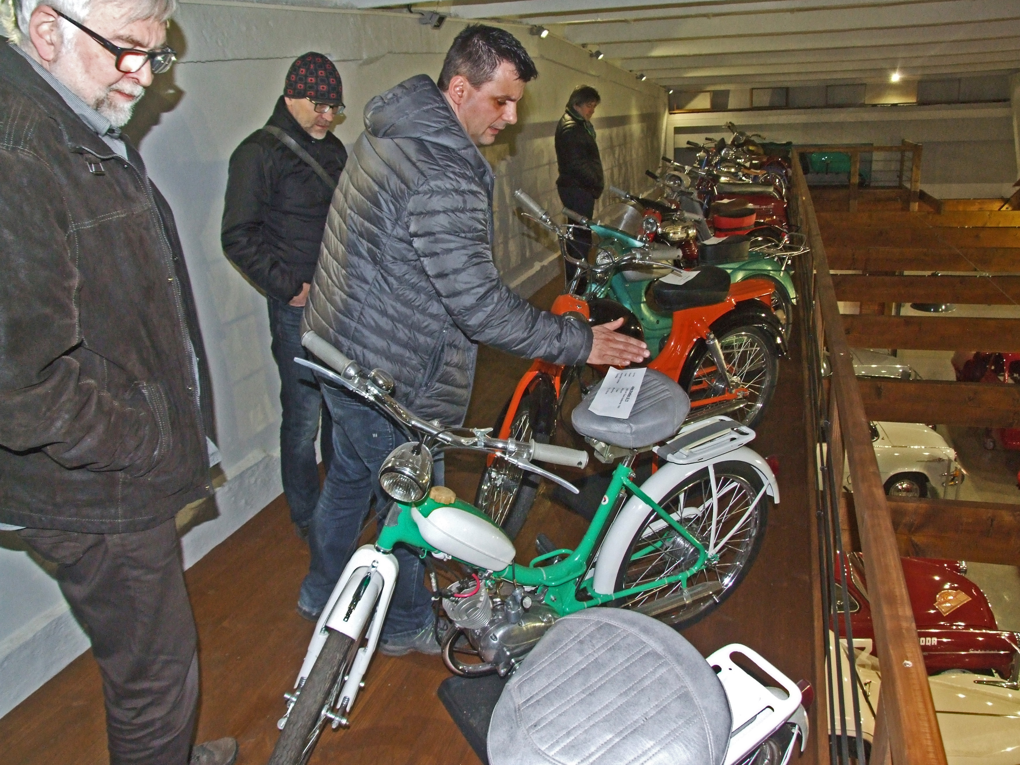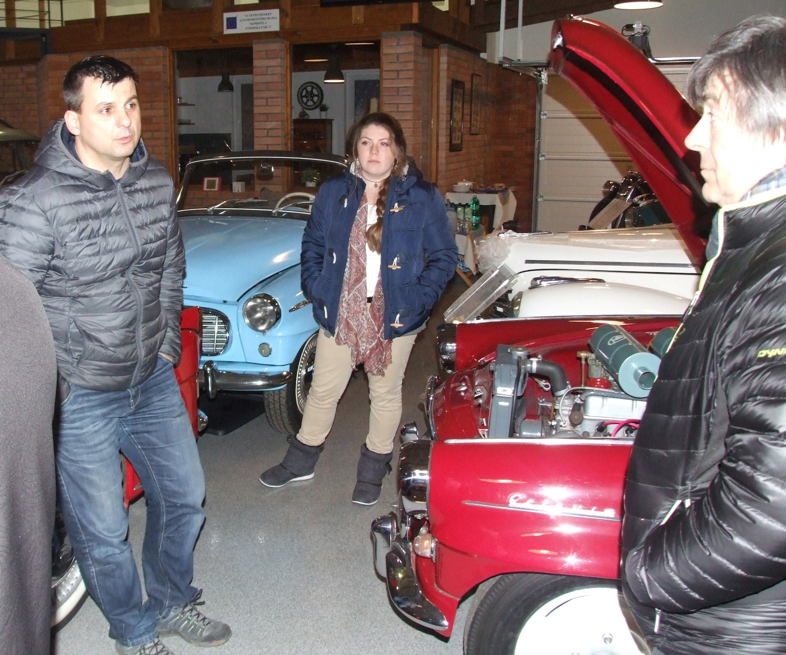 Třetí a současně poslední březnová schůzka se ve své první části konala v soukromém trutnovském muzeu automobilových veteránů fy ŠKODA. Tuto část schůzky pro nás vzorně zajistil Robert Hradecký, který se na shromažďování exponátů i na vzniku tohoto unikátního muzea sám rozhodující měrou podílel. Od naší poslední návštěvy uplynula již delší doba, během níž do muzea přibyly některá další vozidla. Proto jsme se v hale, přeplněné nablýskanými veterány, nejprve věnovali těmto přírůstkům do sbírky muzea. Robert nám k tomu poskytoval velmi podrobný a zasvěcený výklad. Největší pozornost byla věnována třem předválečným veteránům, které měly ještě i řízení na pravé straně vozidla. Robert nám při svém výkladu popisoval i způsoby a místo získání těchto veteránů. U některých aut na základě dotazů členů našeho Rotary clubu se došlo i k prohlížení detailů řešení motoru nebo dalších součástí auta pod kapotou. Robert nám ukázal i škodovku, která v minulém roce získala ocenění jako ze všech nejlépe rekonstruované historické vozidlo. Na delší dobu jsme se zastavili i u jednoho typu Octavie, která byla vyrobena jen ve velmi malé serii, byla dodávána pouze do zahraničí a sloužila jako základ pro konstrukci soutěžních speciálů. Protože se teplota vzduchu v hale příliš nelišila od venkovní teploty, jež byla jen těsně nad bodem mrazu, stihli během prohlídky i přes teplé oblečení všichni náležitě prochladnout. Proto jsme se asi po 20 minutách prohlídky automobilů přemístili do nově vybudované útulné klubovny, jež byla v zadní části haly s auty vestavěna. V ní byla díky rozpáleným historickým kamnům příjemná teplota. Zde nám Robert pravil horké nápoje a nabídl speciální rotariánský koláč, který pro tento účel obětavě připravila jeho manželka. Toto občerstvení mělo nejen estetickou, ale i výbornou gastronomickou kvalitu. V průběhu občerstvení nám pak ještě ukázal naprosto unikátní soubor historicky cenných podrobných vojenských map z doby, kdy byla součástí naší republiky i Zakarpatská Ukrajina. Oceňovali jsme i další historické předměty ve vybavení klubovny, které se Robertovi podařilo získat při vyhledávání a nákupu některých veteránů. Pouze nutnost závěrečného přesunu na objednanou večeři do hotelu Patria nás donutila opustit velmi útulnou vyhřátou klubovnu a dokončit naši exkurzi po muzeu. V prvním poschodí na dřevěném užším patře v pravé části nad halou s automobilovými veterány byla nově instalována sekce historických motocyklů. I tyto exponáty se jen blýskaly novým nalakováním nebo chromováním. Většinu exponátů tvořily malolitrážní motocykly, které byly z období 50. až 70. let minulého století. Řada členů Rotary klubu v době svého dospívání některý z vystavovaných typů mopedů nebo skútrů měla, takže při prohlídce mnohdy nostalgicky vzpomínali na svůj první dopravní prostředek. Robert nám kromě zasvěceného výkladu a popisu technických zvláštností jednotlivých exponátů s hrdostí ukázal některé raritní exponáty jako např. skůtr s přívěsným vozíkem. Stejně jako automobilové veterány i historické motocykly se podařilo dostat do technicky skvělého stavu, takže mohou být využívány i na silnici v běžném dopravním provozu. Po prohlídce motocyklové sekce muzea jsme přejeli auty do hotelu Patria, kde pro nás již byla připravená večeře (vepřový bok se zelím a staročeské lokše; výborný dezert - ovoce se zmzlinou a šlehačkou). Po večeři se ještě pracovalo, neboť president klubu Vašek Němec nastolil k řešení některé organizační problémy: