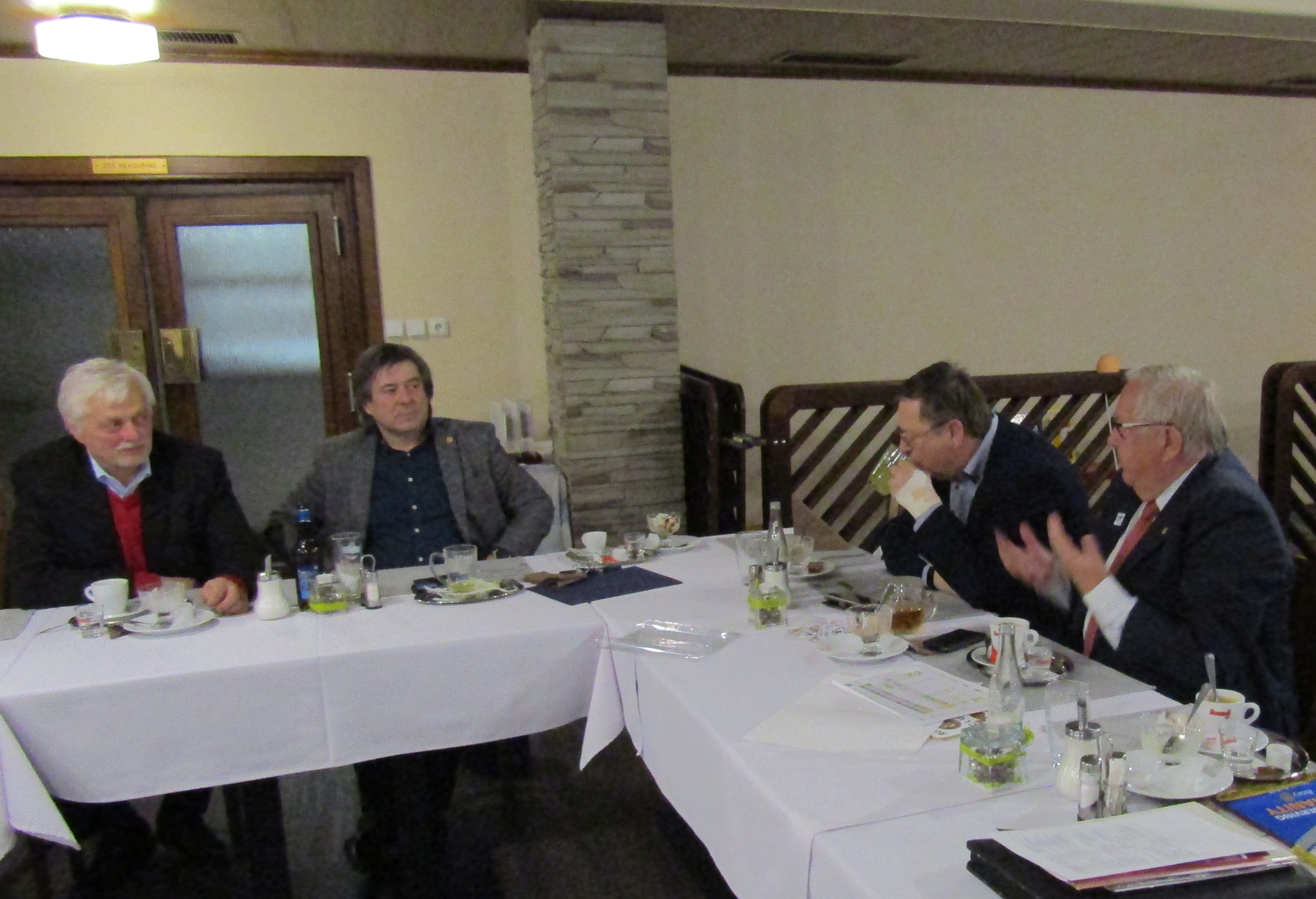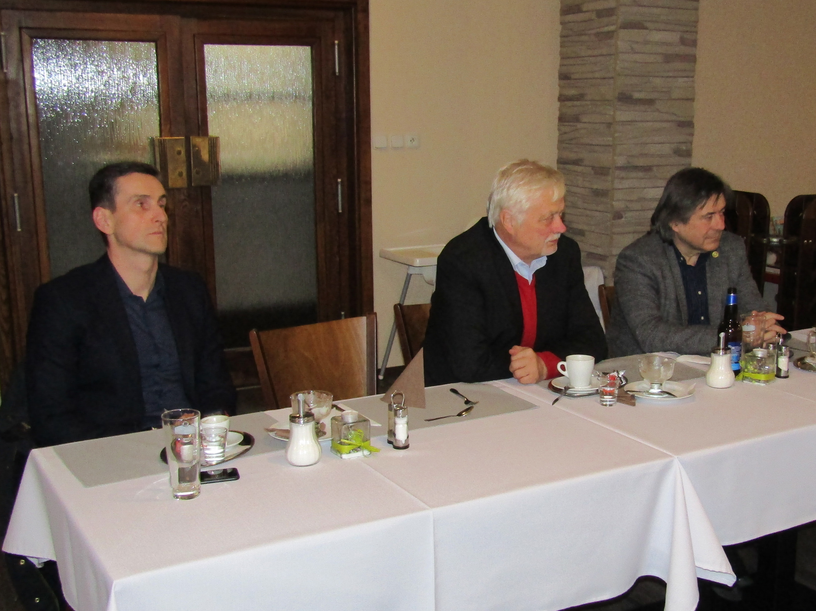 Třetí únorová schůzka RC se uskutečnila v hlavní restauraci hotelu Patria. Naše obvyklé místo klubových schůzek - salonek bylo aktuálně využito k přestěhování právě rekonstruované recepce hotelu. Přestože v restauraci nebyl příliš velký počet dalších hostů, některé dámy komunikovaly až příliš hlasitě, takže nám poněkud chyběla obvyklá akustická pohoda. S nostalgií jsme proto vzpomínali na doby, kdy se naše schůzky uskutečňovaly ve whisky baru hotelu Adam, kde existovala absolutní zvuková izolace. Zahájení schůzky se tentokrát muselo odložit až za „akademickou čtvrthodinku“ v souvislosti se skutečností, že se někteří členové klubu v důsledku plnění neodkladných pracovních povinností dostavili s neobvykle velkým spožděním. S ohledem na nepřítomnost presidenta našeho Rotary klubu Vaška Flandery se musel funkce řízení schůzky ujmout sekretář RC K. Javůrek. V úvodu této mimořádné úterní klubové schůzky sekretář uvital vzácného hosta - guvernéra Distriktu 2240 Štěpána de Wolfa a jeho doprovod – asistenta guvernéra Petra Javoříka. Hned po zahájení se podávala večeře, kde bylo jako hlavní chod – poměrně slušně upravené pečené krůtí prsíčko se smetanovým hráškem a hranolkami. Jako desert jsme pak dostali zmrzlinu s kousky ovoce a se šlehačkou.