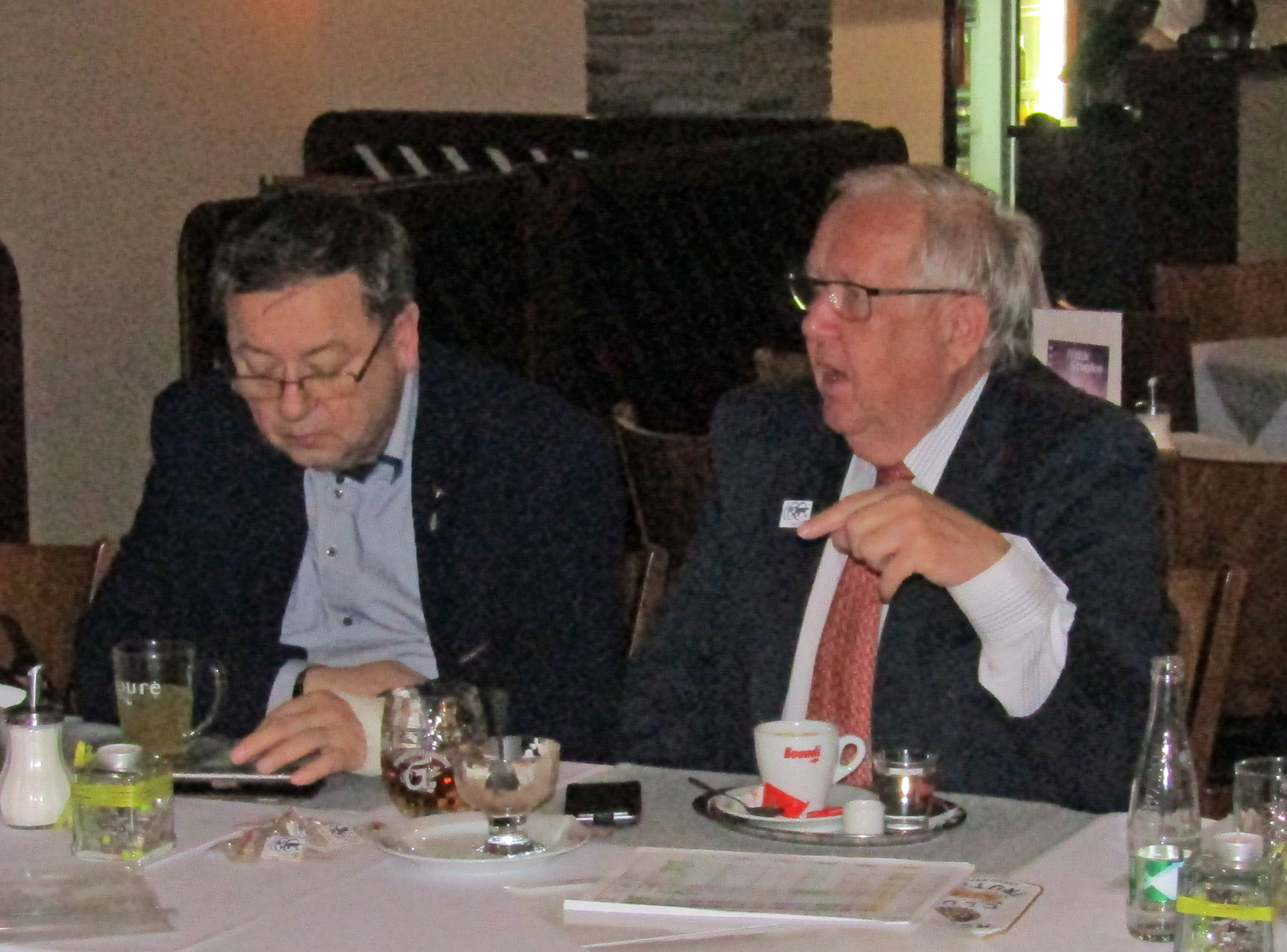 V následující již méně oficiální části schůzky nás guvernér seznámil se svým velmi realistickým pohledem na problematiku složení českých Rotary klubů. Neprosazuje násilné přijímání žen do RC, ale velmi fandí přijímání mladých členů, kteří s sebou do klubů přivedou své další vrstevníky. Velmi pochvalně se v této souvislosti vyjádřoval o RC Liberec, kde má i funkci presidenta velmi aktivní 37 letý Petr Sluka a příští presidentkou bude současný sekretář 32 letá Jana Šrýtrová. Podle guvernéra musí v českých klubech proběhnout generační výměna. Podstatně jiná je situace ve slovenských klubech, kde je věk členské základny podstatně nižší. Rovněž prestiž Rotary klubů je na Slovensku vyšší. V této fázi schůzky se rozvinula poměrně široká diskuse našich členů, kteří se snažili specifikovat příčiny odlišného postavení Rotary hnutí v ČR. Někteří z našich členů se domnívají, že by se mělo propagaci Rotary v celorepublikovém měřítku věnovat více pozornosti ze strany distriktních funkcionářů. Guvernér v této souvislosti vyzvedl opět liberecký RC, který k popularizaci své činnosti významně využívá internetová media. Dále se diskutovaly i možnosti, jak do činnosti Rotary klubů zapojit a pro členství v RC získat rodiče výměnných studentů. Na přetřes přišlo i sepětí českých politických špiček s Rotary. Petr Javořík v této souvislosti informoval o tom, že mezi senátory je asi 7 rotariánů. Guvernér Štěpán de Wolf pozitivně hodnotil aktivní zapojení našich členů do diskuse, neboť se při svých předchozích návštěvách v Rotary klubech setkal i s poměrně pasivními členy. Celkově bylo patrné, že se problémem rozšiřování počtu našich členů zabýváme a máme velkou snahu ho vyřešit. Guvernér kladně hodnotil i zapojení našich nejmladších členů do vedení klubu ve funkci presidenta. Vyjádřil přesvědčení, že právě tito mladší členové svou aktivitou a novými podněty na činnost klubu dokáží zatraktivnit náš klub pro další zájemce o členství v Rotary. Na závěr schůzky pozval guvernér zástupce z řad našich členů na distriktní konferenci ve Františkových Lázních, kterou organizuje se svým chebským RC, a na PETS v hotelu Flóra v Olomouci. V této souvislosti kladně zhodnotil oddělení školení pro budoucí presidenty Rotary klubů od školení sekretářů, což považuje za svou zásluhu. Celé vystoupení distriktního guvernéra bylo velmi přátelské a kolegiální, což v úplném závěru zkonstatoval sekretář našeho RC při poděkování Štěpánu de Wolfovi za jeho návštěvu našeho klubu. Schůzka se tentokrát poněkud protáhla, takže se její účastníci rozcházeli až po 21 hodině.