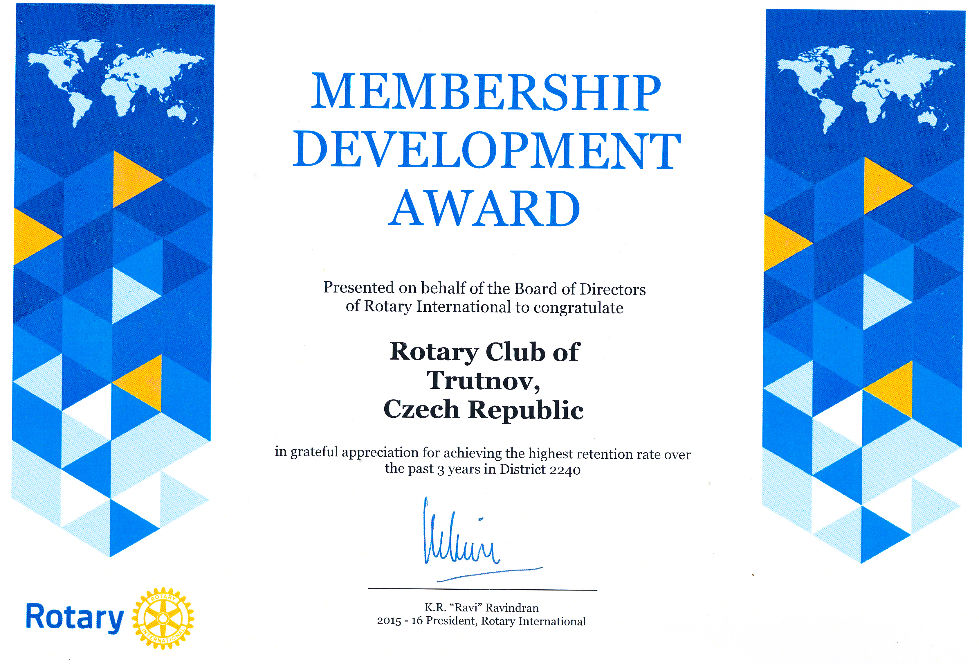 Čtvrtá únorová schůzka RC se uskutečnila v hlavní restauraci hotelu Patria. Naše obvyklé umístění v samostatném salonku se již druhou schůzku nemohlo realizovat v důsledku rekonstrukce recepce, která se právě do salonku aktuálně přesunula. Na rozdíl od minulé schůzky nás toto provizorium neomezovalo, neboť i v hlavní restauraci jsme byli sami a naše jednání nebylo narušováno dalšími hosty. Jednání zahájil a dále vedl president RC Vašek Flandera. Úvodem přítomní členové představenstva klubu presidenta seznámili s průběhem minulé schůzky, v níž náš klub navštívil guvernér Distriktu 2240 Štěpán de Wolf. Tato schůzka byla zhodnocena pozitivně, neboť se nám podařilo zajistit representativní účast našich členů. K pozitivnímu hodnocení přispěl svým kolegiálním přístupem i sám guvernér a jeho asistent Petr Javořík. Sekretář RC specifikoval „Čestné uznání“, které našemu klubu udělil president Rotary International za rok 2015-16 K. R. Ravindran. Toto Čestné uznání: Ocenění za vývoj členství obdržel náš klub v rámci Distriktu 2240 za nejvyšší míru rozšiřování počtu členů v uplynulých 3 letech.
