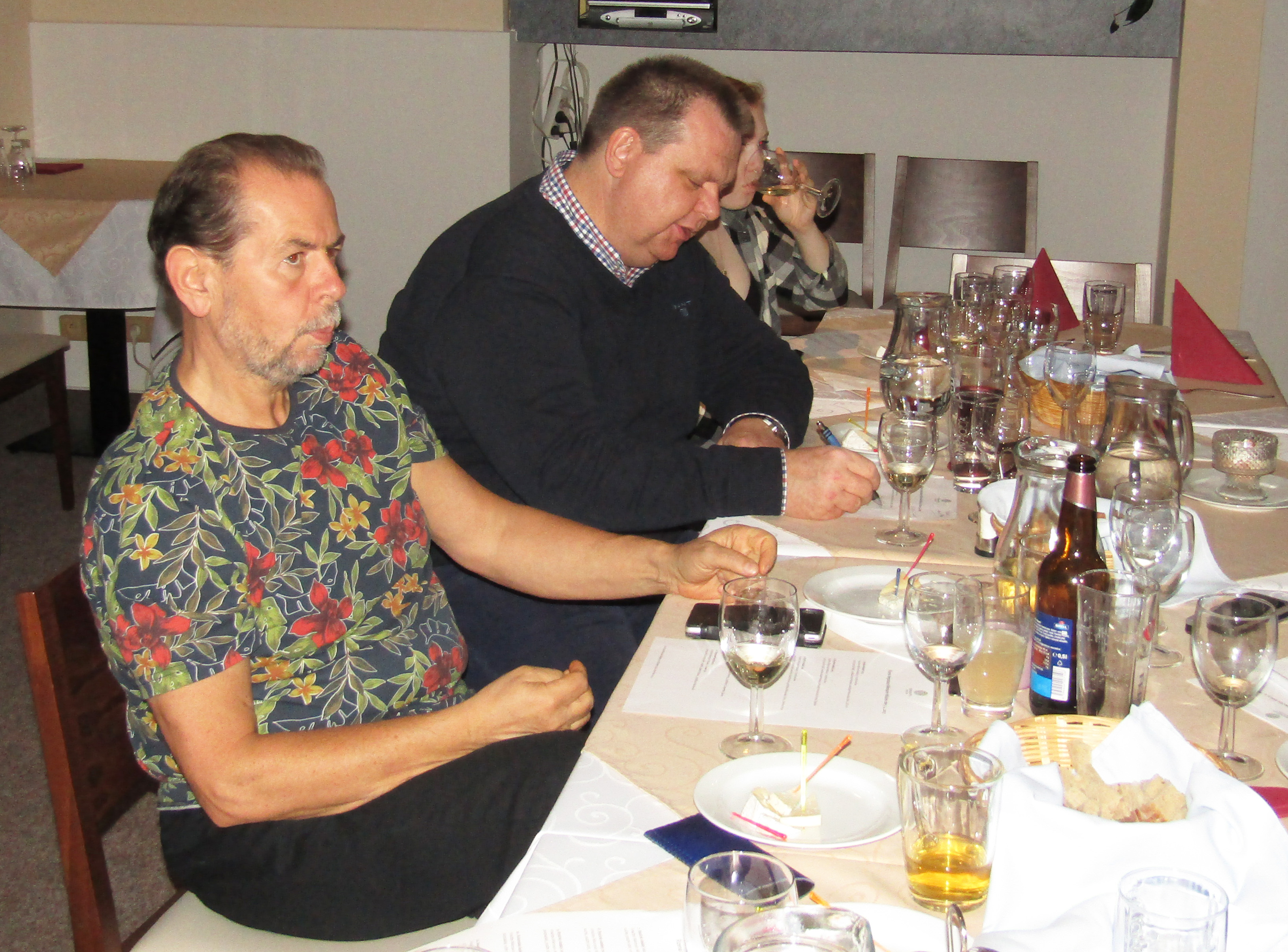 Pochvalovali jsme si someliérovu strategii dávat postupně degustovat stále kvalitnější vína. Tím bylo dosaženo kýženého efektu – s každým dalším vínem jsme byli víc a více spokojeni. Poslední z dvanácti degustovaných vín bylo jediné červené víno Svatovavřinecké 2015 a ani to ve své kvalitě nevybočovalo z úrovně předchozí přehlídky bílých vín. Vzhledem k tomu, že většina přítomných rotariánů na schůzku dorazila automobilem, degustoval se prakticky jen malý doušek předloženého vína. Tím jsme z otevřených lahví zkonzumovali jen asi 1/3 obsahu. Proto jsme si nedopité lahve na závěr rozebrali k domácí konzumaci, při níž si již budeme moci dopřát degustaci plnými doušky. Nejprve byly rozebrány lahve, které jsme ochutnávali na závěr schůzky, ale brát se dalo i naslepo, neboť všechna vína si svou kvalitou zasloužila konzumaci odborníků .