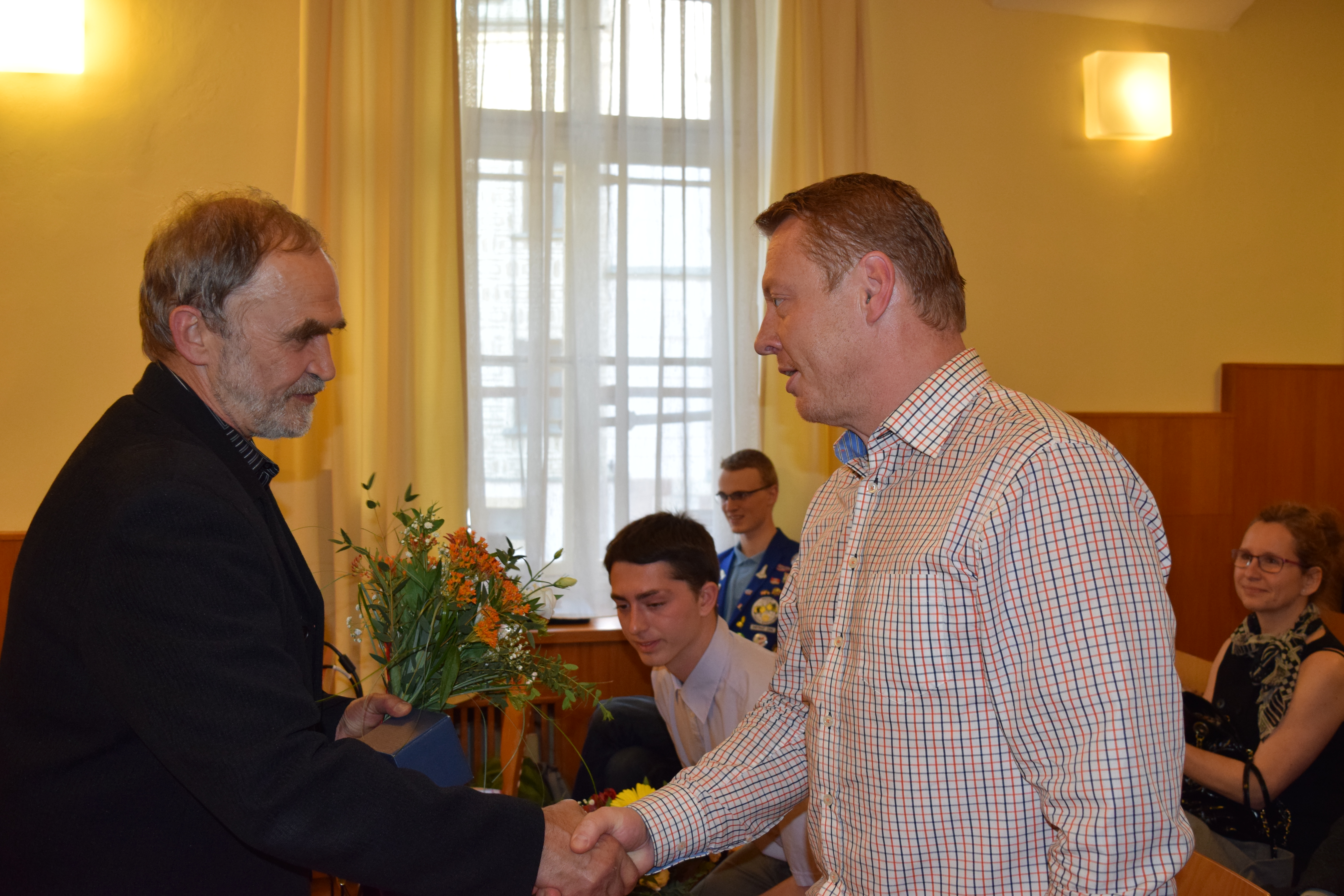 Centrum dobrovolníků při oblastní Charitě Trutnov navrhlo k ocenění studenta SZŠ v oboru Zdravotnické lyceum Davida Šrůtka, organizace Barevné domky Hajnice doporučila k ocenění pana Radka Libnara, Klub vozíčkářů Trutnov mezi svými četnými dobrovolníky nominoval na ocenění pana Romana Bélu a dorostová skupina ČČK při SZŠ v Trutnově studenta oboru Zdravotnický asistent Tomáše Prudiče. Zdůvodnění všech nominací přečetl sekretář RC Karel Javůrek a spolu s presidentem RC Vaškem Flanderou všem výše jmenovaným předali květiny a krásné ceny, které nám pro tento účel vyrobila poděbradská firma Artcristal Bohemia s.r.o., jejímž majitelem je rotarián Ing. Jan Miuchálek. Oba studenti SZŠ obdrželi ještě navíc 1.000,- Kč. Po předání cen nejaktivnějším dobrovolníkům se o slovo přihlásil pan Roman Béla, jenž za všechny oceněné poděkoval a velmi pozitivně zhodnotil podporu našeho Rotary klubu těm, kteří bezplatně pomáhají potřebným. Bylo to poprve, kdy se jeden z oceněných sám iniciativně odhodlal k ohodnocení této naší aktivity. Zcela na závěr poděkoval president RC Vašek Flandera všem přítomným za jejich účast na pozitivním průběhu celého Společenského večera.