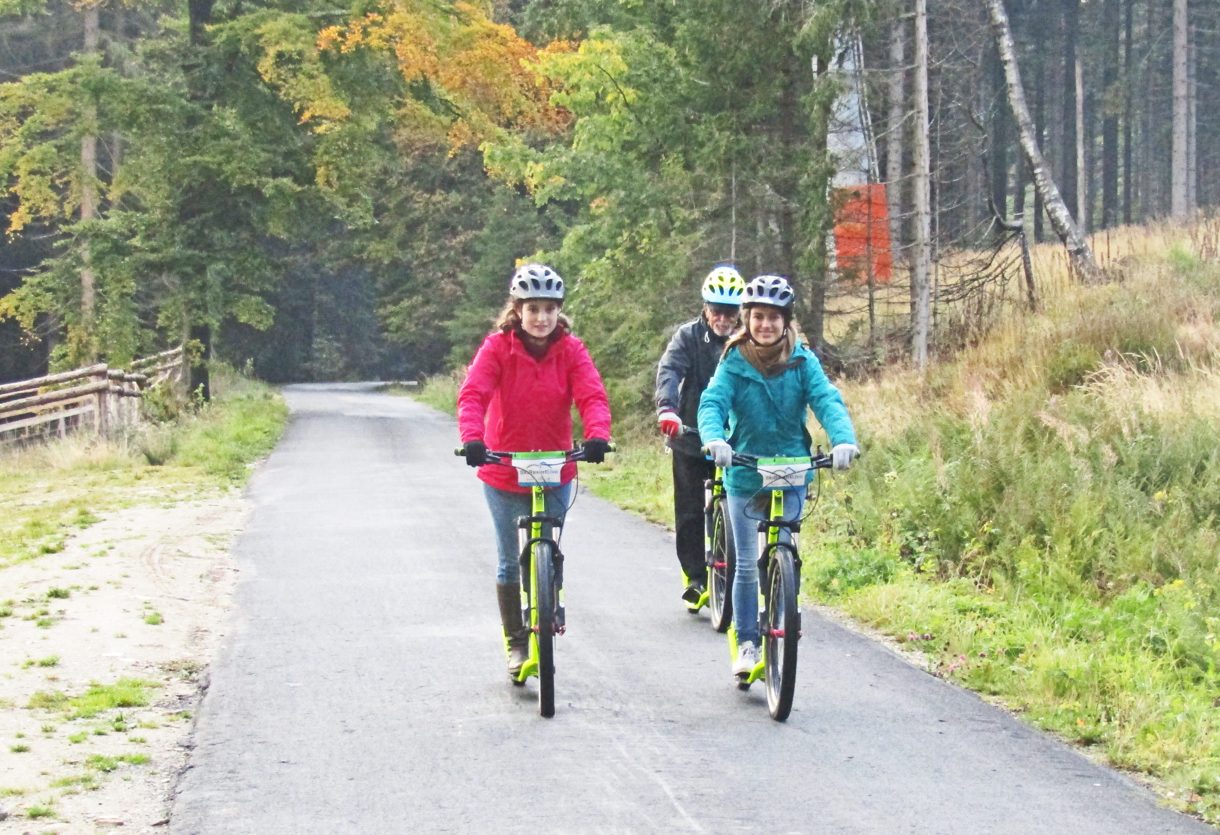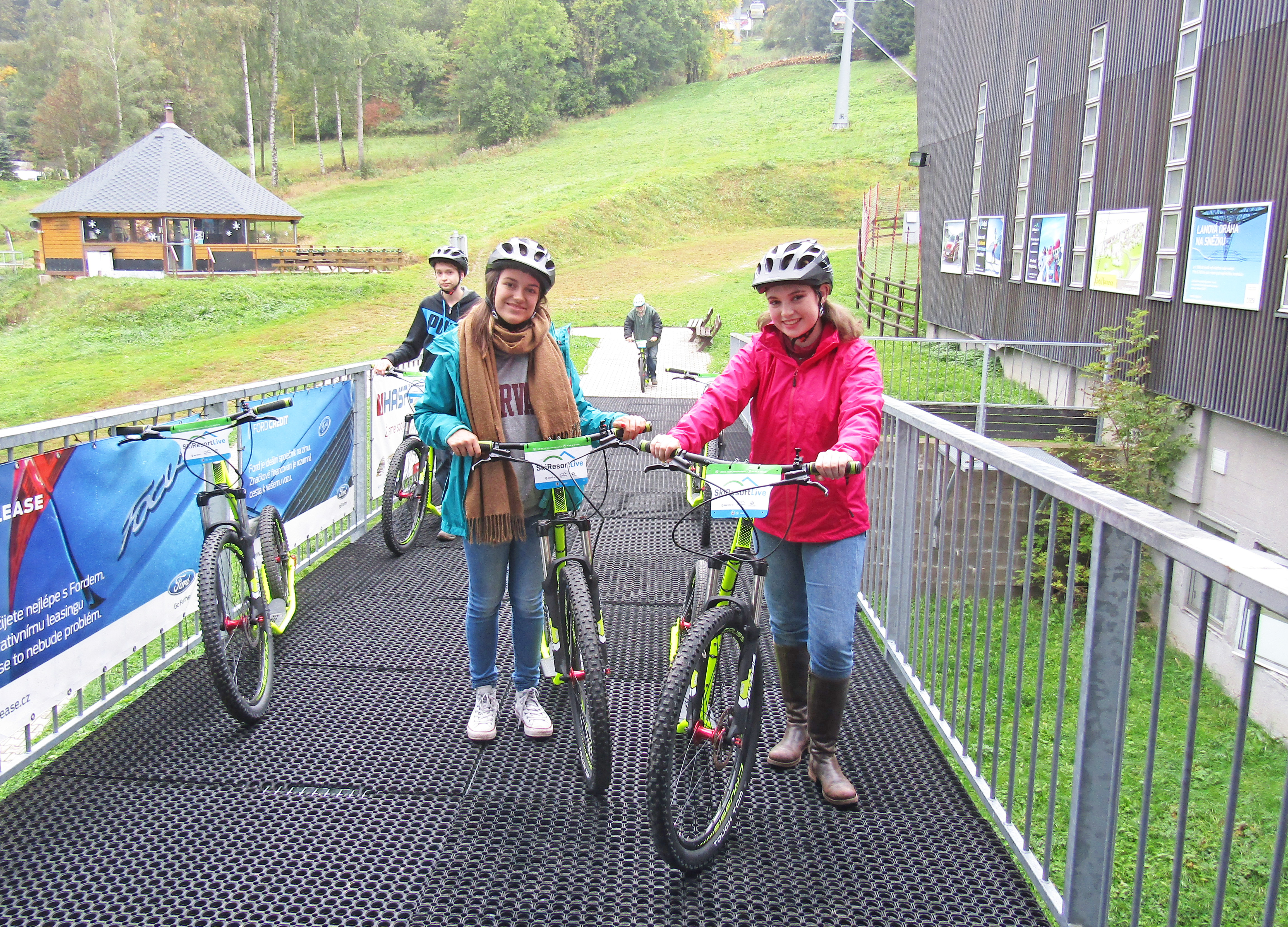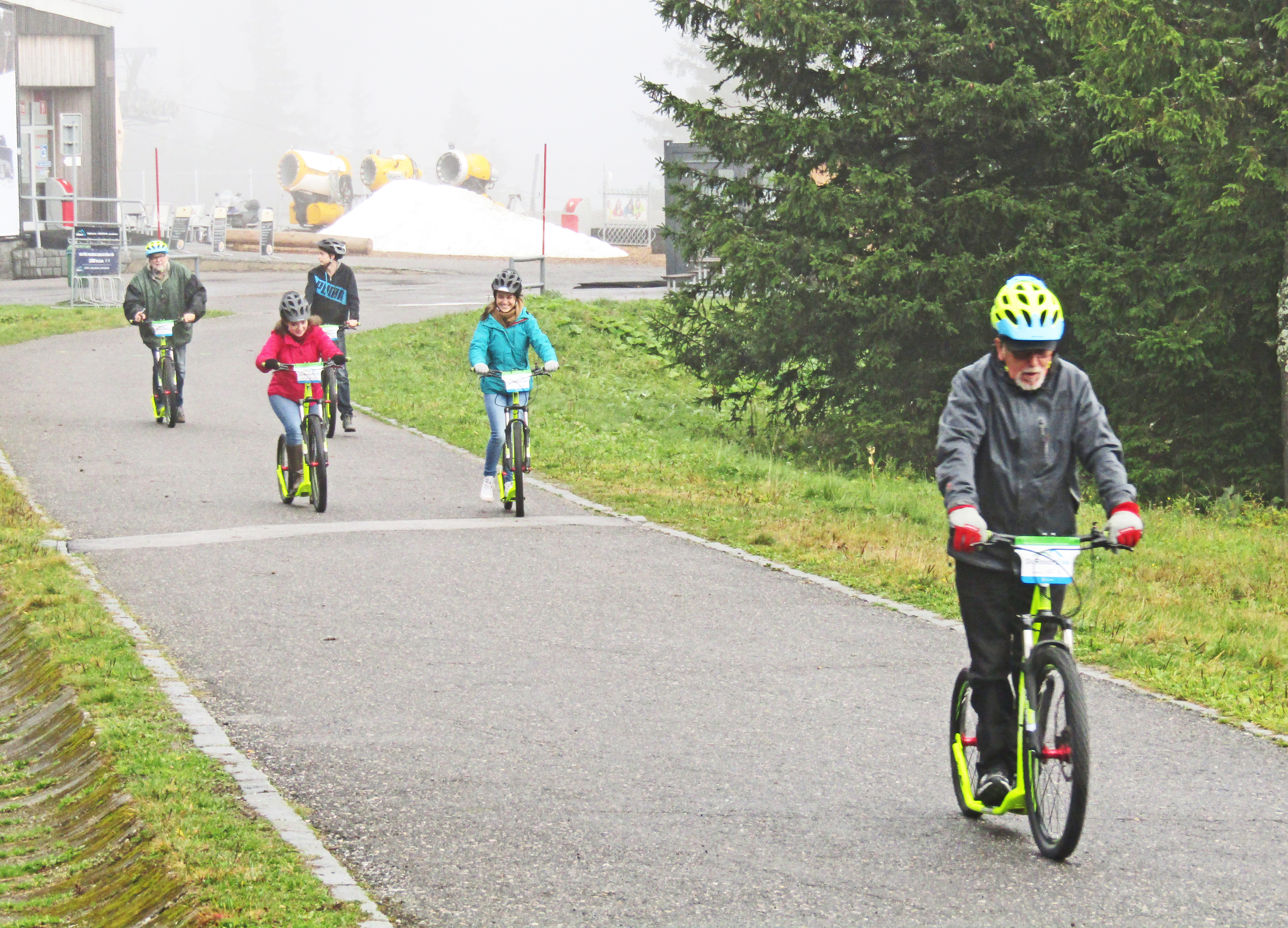 Čtvrtá zářiová schůzka Rotary klubu se realizovala v Jánských Lázních při tradičním koloběžkovém sjezdu Černé hory. Letošní akce byla provázena velmi proměnlivým počasím. Již při příjezdu účastníků do Jánských Lázní se střídaly krátké přeháňky s obdobím slunečního svitu. Na poněkud nestálé klimatické podmínky se však všichni účastníci zodpovědně připravili a do akce nastoupili v oblečení, které bylo schopné odolat i případnému dešti. První účastníky na parkovišti u lanovky na Černou horu přivítala prosluněná obloha, a tak se hned v úvodu při kráťoučkém čekání na lanovku nešetřilo úsměvy. Materiální zajištění akce zajišťoval Karel Rada, takže i koloběžky byly tentokrát zapůjčeny v nově zřízené půjčovně při dolní stanici lanovky na Černou horu. Nabídka půjčovny byla skutečně velmi široká, všichni účastníci sjezdu obdrželi i ochranné přilby. Při výjezdu na Černou horu bylo patrné, že se horní partie Krkonoš nacházejí v mracích. Proto i výstup z lanovky provázela snížená viditelnost. Za horní stanicí lanovky jsme před sněhovými děly, připravenými na blížící se zimní sezónu, objevili kupu sněhu, na níž si zejména naši nejmladší rodinní příslušníci a výměnná studentka zapózovali pro přítomné fotografy ještě před začátkem sjezdu. Start sjezdu provázela několikaminutová dešťová přeháňka, ale již po prvním kilometru sjezdu deštík ustal. Ve spodních partijích Černé hory nás už zase provázel i sluneční svit. Sjíždení 8 km dlouhé trasy po kvalitní asfaltové silničce poskytovalo koloběžkářům jen poněkud vlhčí prostředí, a při pomalejším tempu sjezdu se dal eliminovat i odstřik vody od pneumatik koloběžek. Tuto nejoptimálnější variantu sjíždění si zvolily Grace z Kanady a Míša Radová, neboť po celou dobu sjezdu stihly čile nepřetržitě konverzovat pouze v angličtině. Prim přitom hrála naše zahraniční studentka, která ve výmluvnosti zřejmě překoná všechny inboundy, které jsme za 15 let zahraničních výměn měli. Pomalou formu sjezdu musel přijmout i Vašek Němec, který se jako obvykle ujal role uzavírajícího člena konvoje. Zdolání osmikilometrové trasy jsme absolvovali v poměrně rychlém tempu, neboť jsme nechtěli příliš prodlužovat provozní dobu půjčovny koloběžek, ktrerá oficiálně končila v 18.00 hodin. Těsně před setměním jsme koloběžky vrátili a právě včas před další kraťoučkou přeháňkou jsme se stihli před hotelem Omnia převléknout do suchého oblečení. V restauraci nás uvítal (podle vyjádření Vaška Němce) „svatebně“ prostřený stůl pro 15 osob. Karel Rada při předčasné rezervaci předpokládal poněkud větší účast rotariánů a jejich rodinných příslušníků. Připravenou velkou tabuli jsme tak obsadili právě z poloviny. S úrovní večeře jsme byli tentokrát poněkud méně spokojeni, než jak tomu bylo při předchozích návštěvách restauračního provozu Omnie. Nejpozitivněji jsme nakonec zhodnotili pouze specialitu restaurace - SkiResort burger se slaninou, který si zvolily obě dívky a K. Rada degustoval.