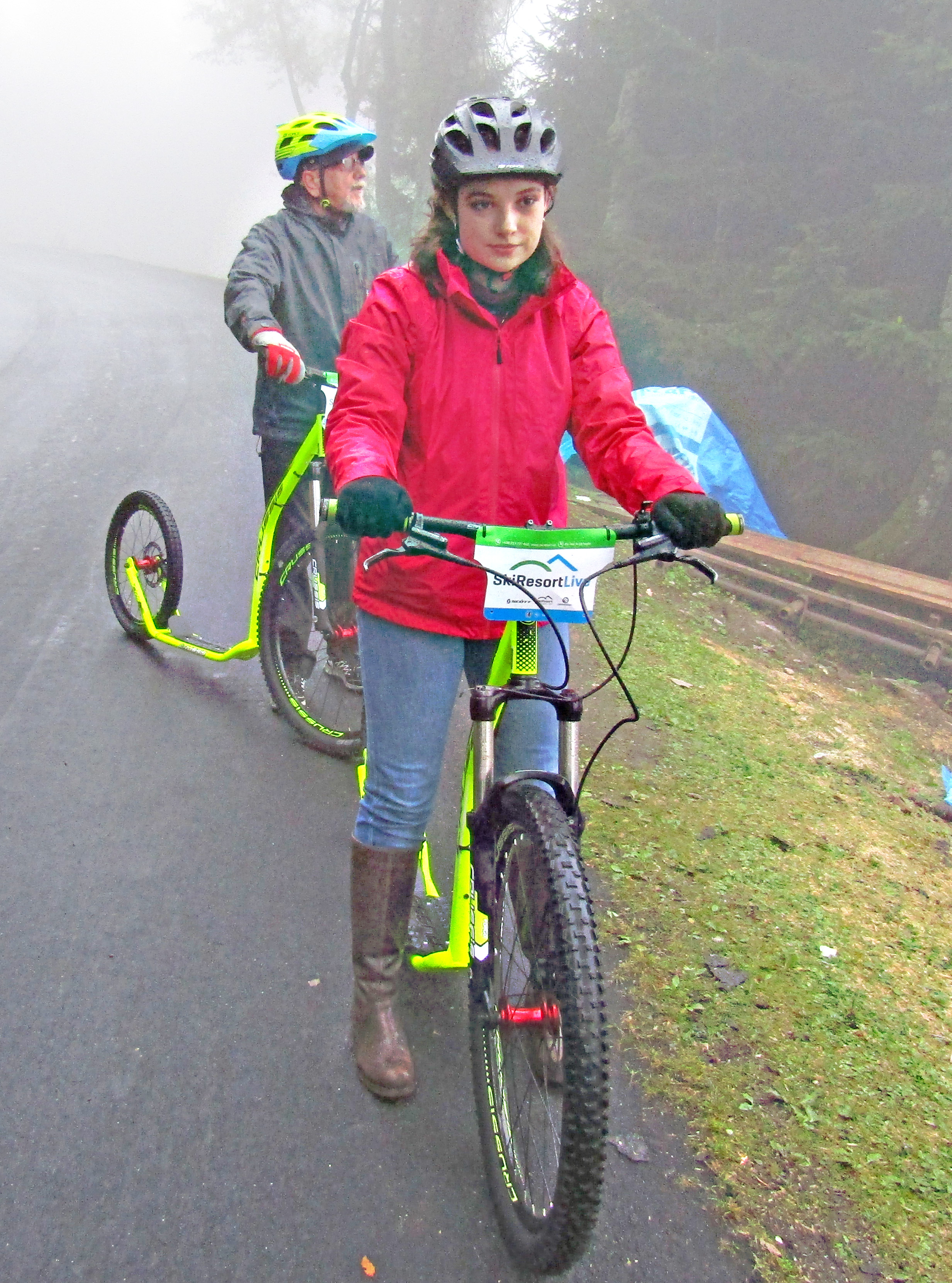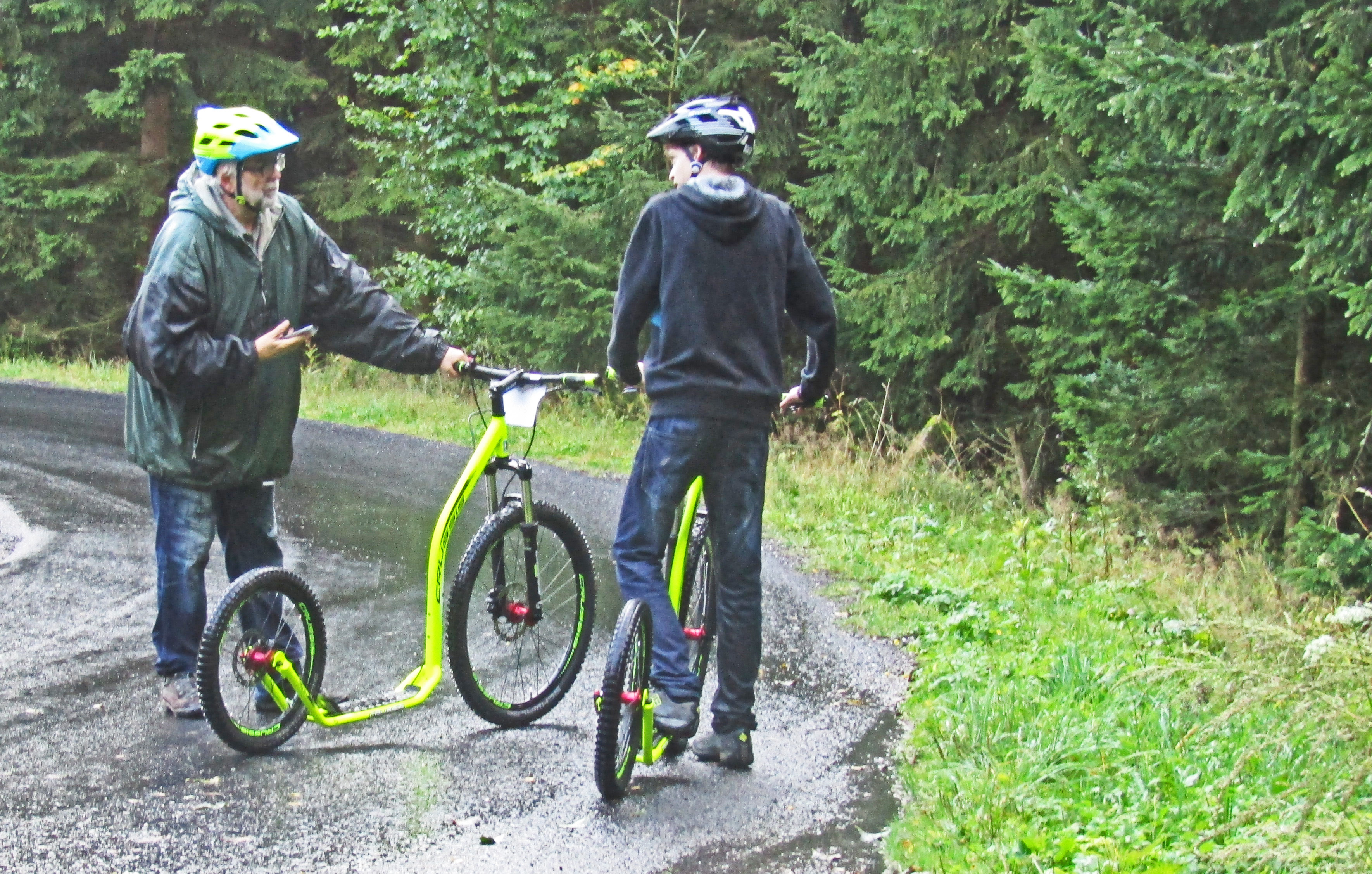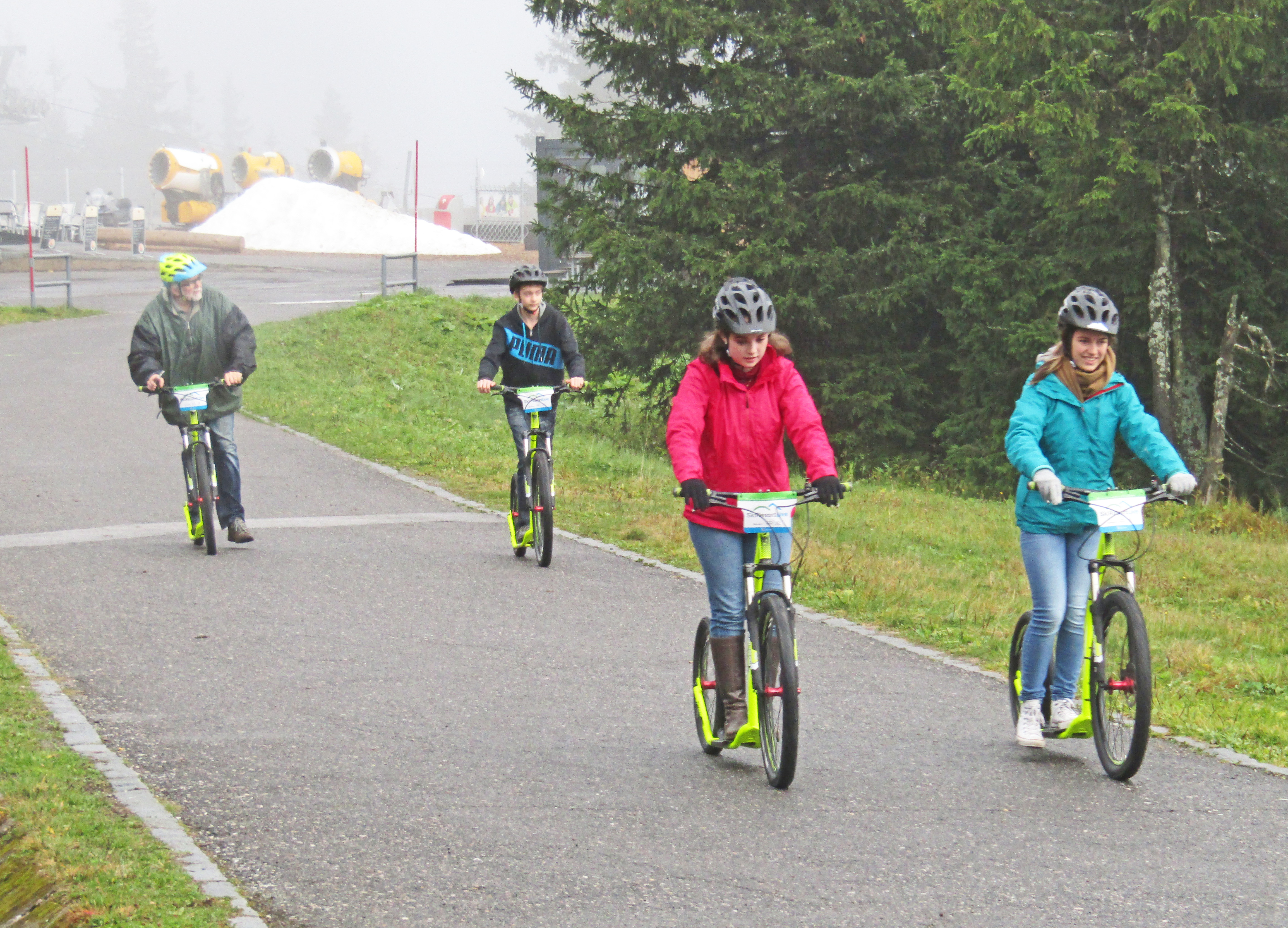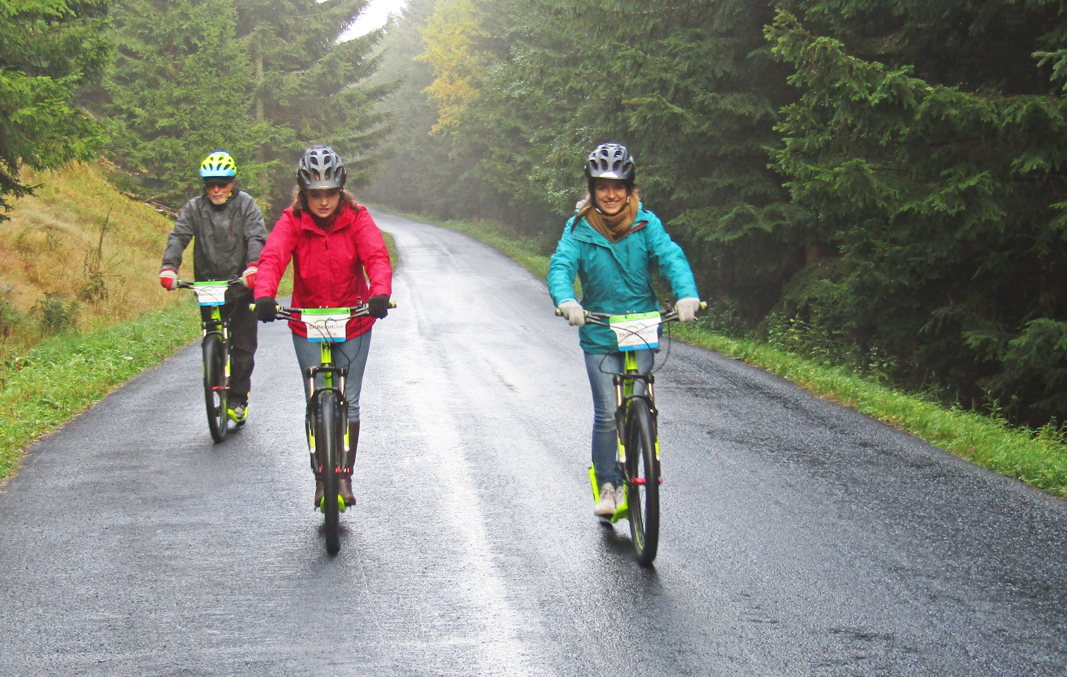 Čtvrtá zářiová schůzka Rotary klubu se realizovala v Jánských Lázních při tradičním koloběžkovém sjezdu Černé hory. Letošní akce byla provázena velmi proměnlivým počasím. Již při příjezdu účastníků do Jánských Lázní se střídaly krátké přeháňky s obdobím slunečního svitu. Na poněkud nestálé klimatické podmínky se však všichni účastníci zodpovědně připravili a do akce nastoupili v oblečení, které bylo schopné odolat i případnému dešti. První účastníky na parkovišti u lanovky na Černou horu přivítala prosluněná obloha, a tak se hned v úvodu při kráťoučkém čekání na lanovku nešetřilo úsměvy. Materiální zajištění akce zajišťoval Karel Rada, takže i koloběžky byly tentokrát zapůjčeny v nově zřízené půjčovně při dolní stanici lanovky na Černou horu. Nabídka půjčovny byla skutečně velmi široká, všichni účastníci sjezdu obdrželi i ochranné přilby. Při výjezdu na Černou horu bylo patrné, že se horní partie Krkonoš nacházejí v mracích. Proto i výstup z lanovky provázela snížená viditelnost. Za horní stanicí lanovky jsme před sněhovými děly, připravenými na blížící se zimní sezónu, objevili kupu sněhu, na níž si zejména naši nejmladší rodinní příslušníci a výměnná studentka zapózovali pro přítomné fotografy ještě před začátkem sjezdu. Start sjezdu provázela několikaminutová dešťová přeháňka, ale již po prvním kilometru sjezdu deštík ustal. Ve spodních partijích Černé hory nás už zase provázel i sluneční svit. Sjíždení 8 km dlouhé trasy po kvalitní asfaltové silničce poskytovalo koloběžkářům jen poněkud vlhčí prostředí, a při pomalejším tempu sjezdu se dal eliminovat i odstřik vody od pneumatik koloběžek. Tuto nejoptimálnější variantu sjíždění si zvolily Grace z Kanady a Míša Radová, neboť po celou dobu sjezdu stihly čile nepřetržitě konverzovat pouze v angličtině. Prim přitom hrála naše zahraniční studentka, která ve výmluvnosti zřejmě překoná všechny inboundy, které jsme za 15 let zahraničních výměn měli. Pomalou formu sjezdu musel přijmout i Vašek Němec, který se jako obvykle ujal role uzavírajícího člena konvoje. Zdolání osmikilometrové trasy jsme absolvovali v poměrně rychlém tempu, neboť jsme nechtěli příliš prodlužovat provozní dobu půjčovny koloběžek, ktrerá oficiálně končila v 18.00 hodin. Těsně před setměním jsme koloběžky vrátili a právě včas před další kraťoučkou přeháňkou jsme se stihli před hotelem Omnia převléknout do suchého oblečení. V restauraci nás uvítal (podle vyjádření Vaška Němce) „svatebně“ prostřený stůl pro 15 osob. Karel Rada při předčasné rezervaci předpokládal poněkud větší účast rotariánů a jejich rodinných příslušníků. Připravenou velkou tabuli jsme tak obsadili právě z poloviny. S úrovní večeře jsme byli tentokrát poněkud méně spokojeni, než jak tomu bylo při předchozích návštěvách restauračního provozu Omnie. Nejpozitivněji jsme nakonec zhodnotili pouze specialitu restaurace - SkiResort burger se slaninou, který si zvolily obě dívky a K. Rada degustoval.