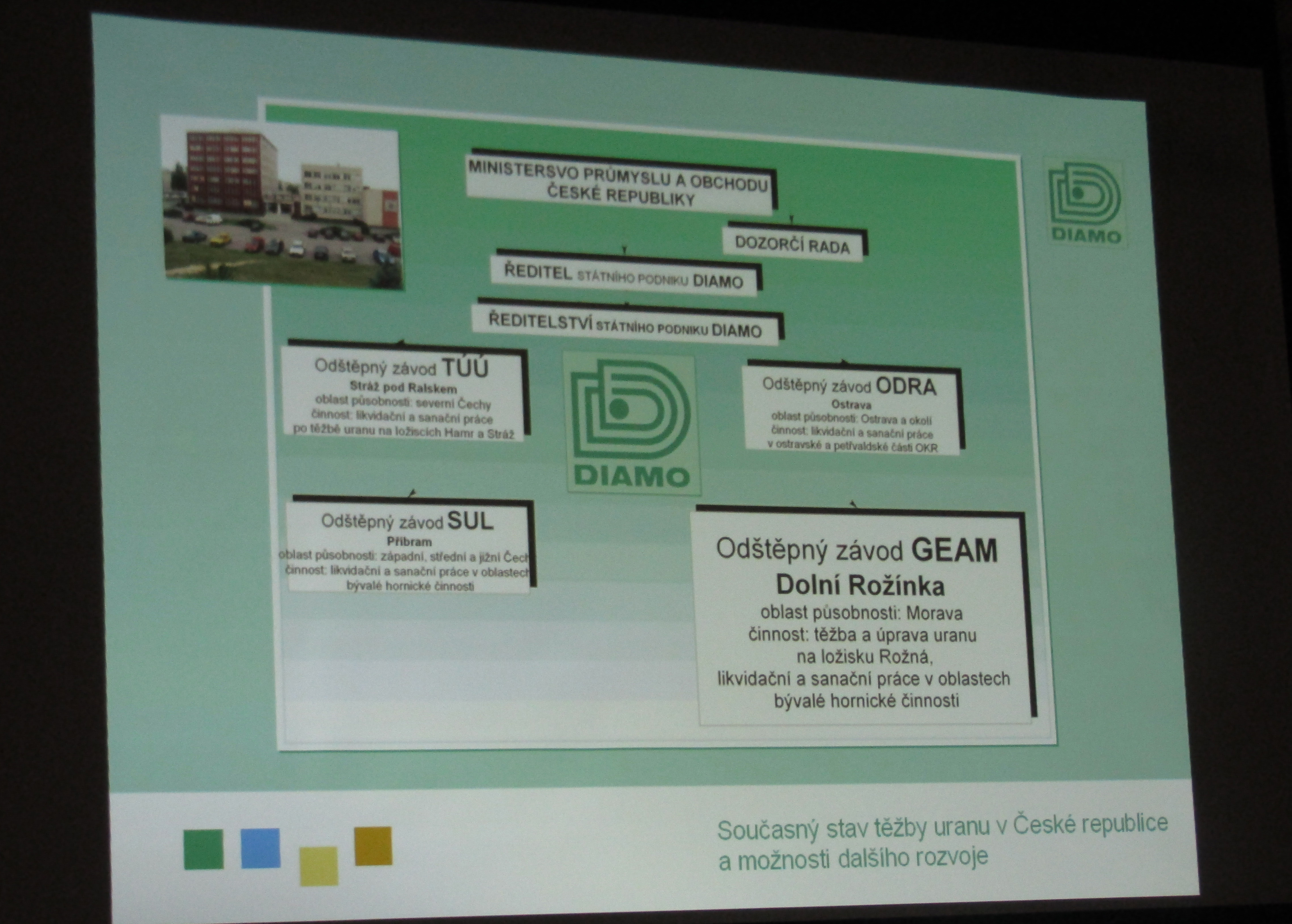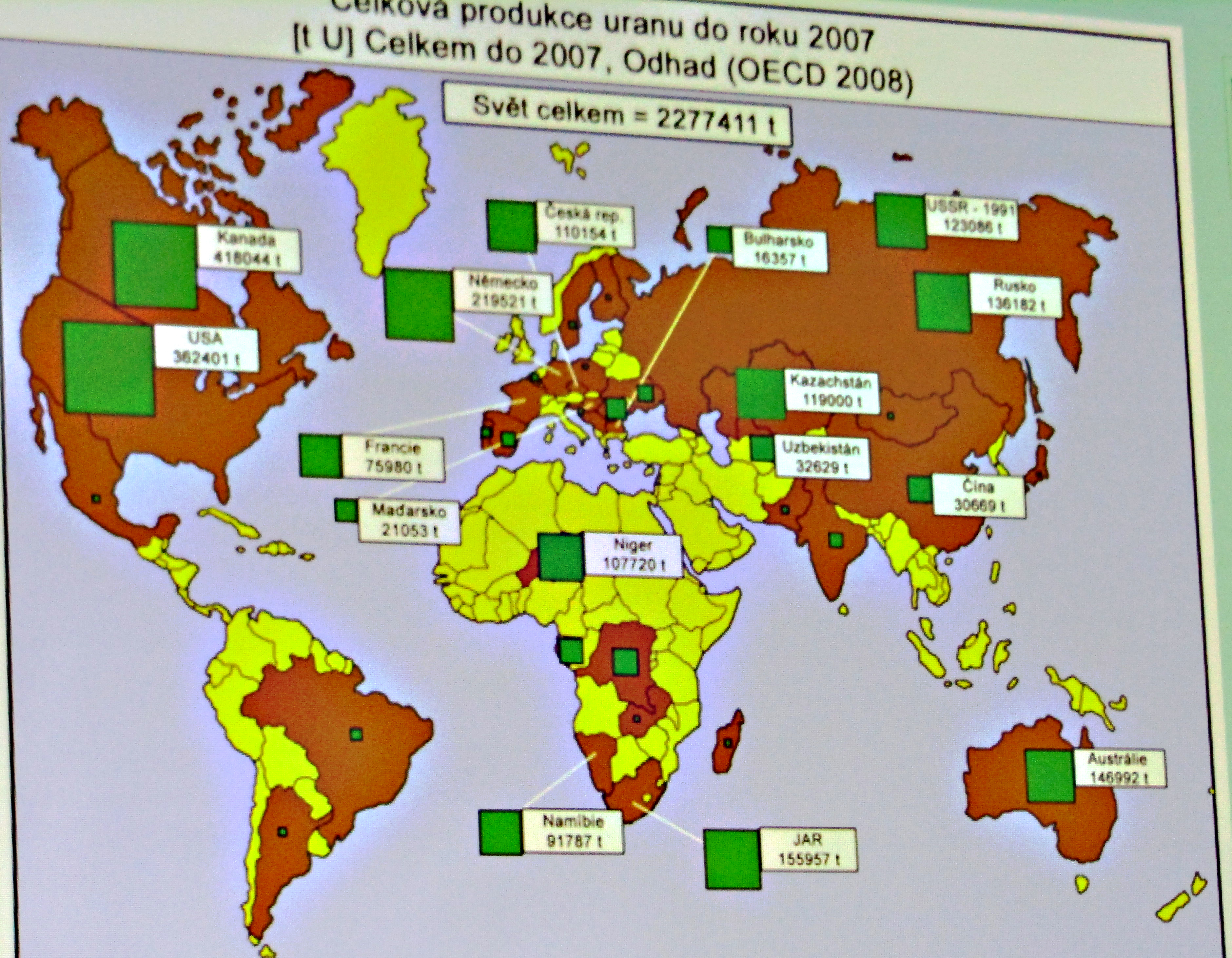 Po této úvodní části schůzky následovala přednáška našeho hosta. Z ní jsme se dověděli, že největšími spotřebiteli uranu v reaktorech jsou USA, vyspělé země EU (nejvíce Francie) a dále Japonsko, Jižní Korea a Rusko. Největší spotřebitelé přitom nedisponují zásobami a těžbou uranu, která by kryla jejich potřebu. Celkový deficit produkce uranu versus potřeba je přibližně 10 tis. tun uranu ročně. Cca 14 % celosvětové potřeby elektrické energie je vyráběno v jaderných elektrárnách. 450 reaktorů, které jsou ve světě v současné době v provozu, pracuje s celkovým výkonem 390 GWe. V současné době je kolem 50 dalších reaktorů ve výstavbě. Další reaktory je plánováno vybudovat v nejbližších letech a tím kapacita jaderných reaktorů vzroste na výkon přes 500 GWe kolem roku 2025. Očekávané požadavky na dodávky jaderného paliva a možnost vykrytí při realizovaném rozvoji jaderné energetiky ve světě činí kolem 100 tis. tun roční potřeby kolem roku 2025 a 150 tis. tun kolem roku 2050. V současné době je celosvětově těženo do 60 tis. tun uranu ročně, když reaktorová potřeba je o 10 tis. tun vyšší. Tento rozdíl je v současnosti kryt delaborizací jaderných zbraní a větším využitím skladovaných zásob uranu. V České republice je v jaderných reaktorech – jaderné elektrárny Temelín a Dukovany, vyráběno přes 30 % z celkově vyrobené elektrické energie. Uranový průmysl byl u nás od 50-tých do konce 80-tých let minulého století v rozvoji. Rokem 1990 začíná výrazný pokles těžby uranu. Jediným do dubna 2017 těženým ložiskem uranu v České republice bylo ložisko Rožná. Na tomto ložisku bylo od počátku těžby v roce 1957 vytěženo cca 20 milionů tun uranové rudy s průměrným obsahem 1,1 kg U na tunu rudy. Celkem tudíž bylo vytěženo na tomto ložisku více než 20 tis. tun uranu. V současné době již těžba uranové rudy neprobíhá, ale menší množství uranu se ještě stále získává při rozsáhlých sanačních pracech na všech uzavřených dolech. Tento objem těženého uranu samozřejmě nepokrývá potřeby české jaderné energetiky. Při rozvoji české jaderné energetiky, dostavbou JE Temelín a případně JE Dukovany, poroste nejen výkon jaderných elektráren, ale zároveň i jejich potřeba paliva. Na štěstí Česká republika disponuje vyhledanými a prozkoumanými zásobami uranu, které jsou schopny plně pokrýt potřeby české jaderné energetiky na příštích 50 let. Ložisko Rožná je po své 60-leté historii již prakticky vyčerpané a je proto nutné do budoucna zvažovat a případně realizovat otvírku a těžbu na jiných lokalitách. Jedna z nich je ložisko Brzkov – Horní Věžnice a případně Polná. Na tomto ložisku, intenzivně zkoumaném v 80. letech minulého století, činí objem těžitelných zásob více než 2 mil. tun rudy, což představuje při známých obsazích více než 3 tis. tun uranu. Ložisko Rožná bylo uvedeno v roce 1957 do těžby s předpokládanými geologickými zásobami menšími jak 700 tun uranu a přesto zde bylo vytěženo více než 20 tis. tun uranu. Ložisko Brzkov je prozkoumáno pouze do hloubkové úrovně 300 m. Zásoby zde budou jistě s hloubkou narůstat. Největším možným zdrojem uranu je oblast severočeské křídové tabule, kde byla do poloviny 90. let intenzivně těžena ložiska Hamr (hlubinným způsobem) a Stráž pod Ralskem (loužením in situ). Hlubinný důl je v oblasti Hamru zcela zlikvidován a v oblasti chemické těžby probíhá rozsáhlá sanace horninového prostředí. Tato oblast severočeské křídové tabule disponuje ještě zásobami uranu větším než 100 tis. tun. Svým objemem zásob uranu je tato lokalita mimořádná i z hlediska evropského. Je otázkou vývoje a výzkumu nových technologií těžby a zpracování uranu, které lze na tomto vysokokapacitním ložisku uplatnit a které budou maximálně šetrné k životnímu prostředí. Závěr: Česká republika disponuje dostatečnými zásobami uranu k pokrytí potřeb jaderné energetiky České republiky, ale stav potřebné a nutné legislativy není v současné době na takové úrovni, aby byla umožněna příprava uvedených lokalit k doprůzkumu a k následné těžbě. Z celosvětového hlediska jsou nejvýznamnějšími zdroji uranové rudy Austrálie, Kanada, Kazachstan a některé africké lokality, které si pro své budoucí energetické potřeby připravuje Čína.