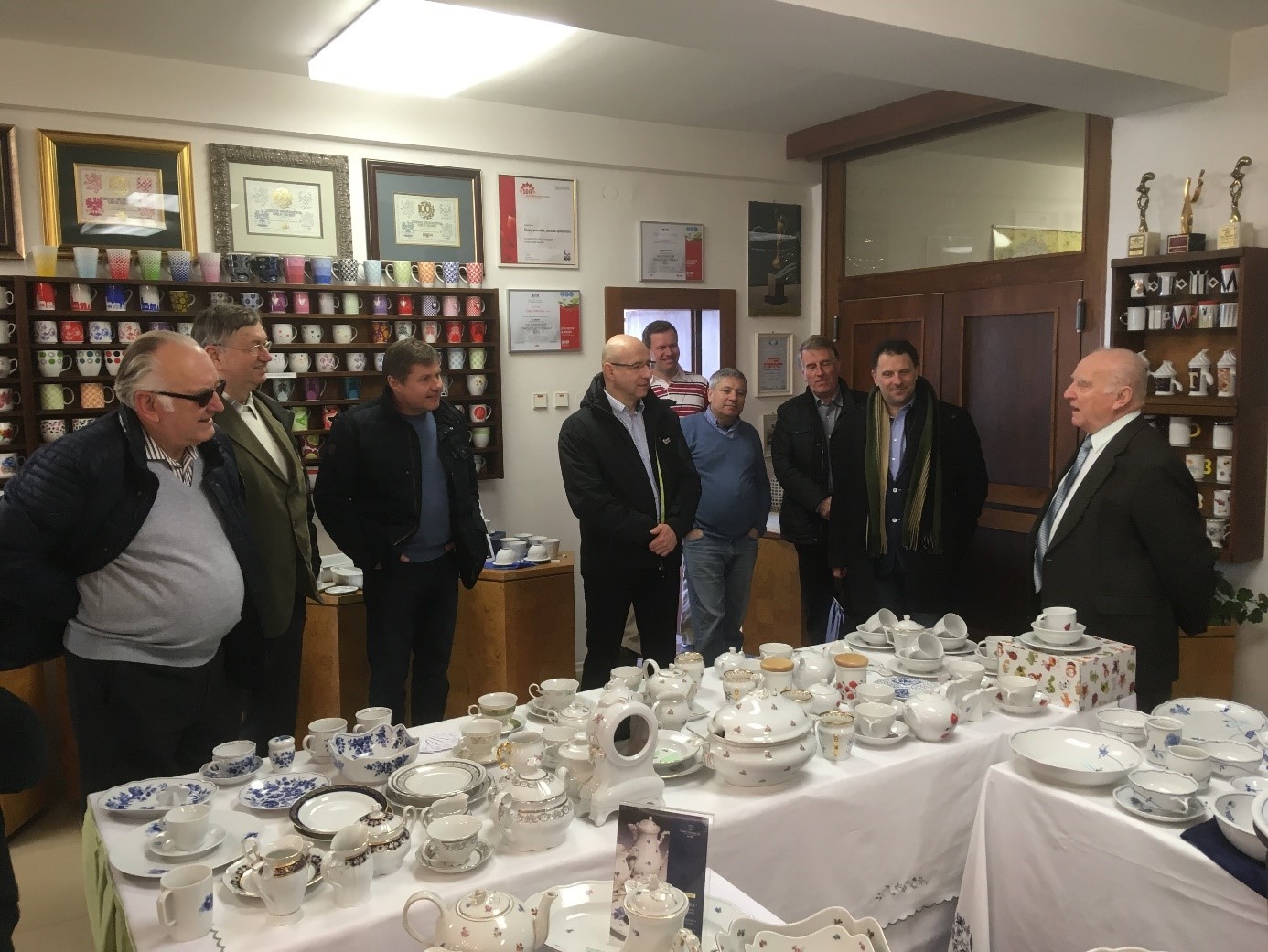 Absolvovali jsme komentovanou prohlídku továrny Český porcelán Dubí, založené v II.pol 19 stol na místě bývalého mlýna. Viděli jsme celý technologický proces od přípravy surovin až po glazurování a expedici. Majitel továrny, již 86 letý vitální p. Feix nás seznámil i s exportními zkušenostmi a s humornými příběhy ze svého dlouhodobého podnikatelského úsilí.