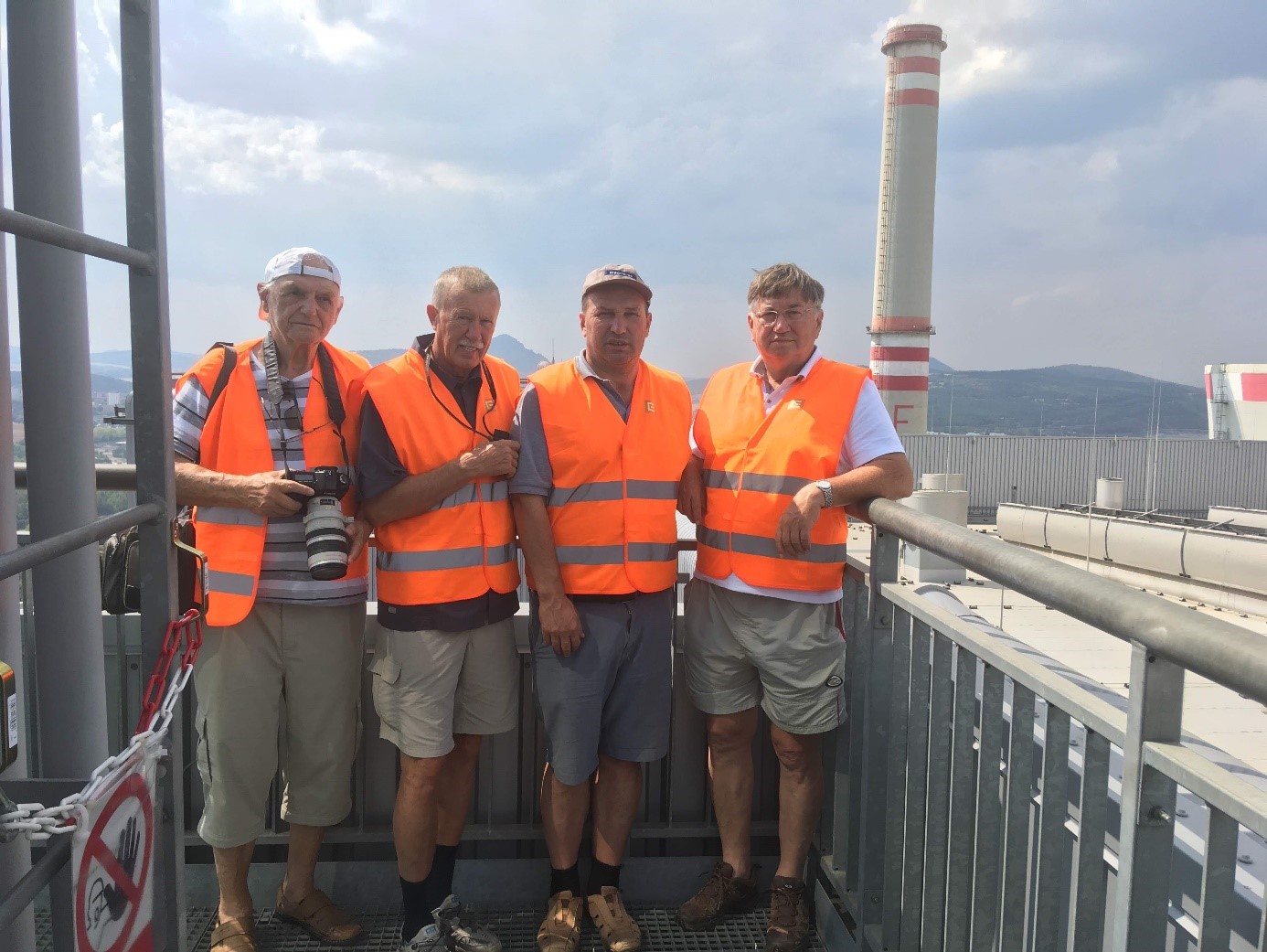 Navštívili jsme elektrárnu Ledvice ze skupiny ČEZ . Elektrárna byla postavena v roce 1966 s 1 blokem 200MW a 4 bloky 110 MW. V roce 2006 bylo přijato rozhodnutí o modernizaci, během níž došlo k vybudování moderního bloku o výkonu 660 MWe a nahrazení většiny původních bloků. Na nejvyšším bodě elektrárny je zřízeno prosklené vyhlídkové místo ve výši 144 m nad úrovní okolní krajiny. Z tohoto bodu je nádherný výhled na okolní krajinu, v našem případě byl výhled limitován rozptylovou situací způsobenou velkými vedry . V informačním centru v přízemí jsme shlédli 3D film o evolučním vývoji zajištování energetických potřeb lidstva .
