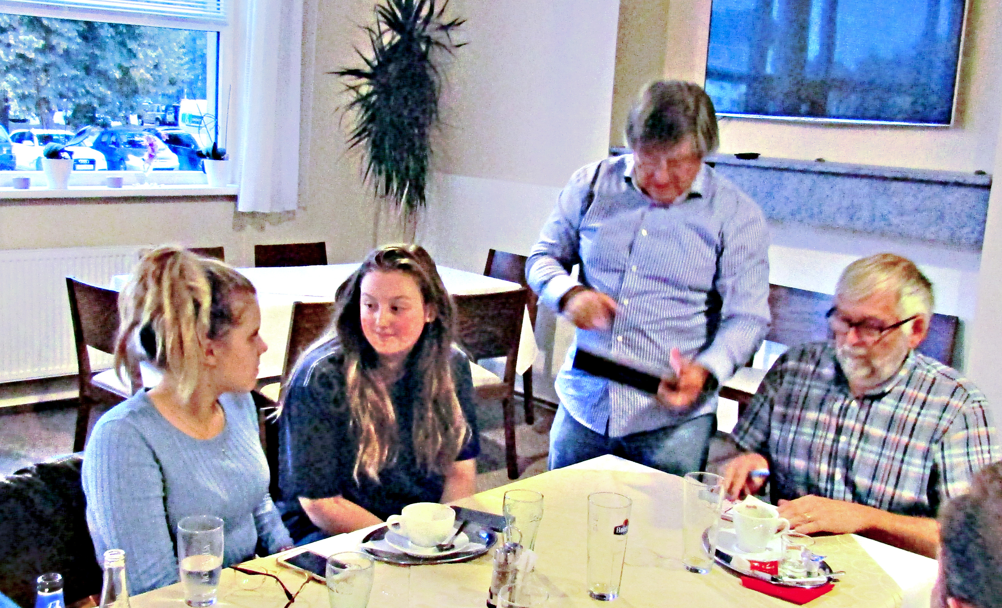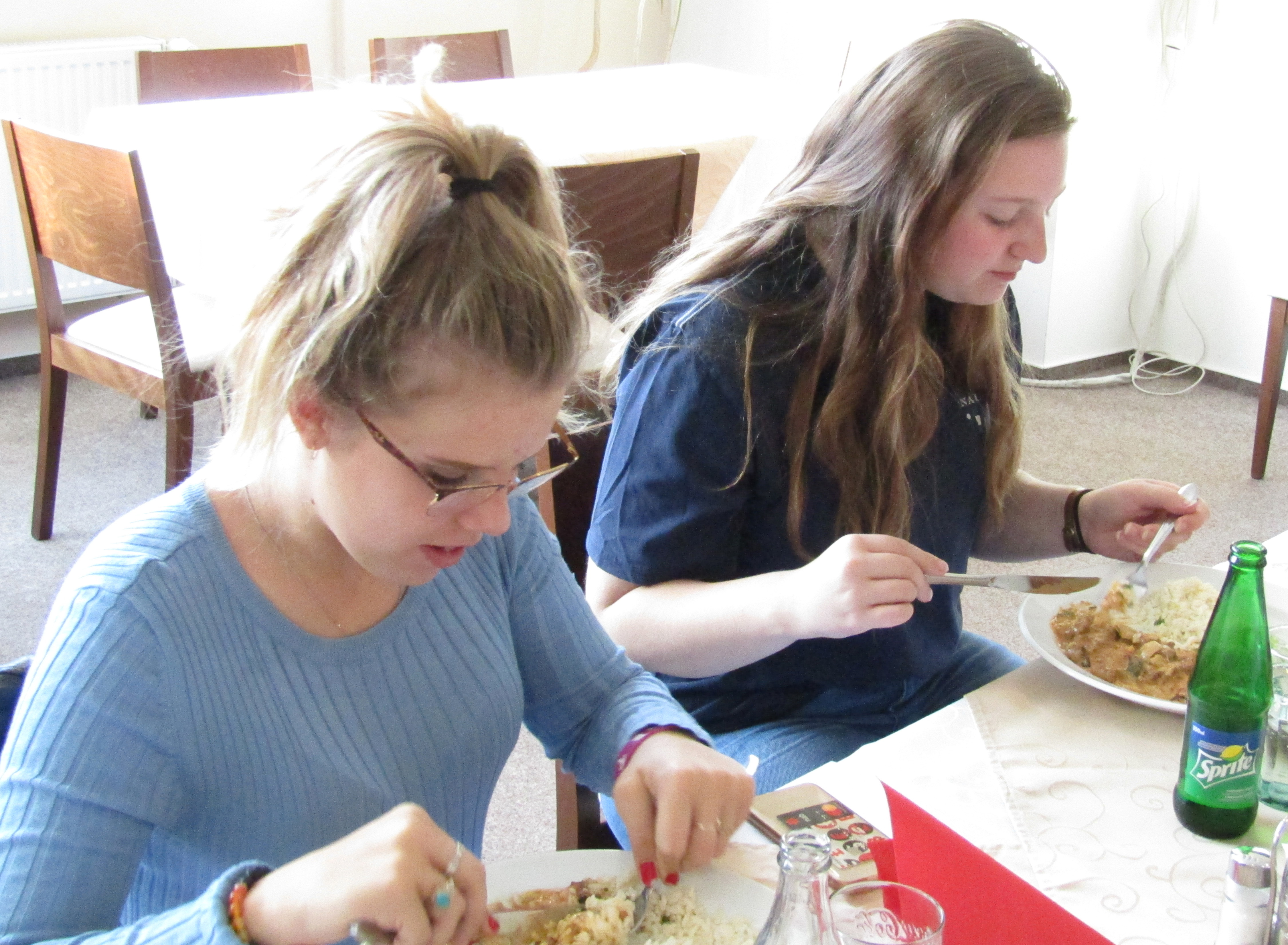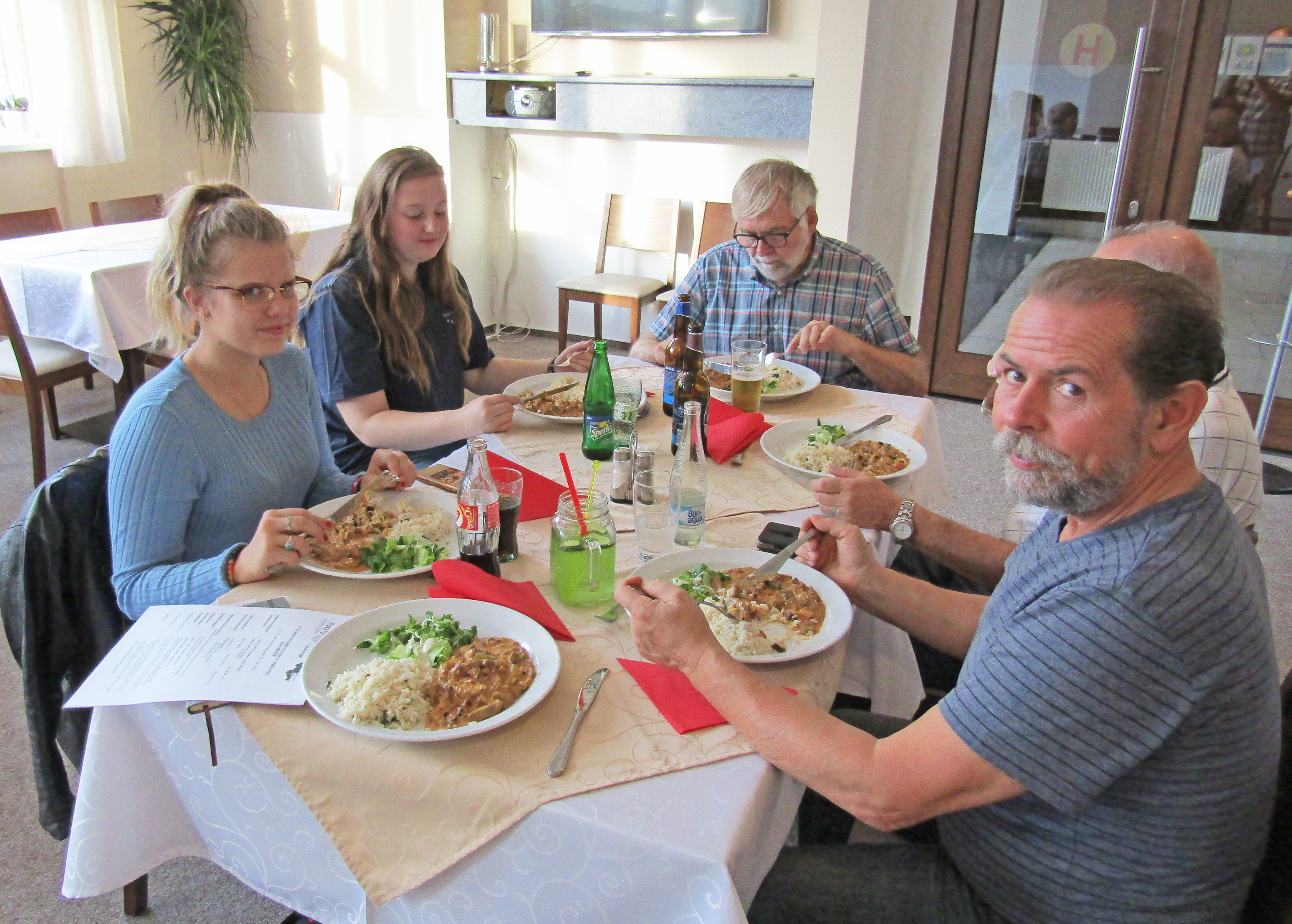 V úvodu schůzky jsme povečeřeli hovězí ala Stroganov s rýží, k němuž nám Petr Sogel přidal informaci o původu vzniku této speciality. Výbornou večeři ještě doplnil desert, jímž byl koláč se šlehačkou. Na večeři si pochutnaly i obě naše inboundky. Byla to také jediná část schůzky, kdy zcela akceptovaly náš program a nevěnovaly se vzájemné komunikaci a svým internetovým kontaktům.