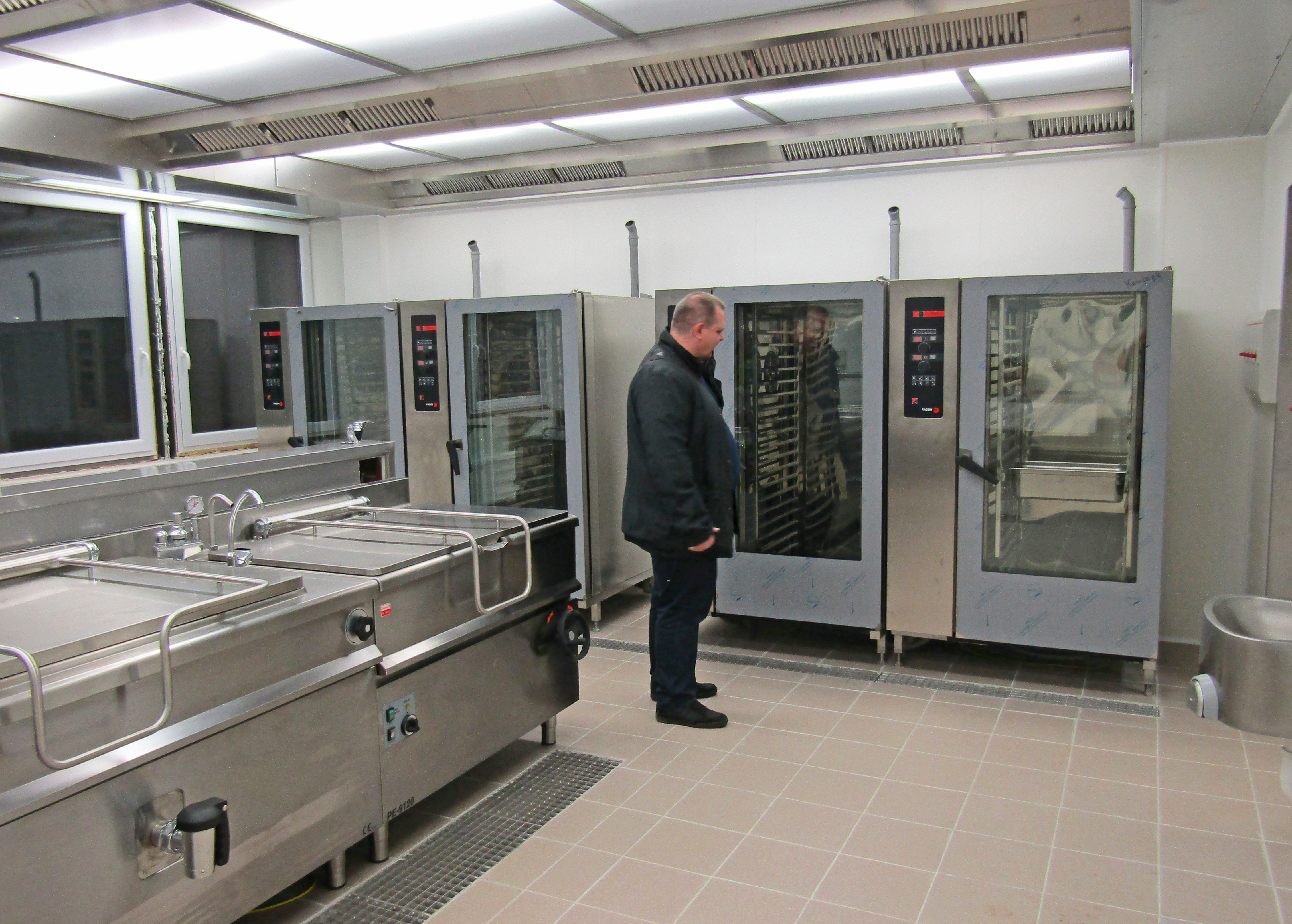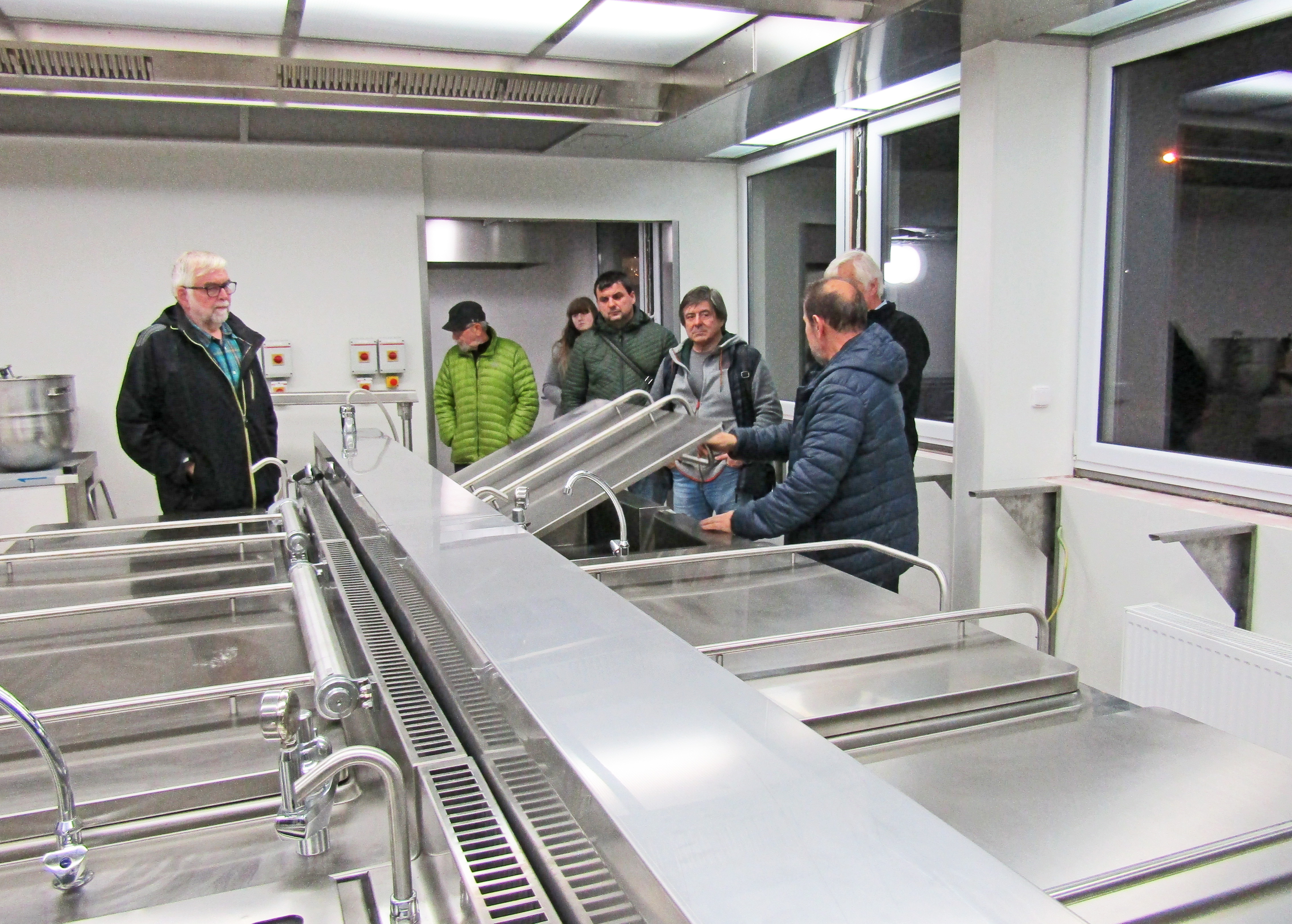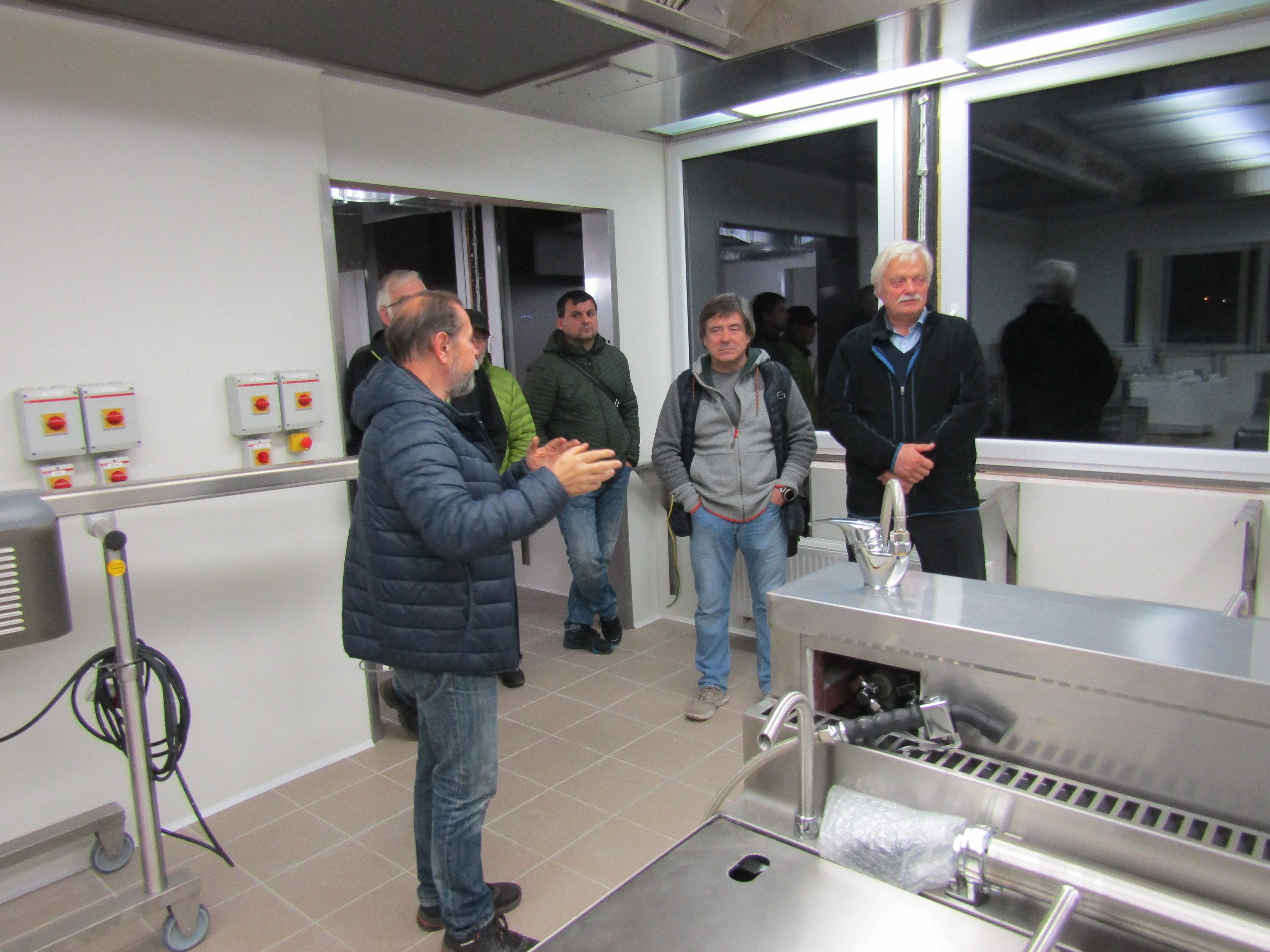 Třetí listopadová schůzka našeho Rotary klubu probíhala nejprve v rekonstruované budově, v níž se připravuje výroba potravin firmy Expres Menu. Ve své nové provozovně nás uvítal Petr Sogel. Nejprve nás seznámil s tím, jak získal budovu, ve které byla původně ubytovna Elektrárny Poříčí. Tato budova má celkem kvalitní skelet, takže v ní bylo možné vybourat prakticky skoro všechny nenosné příčky a nově vymezit potřebné prostory ve všech třech podlažích. Velkou výhodou budovy jsou rovněž skoro půlmetrové prostory mezi stropy a podlahami v dalším patře, což umožňuje ukrytý rozvod elektřiny, vzduchotechniky a vody. Mimořádnou výhodou je pro energeticky velmi náročný provoz přímé napojení na blízkou elektrárnu a teplárnu ČEZu v Poříčí. Podlahová plocha v každém patře výrazně převyšuje 400 m2. Po úvodních informacích nás Petr prováděl prostorami budovy tak, jak se postupně realizuje výroba jednotlivých pokrmů. Ve zvýšeném přízemí jsou místnosti k uskladňování právě dovezených surovin, z nichž se zde připravují jednotlivé pokrmy. K tepelným úpravám jsou zde k dispozici čtyři konvektomaty a dvě linky varných nádob. Všechny nádoby jsou z nerezového materiálu. Velmi důsledně se zde dbá na oddělení čistého a nečistého provozu. Do místností, ve kterých dochází ke kontaktu zaměstnanců s potravinami, se dostanou zaměstnanci až po převlečení do hygienicky nezávadných oděvů. V těchto místnostech nesmí využívat ani své vlastní zvenčí donesené potraviny.