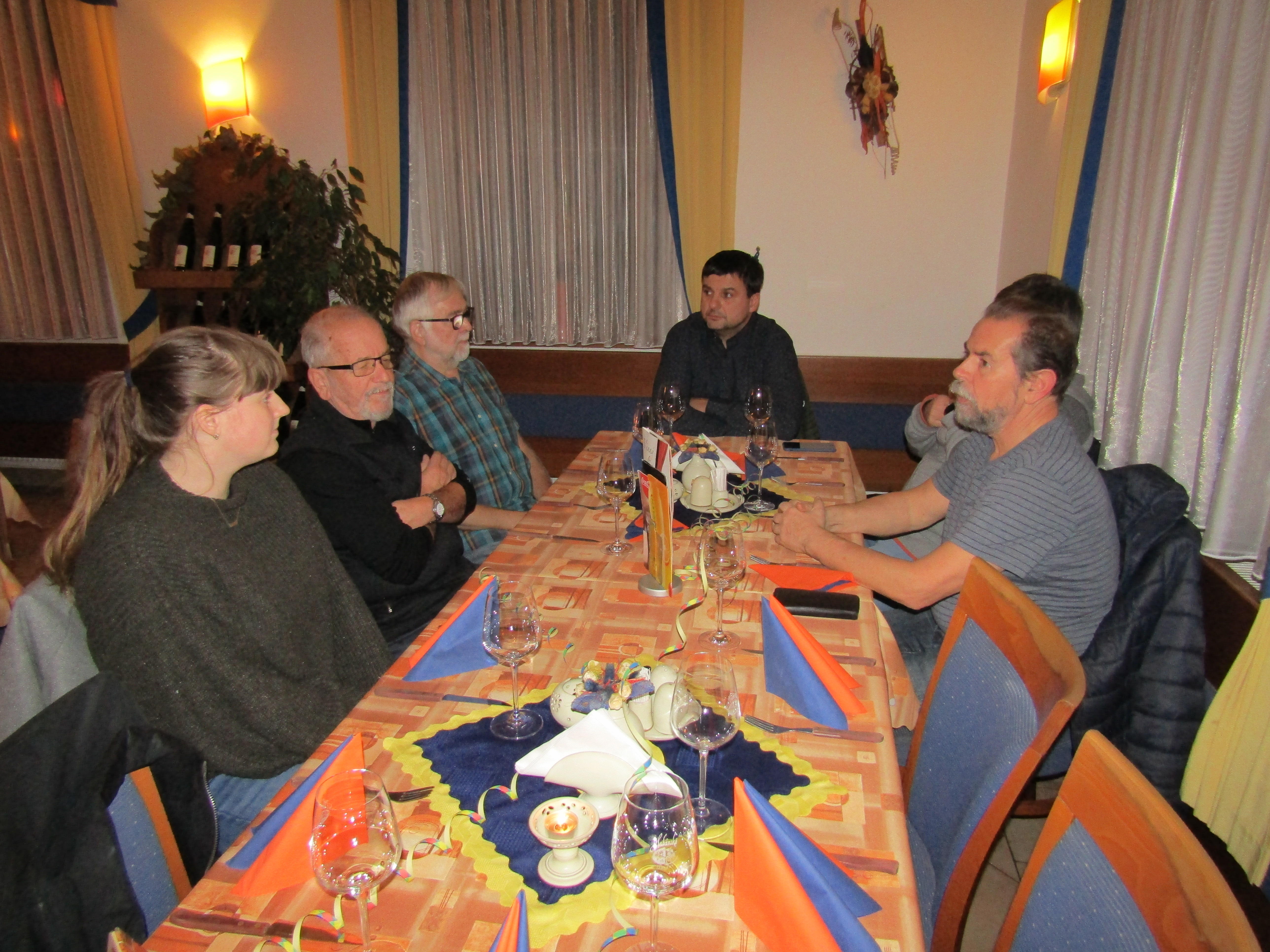 V době před podáváním večeří jsme ještě řešili některé problémy související s nejbližšími schůzkami. Na příští schůzce 26. 11. bude mít Maggie svoji prezentaci v češtině a představí se nám outboundi pro příští rok 2019-20 Jan Bernhard a Michaela Radová. Karel Rada navrhl, aby inboundi pro urychlení zvládnutí češtiny referovali na každé schůzce klubu, které se zúčastní, co prožili v uplynulém období od poslední schůzky. Pro další schůzku 5. 12., kterou bychom měli věnovat předvánočnímu prodeji punče, bude třeba, aby Robert zajistil bezplatnou rezervaci našeho stánku a zjistil dobu jejich instalací. Podle těchto termínů budeme volit dobu našeho prodeje. Richard Houdek zaurguje vyjádření ředitele nemocnice, abychom mohli zvolit vhodný objekt pro motivaci charitativní sbírky, při níž budeme poskytovat punč a cukroví. Jirka Malinský zajistí u své manželky výrobu cukroví, stejně jako v minulých letech.