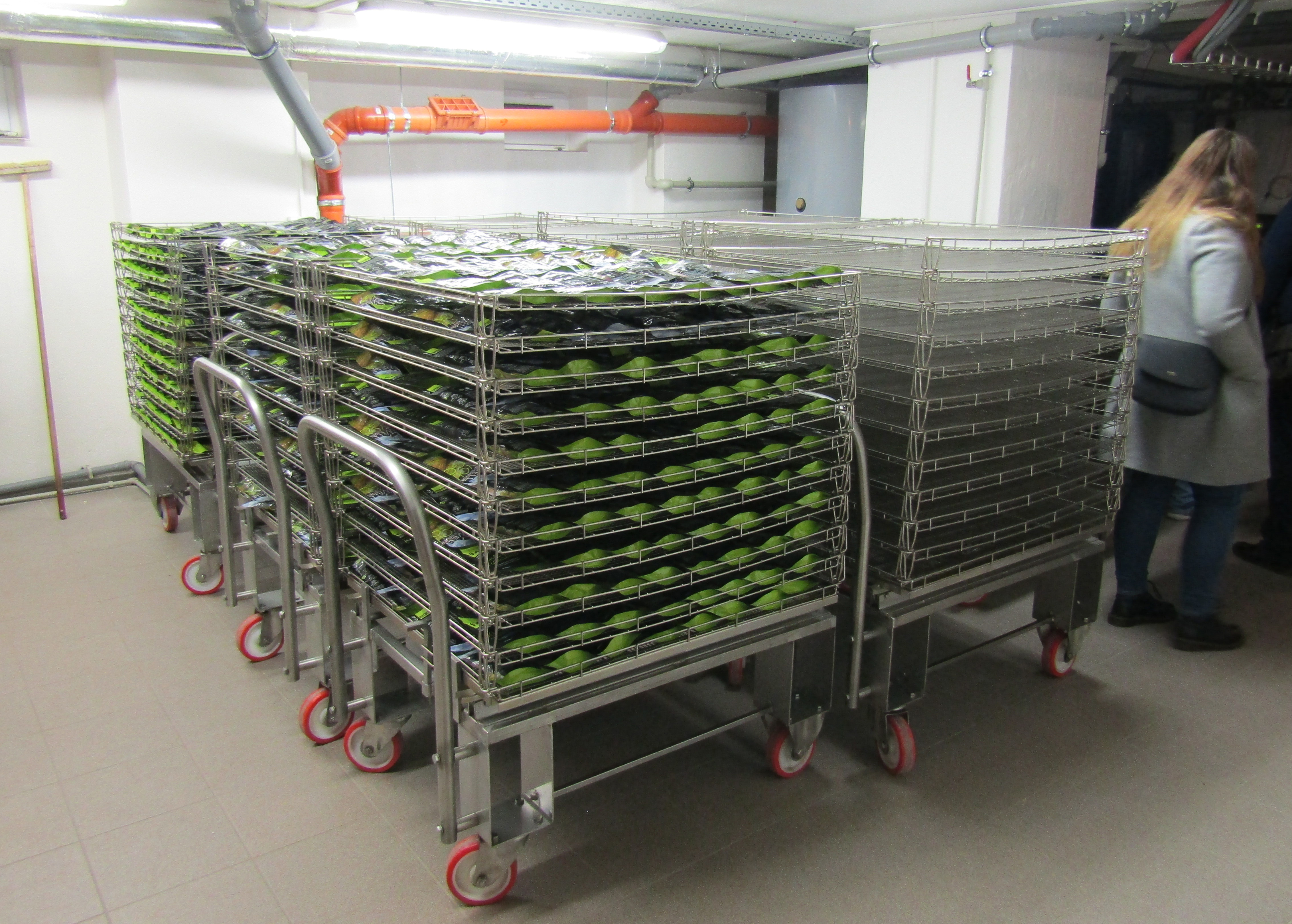 Při prohlídce dalších podlaží budovy jsme viděli prostory k uskladňování vyrobených jídel, místnosti pro zaměstnance, administrativní pracovníky a byt pro Petrova syna, který bude zdejší provoz v budoucnu řídit. I přes zdánlivě veliké výrobní prostory Petr realizuje k optimalizaci provozu za budovou ještě další přístavbu. V průběhu naší exkurze jsme se dostali i k zařízení, v němž se z pitné vody elektrickým proudem vyrábí tzv. „živá a mrtvá voda“. Tam nám Petr vysvětlil její účinky a praktické využití. Mrtvá voda má velmi nízké pH a je schopná ničit všechny bakterie, čehož se využívá k důsledné desinfekci. Živá voda má naopak vysokou zásaditost a tím má účinky hojivé a stimulační, neboť převádí minerály ve vodě obsažené na ionty, které se snadno vstřebávají a působí v organismu jako antioxidant.