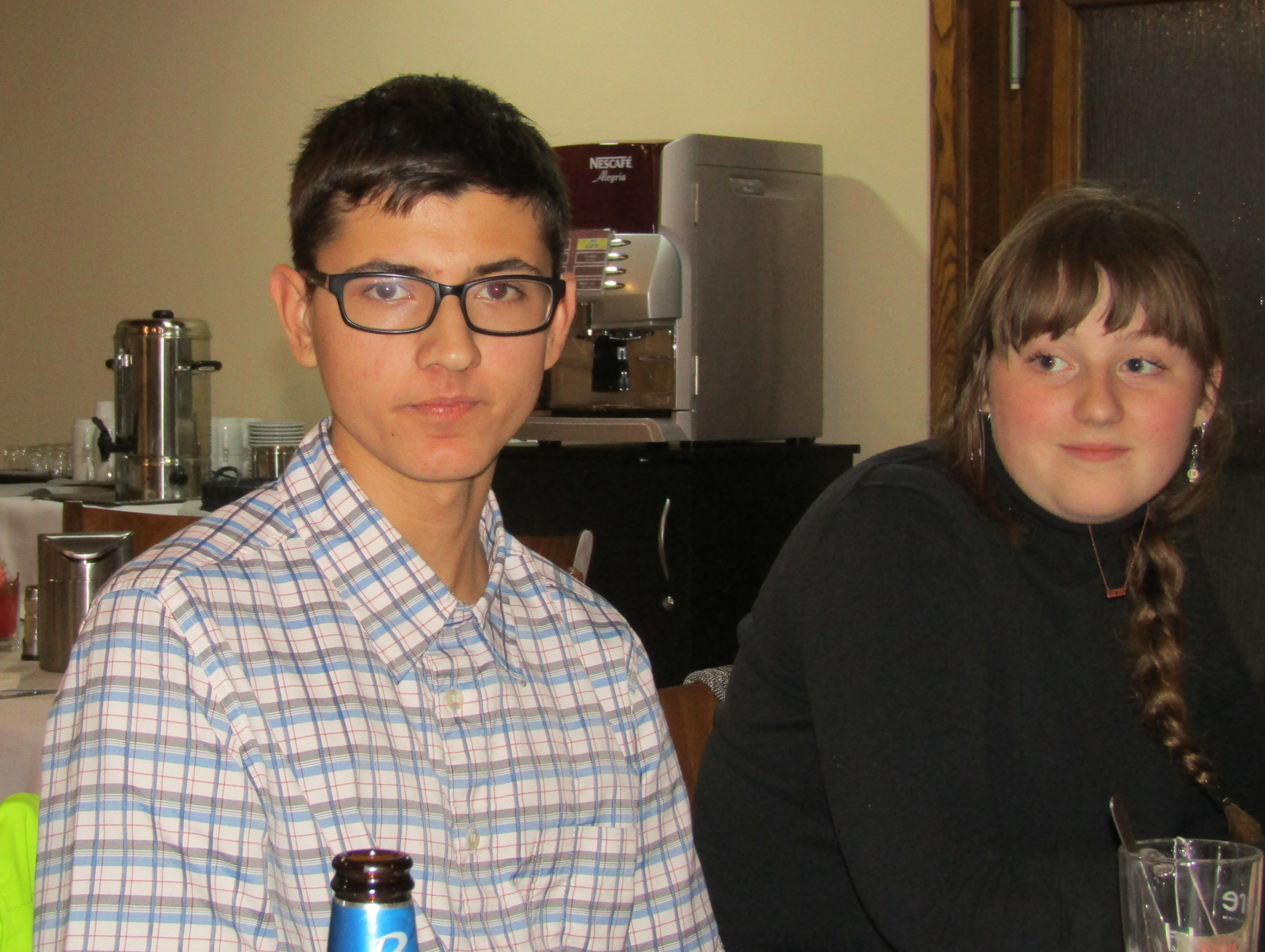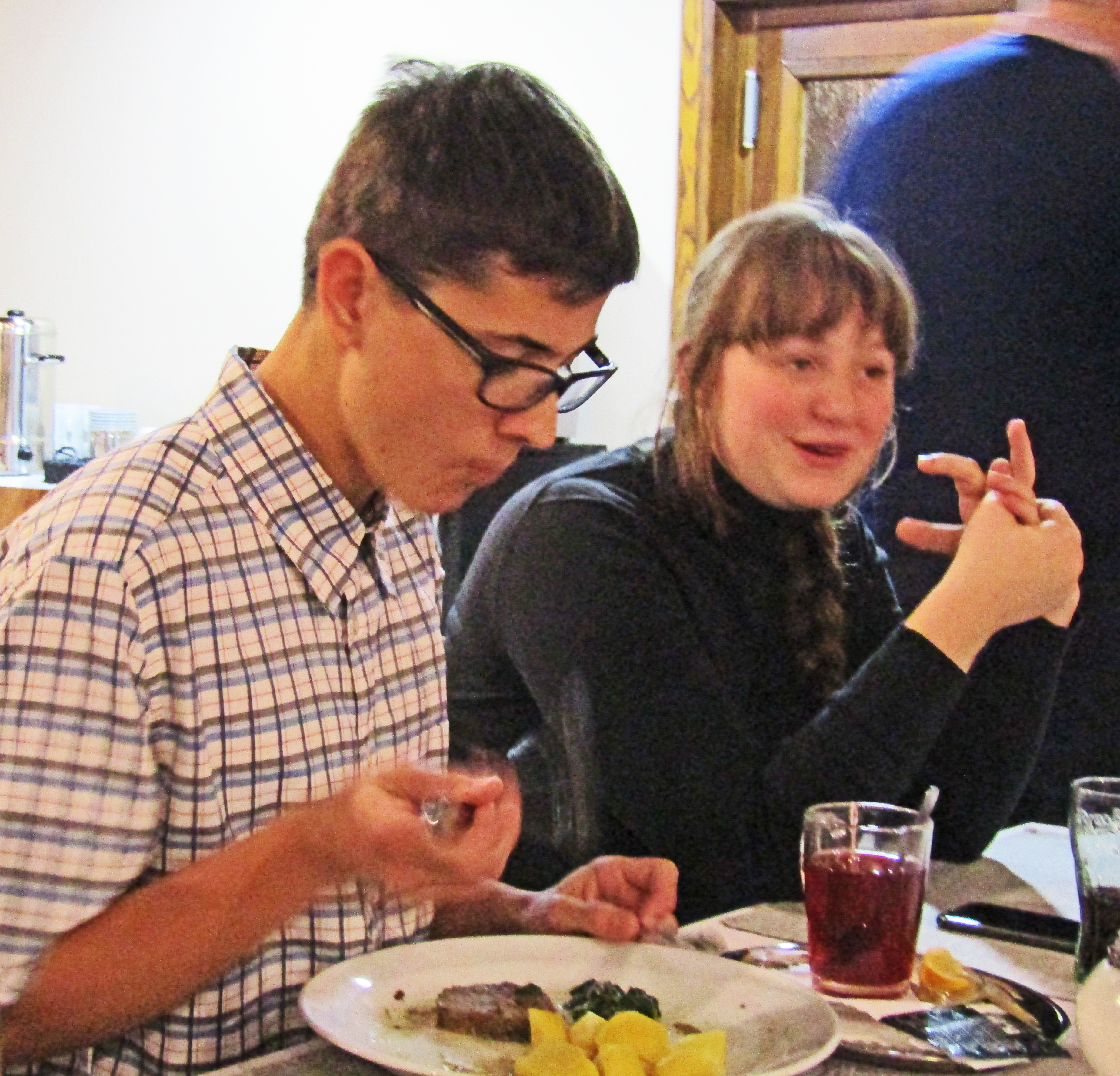 Schůzku jsme zahájili večeří, v níž byla jako hlavní chod podávána skvělá hovězí pečeně s listovým špenátem a bramborovými špalíčky. Jako desert jsme dostali výborné pomerančové želé s čokoládovou polevou. Již v této fázi schůzky se nám představil přizvaný student trutnovského gymnázia, který s námi nemohl sdílet naše menu, neboť musí konzumovat pouze bezlepkovou stravu. I tento problém byla kuchyně restaurace Patrie schopná akceptovat a pro studenta v krátké době připravila obdobnou bezlepkovou večeři. Po jejím absolvování jsme využili anglicky dobře konverzujícího studenta k výzvě Maggie, aby nám řekla česky několik vět o průběhu uplynulého týdne. Rozpaky děvčete byly jedinou reakcí a potvrzením toho, že výzva Karla Rady na minulé schůzce nebyla akceptována a velmi silná jazyková bariéra Maggie stále přetrvává.