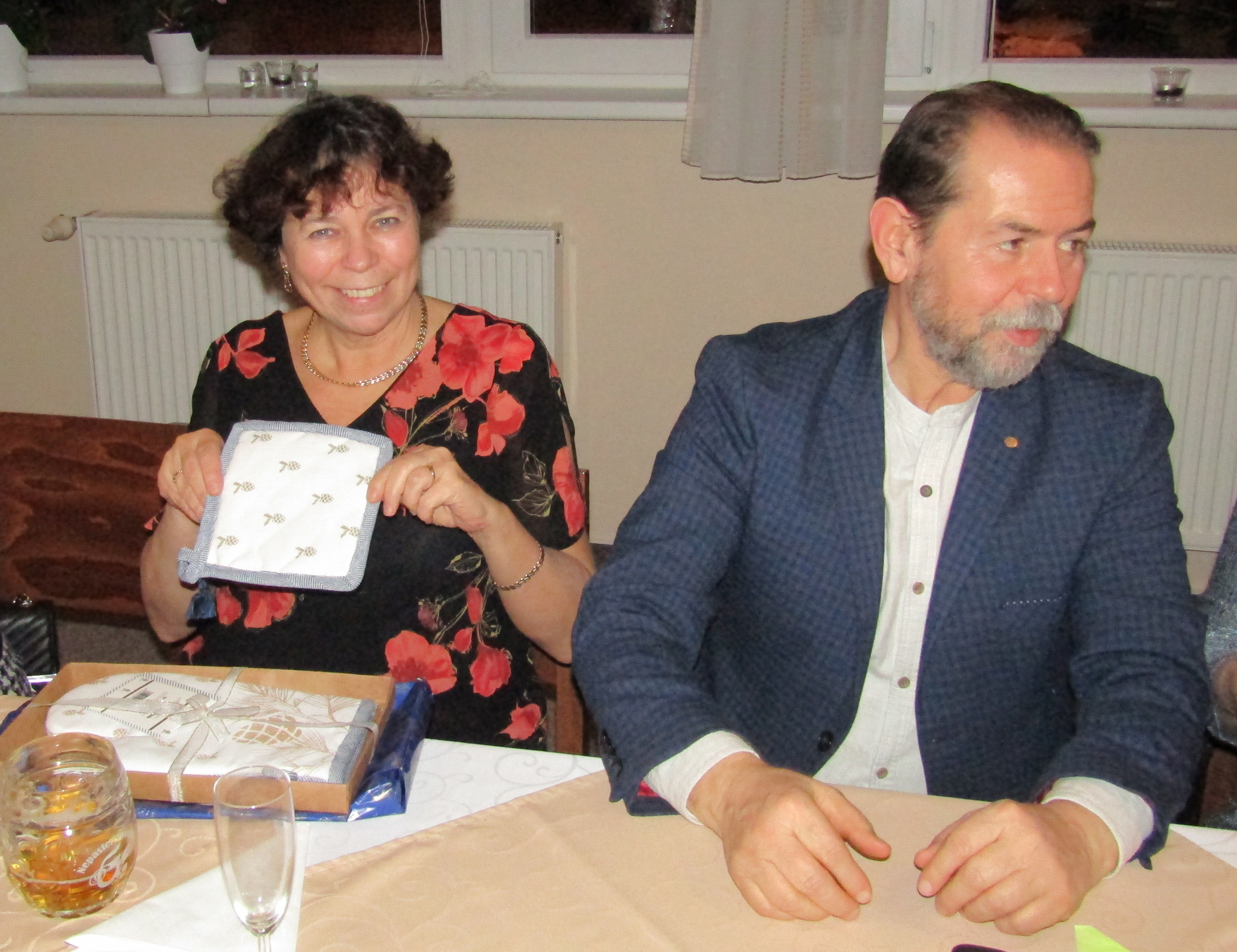 Druhá prosincová schůzka našeho Rotary klubu byla současně posledním předvánočním společným setkáním. Této tradiční slavnostní schůzky se zúčastnili i naši rodinní příslušníci. Schůzka se letos uskutečnila v hotelu Patria, protože v hotelu Adam v současné době stále ještě probíhá rekonstrukce pokojů. V úvodu všechny přítomné uvítal president RC Robert Hradecký. Hned po zahájení si všichni přítomní připili šampaňským na úspěšné dovršení dvacetileté činnosti našeho klubu v roce 2018 a na dobrý rok 2019. Po přípitku nás Robert seznámil s tím, že se mu nepodařilo organizačně zajistit naši plánovanou účast na předvánočních trzích na Krakonošově náměstí. Provozovatel trhů měl totiž již od října všechny prodejní stánky obsazené různými prodejci. Umístit náš stánek s punčem někam jinam mimo plochu náměstí již bylo rovněž nereálné, neboť by nebylo možné zajistit pro náš stánek přívod elektřiny. Robert nám dále předal k prohlédnutí jeden výtisk nástěnného kalendáře, v němž jsou na fotografiích zachyceny nejvýznamnější charitativní a veřejně prospěšné aktivity, které náš Rotary klub v posledních 8 letech zajišťoval. Větší počty kalendářů po skončení schůzky předá těm členům, kteří si náklady na propagaci mohou ve svých firmách zahrnout do nákladů. Vašek Flandera, který je kancelorem americké studentky Maggie Long, informoval o zájmu Američanky navštívit další výměnnou studentku v Polsku. Po konzultaci s distriktním předsedou výboru pro výměnu mládeže Mirkem Barákem studentce oznámil, že jí tuto jednodenní cestu nelze povolit.