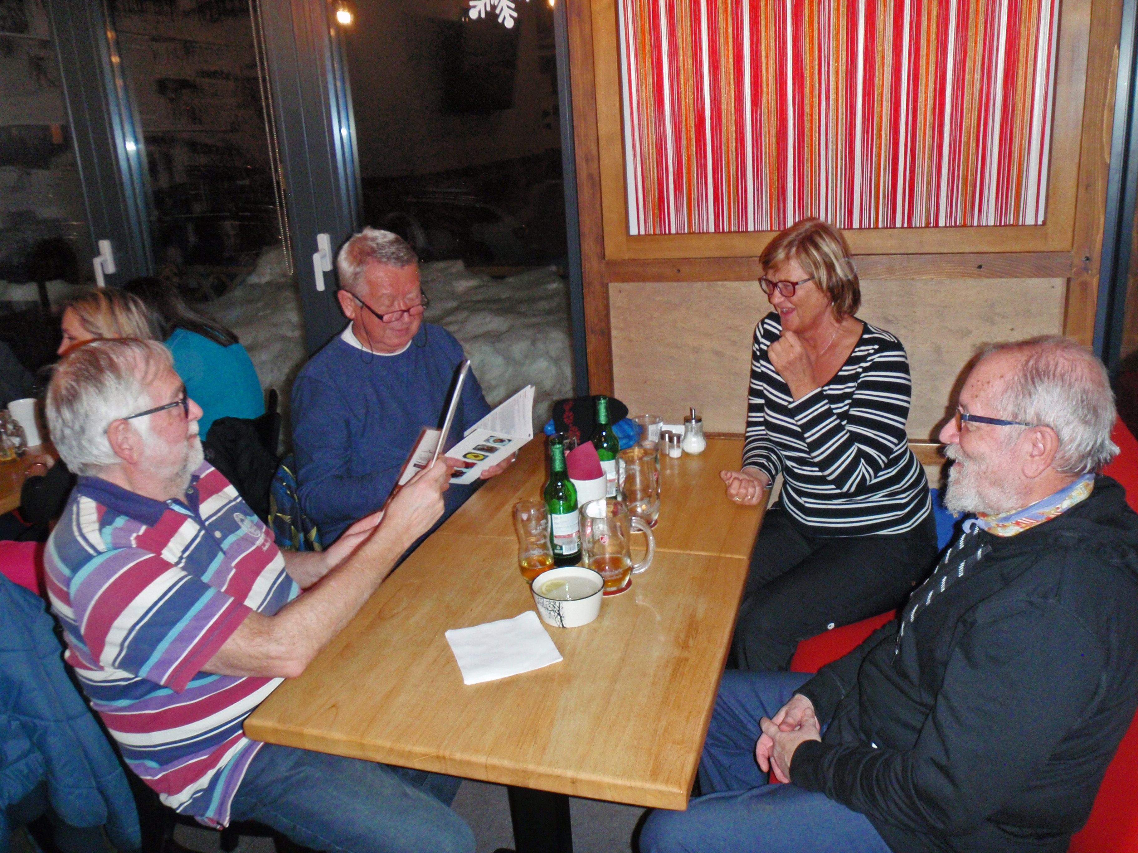 Nevelká restaurace byla zcela zaplněna hosty, což potvrzovalo, že se v internetovém hodnocení ze strany návštěvníků umístila mezi všemi janskolázeňskými restauracemi hned na druhém místě. V době našeho příchodu byla ještě i naše rezervovaná místa zaplněná, ale během deseti minut jsme již mohli obsadit dva stoly, které pro nás byly od 18.30 hod. zajištěny. Nabídka menu byla poměrně široká, takže i naše objednávky jídla byly poměrně rozdílné. Než jsme se stihli dostatečně občerstvit nápoji, byli jsme obslouženi i objednanými jídly, což nás po loňské zkušenosti docela příjemně překvapilo. Kvalita jídel i velikost porcí zcela naplnila naše očekávání. Někteří zvládli i desert, s jehož úrovní rovněž zavládla všeobecná spokojenost. S ohledem na naplněnost restaurace byla i rychlost obsluhy na zcela neobvykle dobré úrovni. Společenská konverzace souvisela s prezentací zkušeností Doubkových a Javůrkových z jejich nedávné cesty do Thajska, kam právě dnes doletěl se skupinou přátel i president klubu Robert Hradecký. Reference o této, pro Čechy stále atraktivnější destinace, byly vesměs výhradně pozitivní. Stejně příznivě jsme zhodnotili i dnešní poněkud sportovně zaměřenou schůzku, která kromě zdravého pohybu přispěla k našemu lepšímu vzájemnému poznání a sblížení našich rodin. Krátce po 20. hodině jsme se rozloučili a vydali se ke svým domovům.