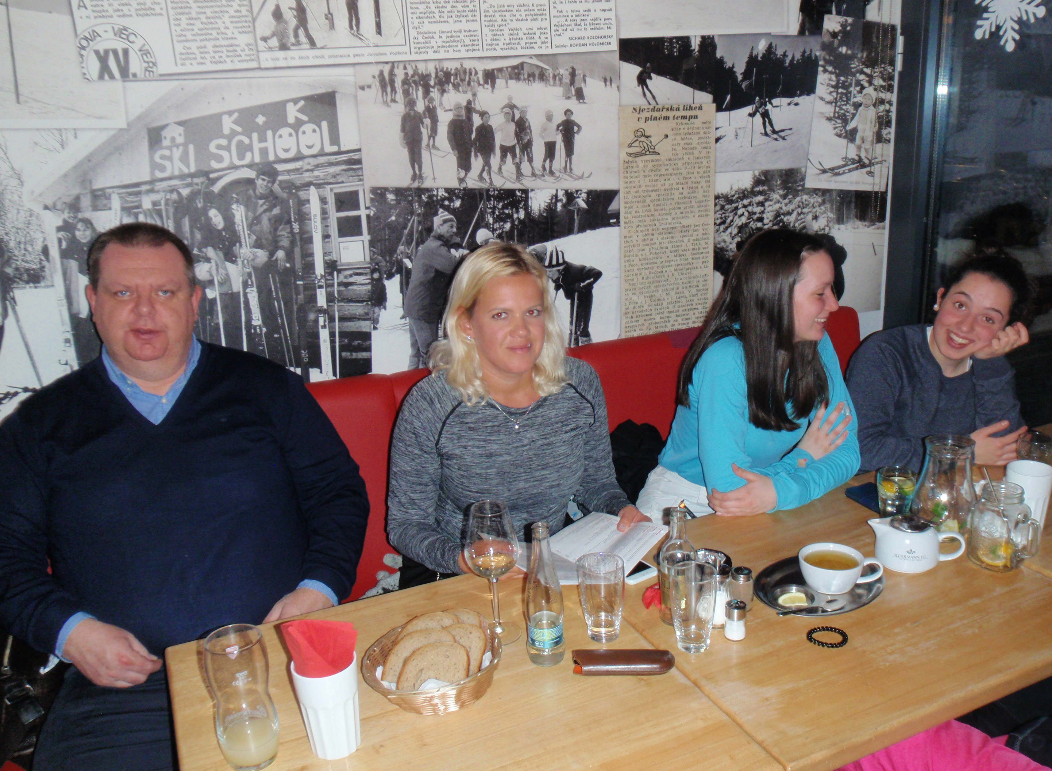 Druhá únorová schůzka našeho Rotary klubu probíhala v Jánských Lázních jednak na svazích Černé hory, jednak v restauraci Karmela. Schůzky se kromě rotariánů zúčastnilo i pět rodinných příslušníků a jako host byla dále přítomná italská studentka ze Sicílie, která je spolužačkou dcer presidenta klubu Roberta Hradeckého ve třídě zdravotnického lycea na SZŠ v Trutnově. Organizace této každoročně realizované sportovní schůzky zaměřené na sjíždění Černé hory na saních, se jako obvykle ujal Vašek Němec. Sám se samotného sjezdu nezúčastnil, neboť měl neodkladné pracovní povinnosti, ale po obvyklém srazu v 17.00 hodin na parkovišti u lanovky nás doprovodil ke stanici lanovky a po skončení sjezdu nás očekával v restauraci Karmela, kde pro nás zarezervoval místa na večeři. Sjíždění Černé hory se rovněž nezúčastnil Jirka Malinský, který se za námi dostavil také až před 19. hodinou do restaurace.