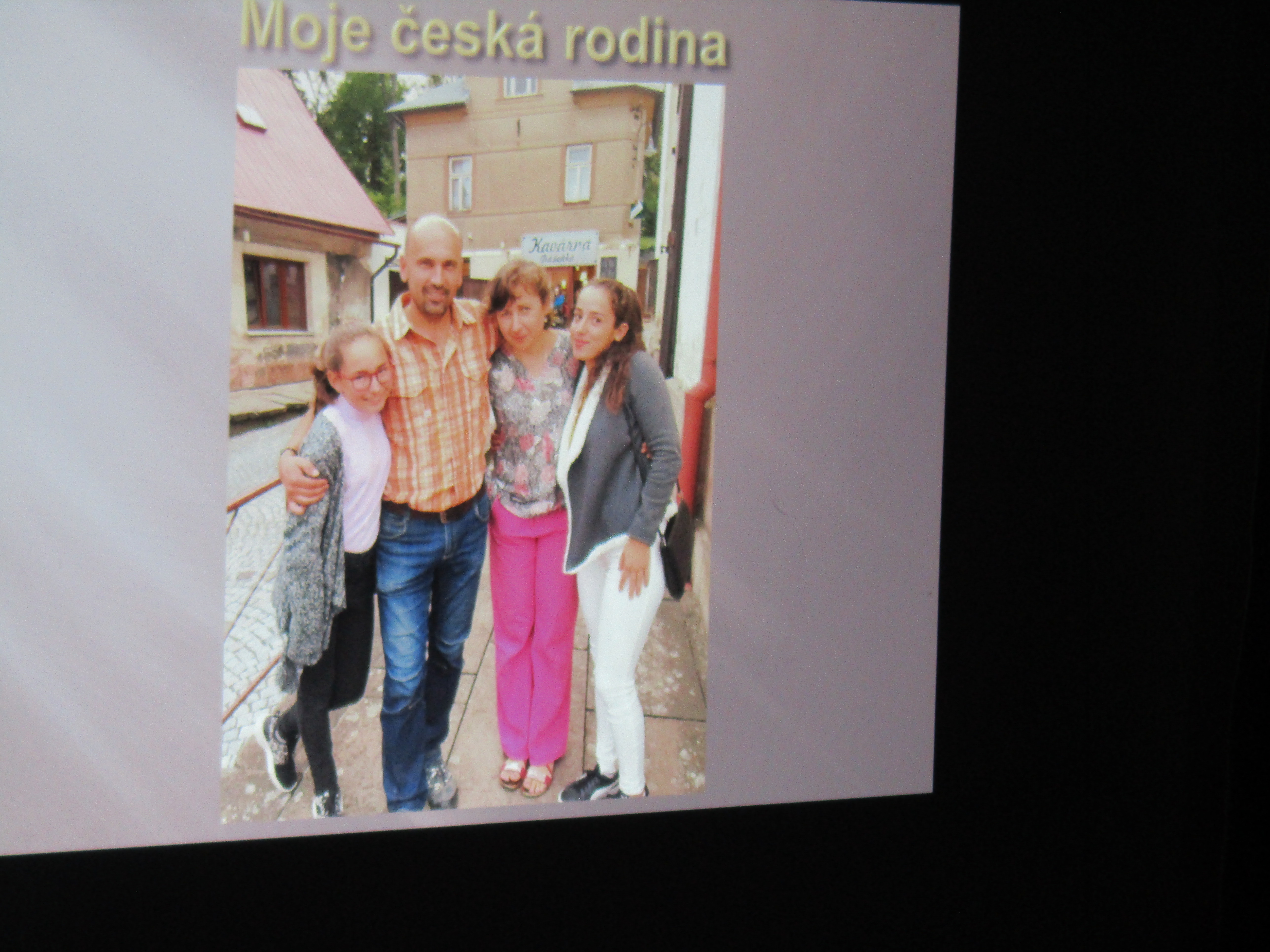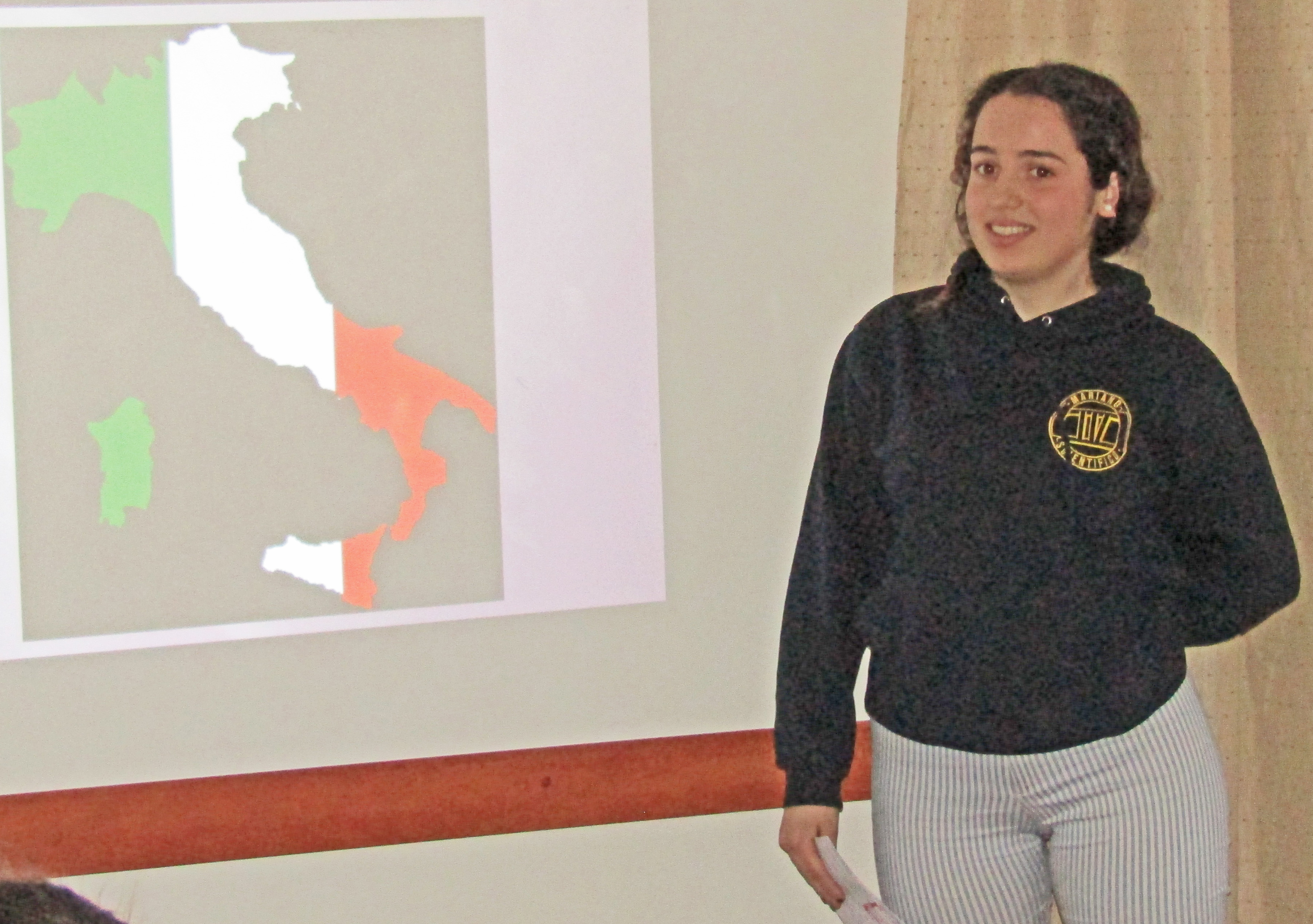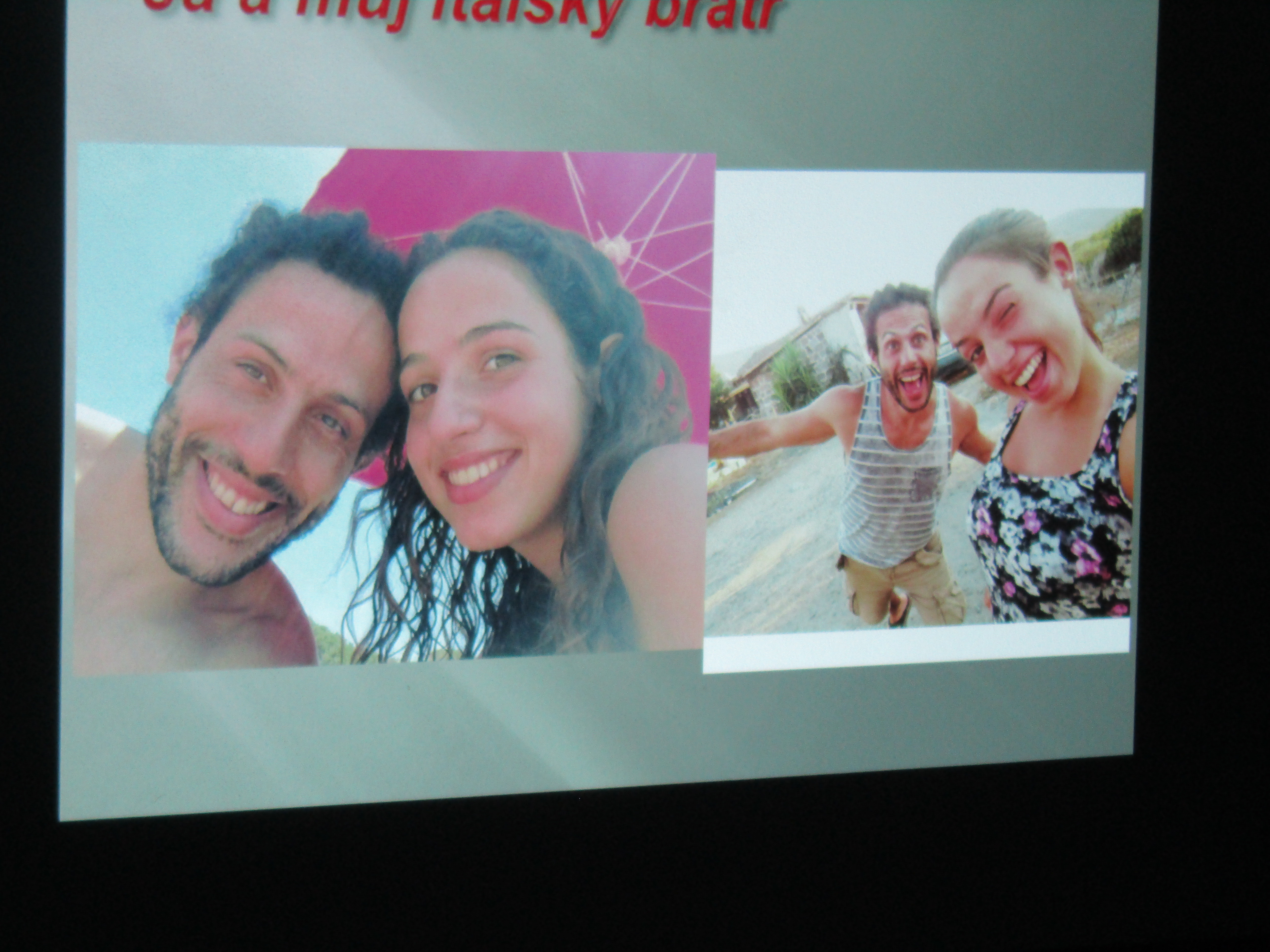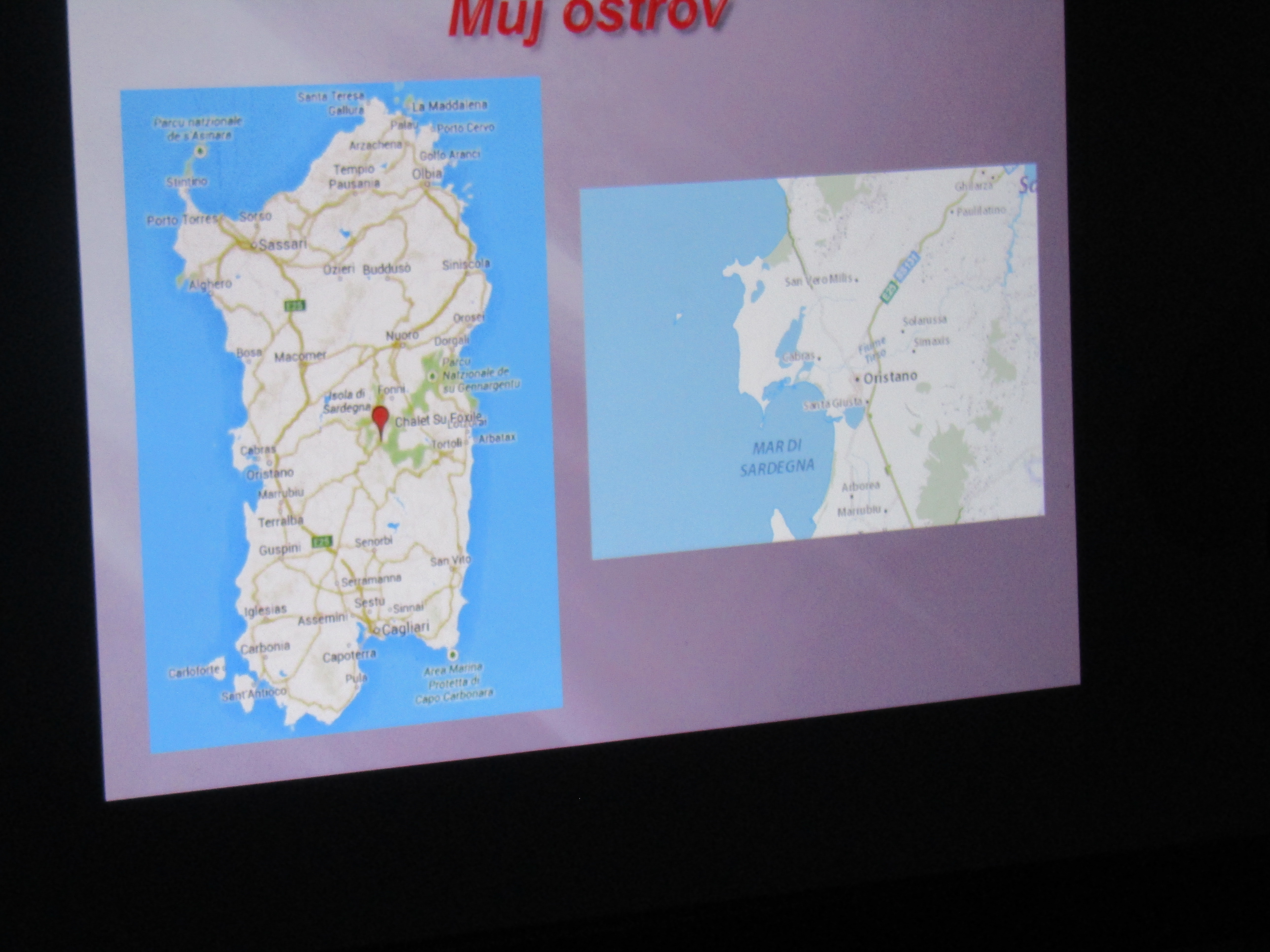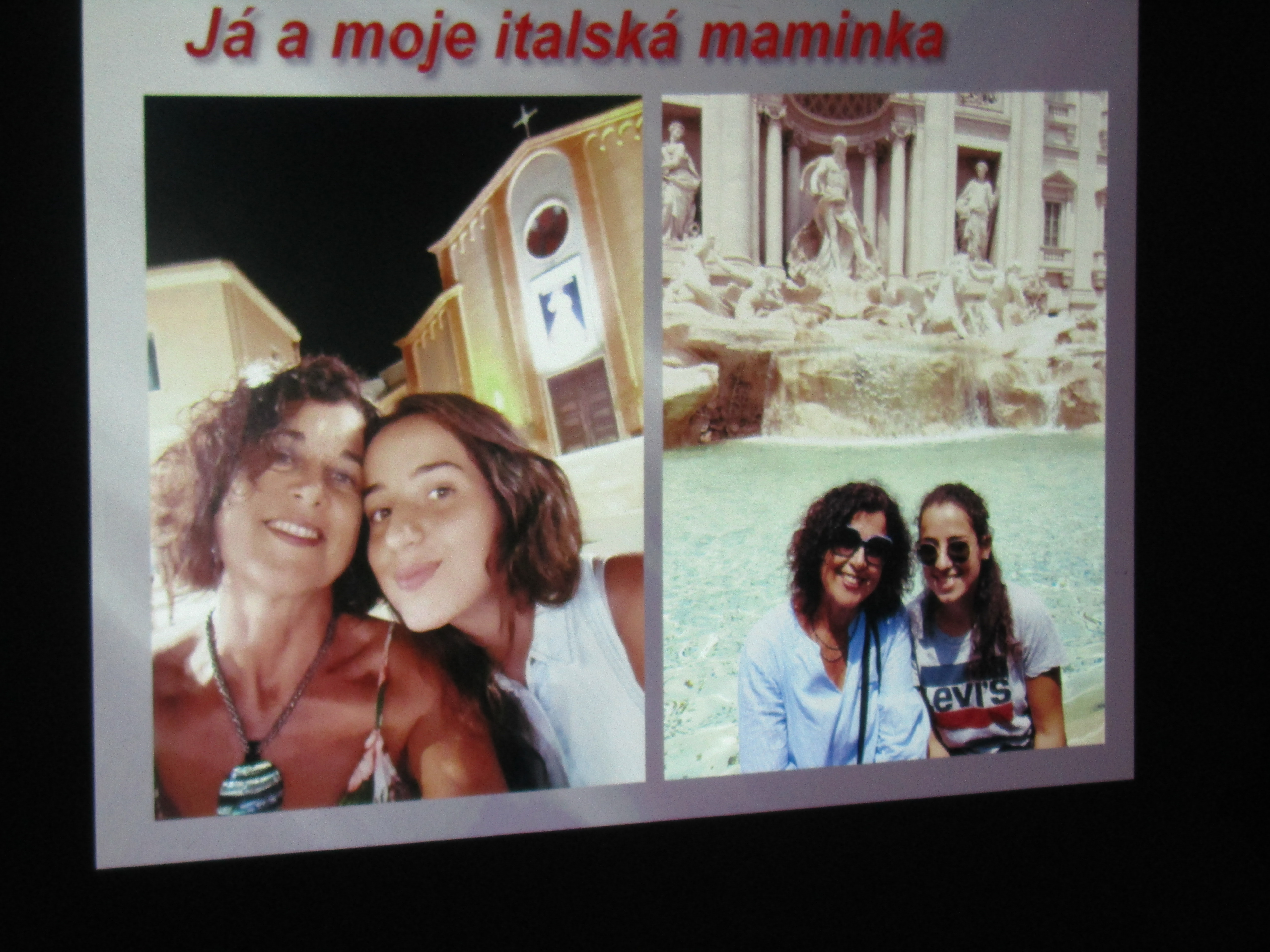 Po večeři Robert představil italskou studentku Margaritu Mele, která si za možnost zúčastnit se naší akce spojené se sjezdem Černé hory na saních, připravila speciálně pro náš klub prezentaci o svém ročním pobytu v ČR. Na prezentaci si připravila řadu fotografií, na nichž nás nejprve seznámila se symboly barev na italské vlajce i s velmi neobvyklou vlajkou Sardinie. Žije v městě Oristano v rozvedené rodině s matkou, sestrou a starším bratrem, který zřejmě převzal roli jakési hlavy rodiny. Kromě fotografii s jednotlivými členy své rodiny, nás pozitivně laděná temperamentní Italka seznamovala i se svými přáteli.
