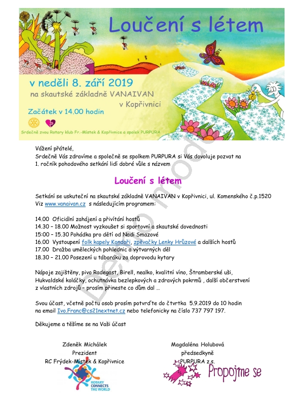 Přátelské nedělní posezení členů a přátel Rotary klubu Fr.-Místek & Kopřivnice v areálu skautské základny v Kopřivnici. Podrobněji ZDE