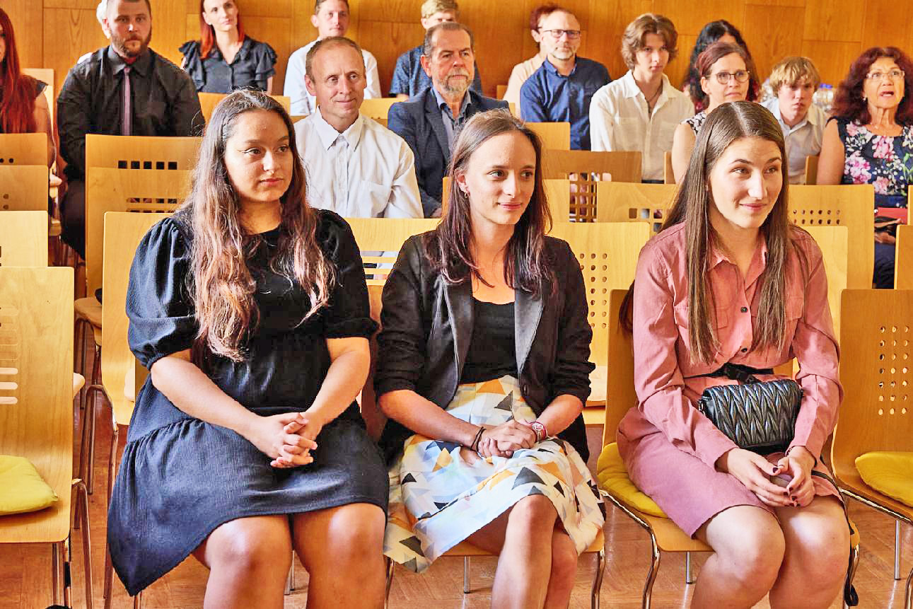 K ocenění za dobrovolnickou činnost v uplynulých dvou letech byly navrženy 3 studentky SZŠ, které do letošního roku studovaly na oboru Praktická sestra. Letos úspěšně zvládly maturitní zkoušku a budou ve škole pokračovat v pomaturitním studiu. K ocenění byly navrženy: Kateřina Vlčková, jejíž dobrovolnická činnost se od prvního ročníku studia realizovala v Domově pro seniory, zapojila se do potravinové sbírky i do jednorázových akcí v Penzionu pro hendikepované mezi mosty. Od druhého ročníku pomáhala v Bílkově sanatoriu a při vítání občánků na MěÚ. Další oceněnou byla Kristýna Vlčková. Její dobrovolnická činnost se uskutečňovala celé dva roky v Bílkově sanatoriu a na jednorázových akcích se angažovala ve Stacionáři mezi mosty. Stejně jako Kateřina celý rok navštěvovala jednou týdně Domov pro seniory v Trutnově a dva roky pomáhala při vítání občánků. Ve škole se zapojila do získávání nových studentů při Dni otevřených dveří a pomáhala i při jednorázových sbírkách jako byla tzv. Bílá pastelka. Třetí oceňovanou byla Kateřina Cinová. Ta se dobrovolnictví věnuje rovněž po celé 4 roky studia na zdravotnické škole. Její pomoc se realizovala v azylovém domě, kde pomáhala matkám s dětmi. Kromě řady jednorázových dobročinných akcí se zapojila do programu Dofe, který založil manžel britské královny. Tam se jí podařilo po úspěšném splnění stanovených podmínek získat certifikát vévody z Edinburgu. Jednou z oblastí tohoto programu je také dobrovolnická činnost, v rámci které absolvovala pravidelnou výpomoc v domově seniorů, pro poznání životních podmínek bezdomovců – noc venku, dále pracovala jako asistentka u kožní lékařky MUDr. Salajové při vyšetřování mateřských znamének u seniorů, zapojila se i do výuky první pomoci u dětí ze ZŠ. Na sociálních sítích sleduje mnoho organizací, které pomáhají lidem jako jsou např. Lékaři bez hranic, Mírové sbory nebo projekt Whisper – dětská nemocnice a porodnice v Ugandě. Jednou by chtěla v takovéto organizaci pracovat.
